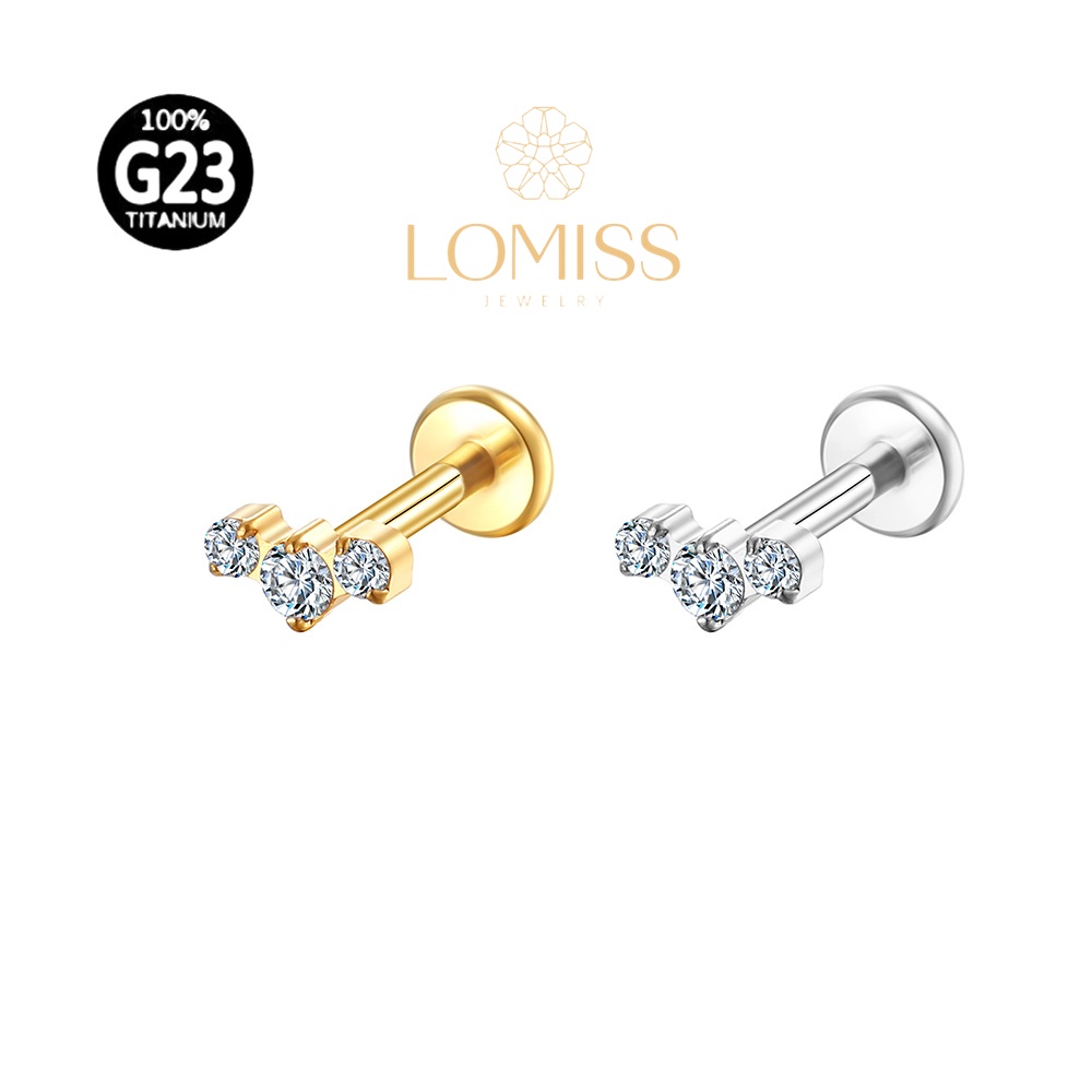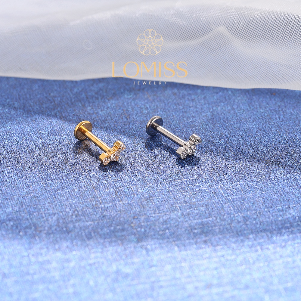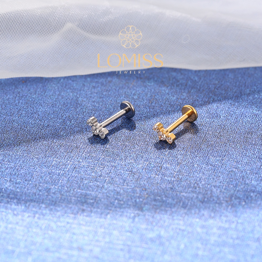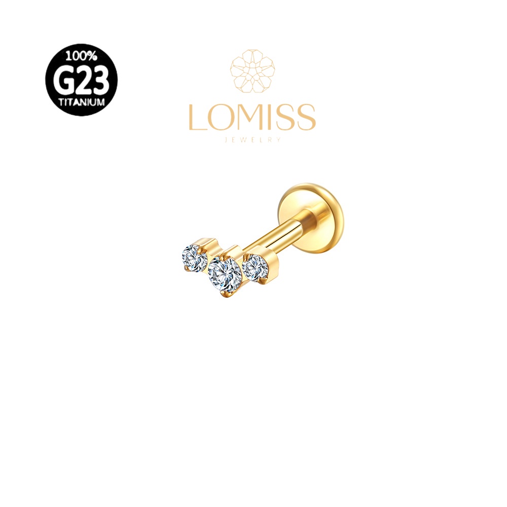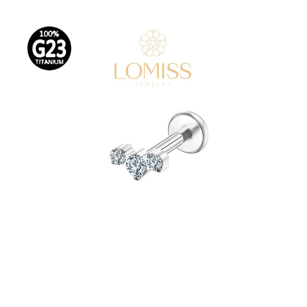 Piercing Labret Helix Tragus Conch Boca-Medusa Titânio G23 Pvd Trio Zircônia Lomiss piercing