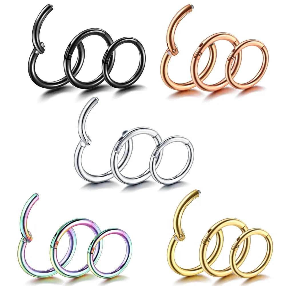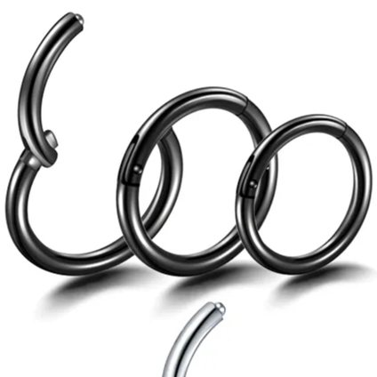 Piercing Helix Conch Septo Daith Argola Aço Cirúrgico PVD Clik Lomiss Piercing Nariz Preto Argola Segmentada 5mm