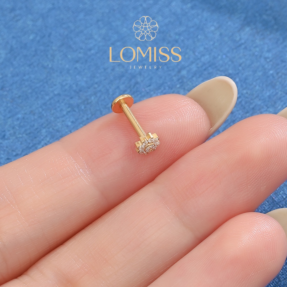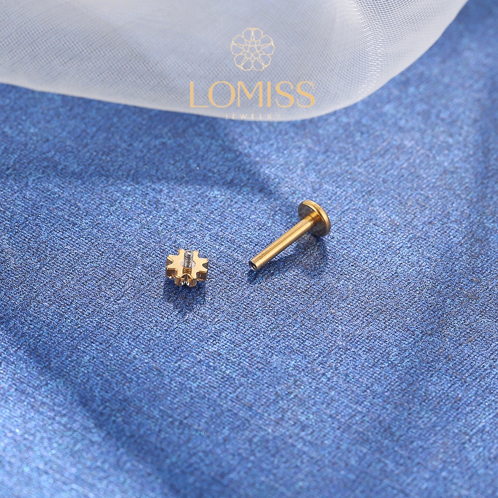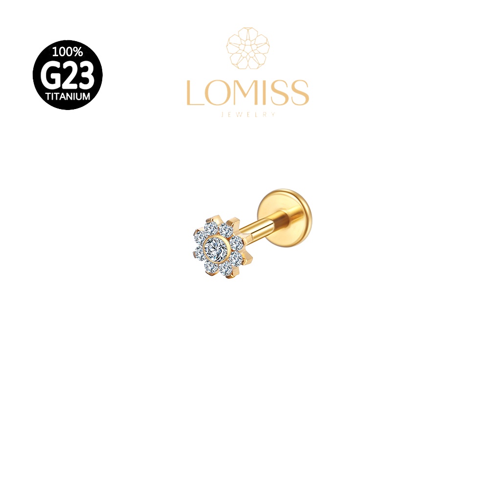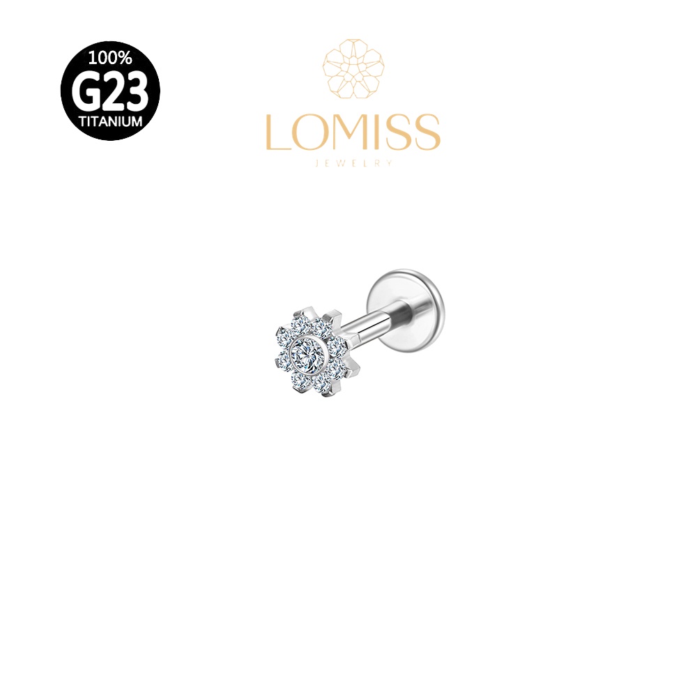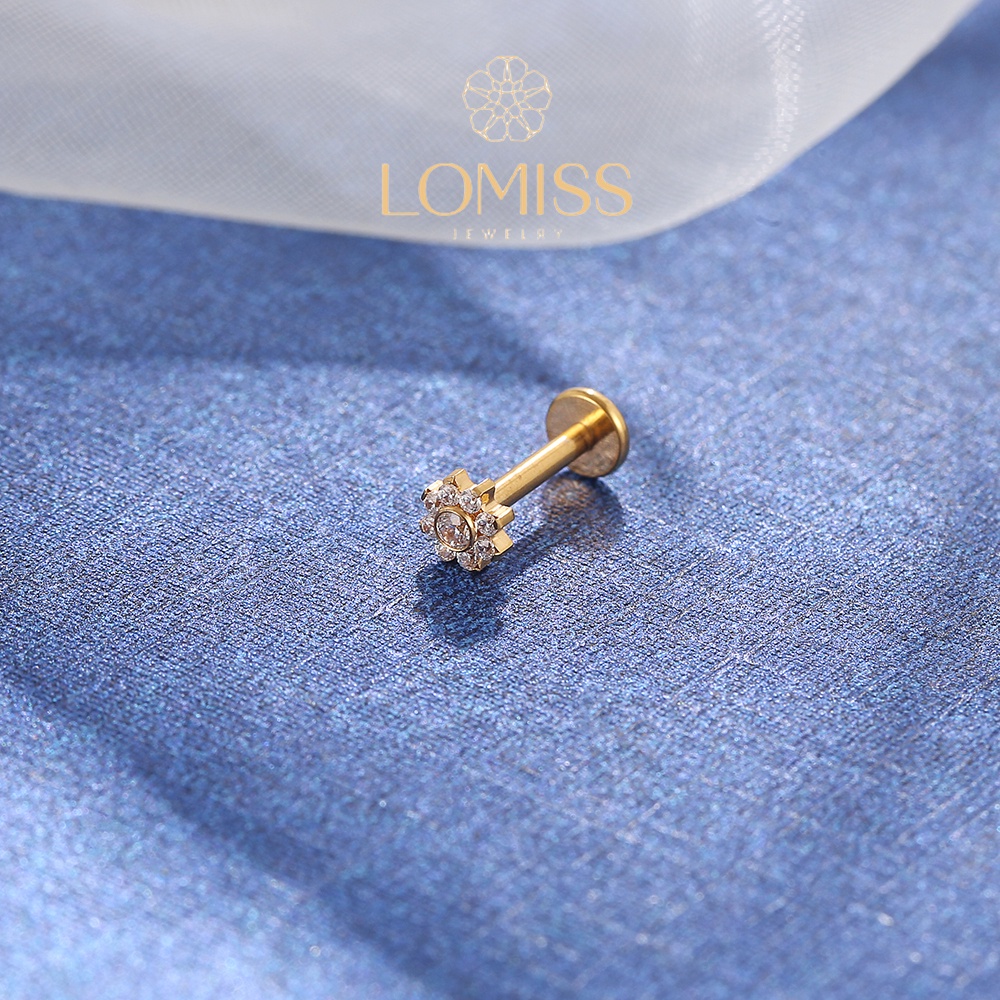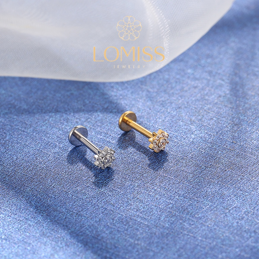 Piercing Labret Titânio PVD com Flores Zircônia《Lomiss semijoias》
