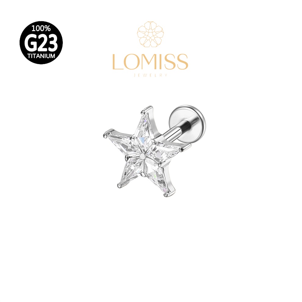 Piercing Labret TitÂnio G23 Rosca Interna Estrela ser Usado: Helix, Tragus, Conch, Nariz, Boca-Medusa《Lomiss piercing》