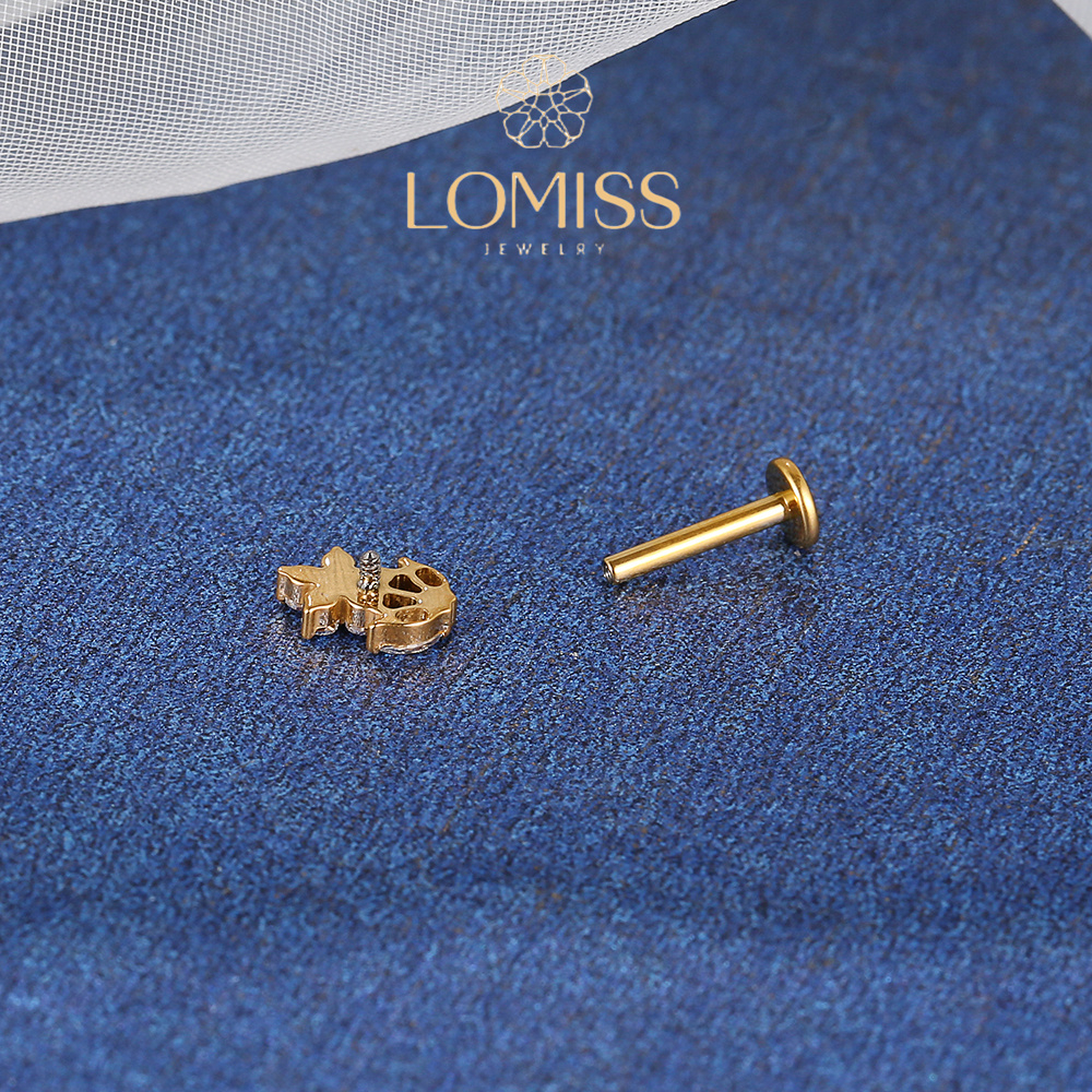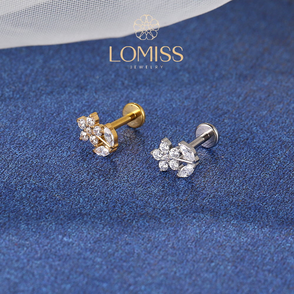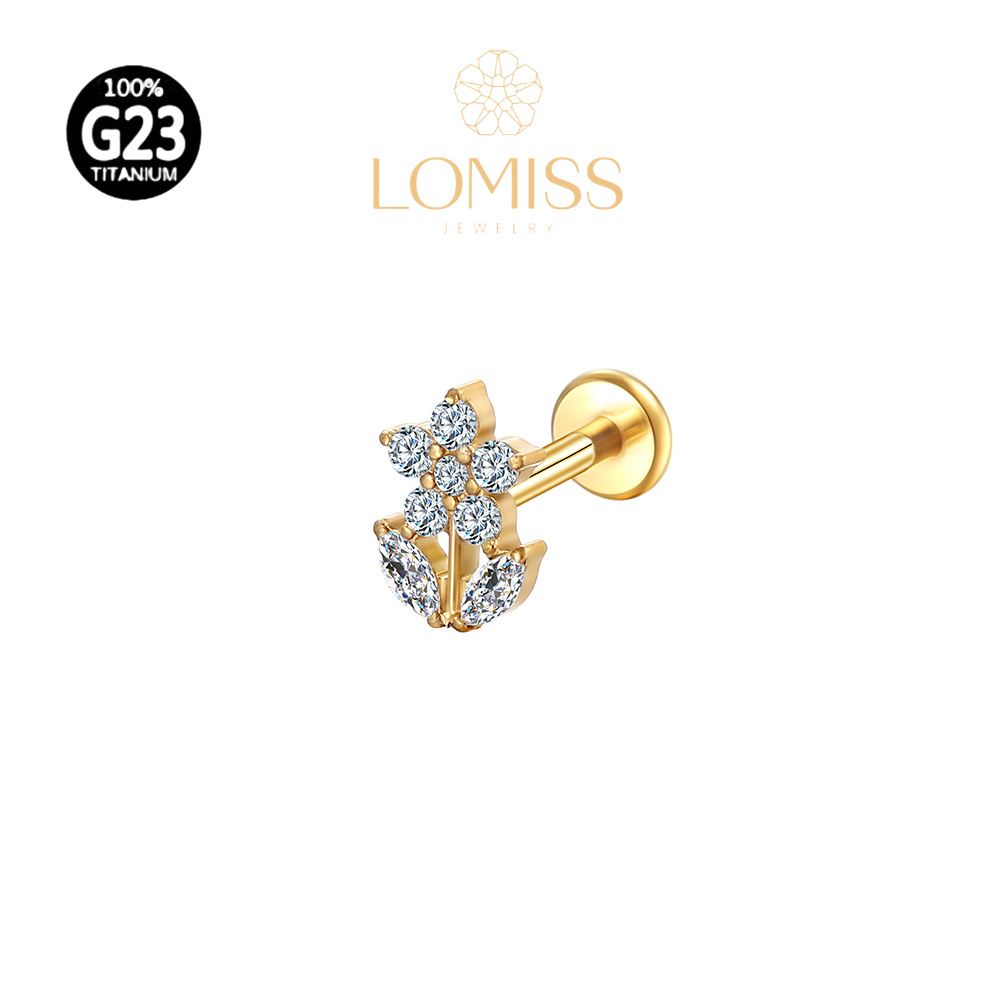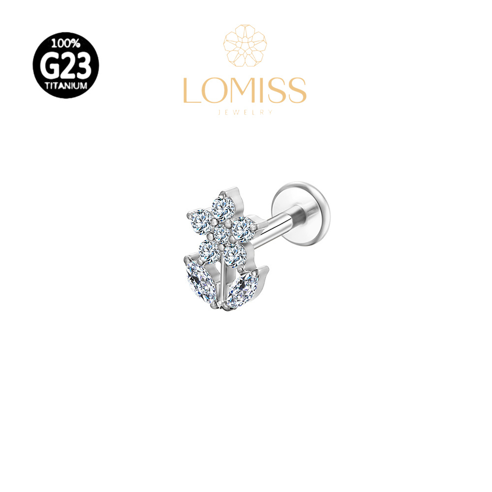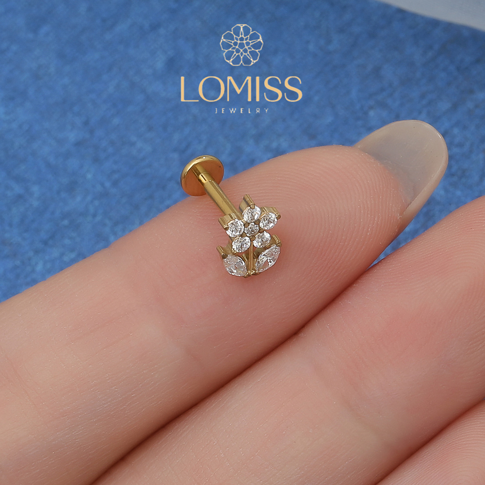 Piercing Orelha Labret Titânio Pvd Flor Zircônia Cravejada