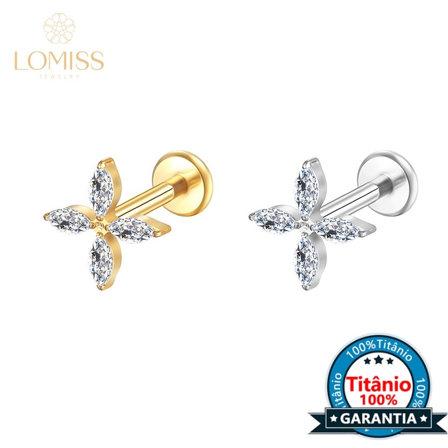Lomiss Piercing Helix Tragus Conch Labret Titânio Flor Quadro Petalas
