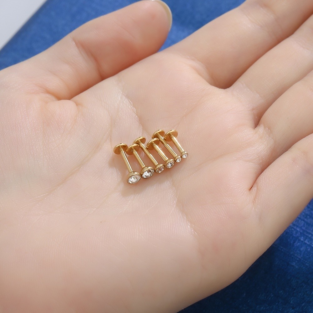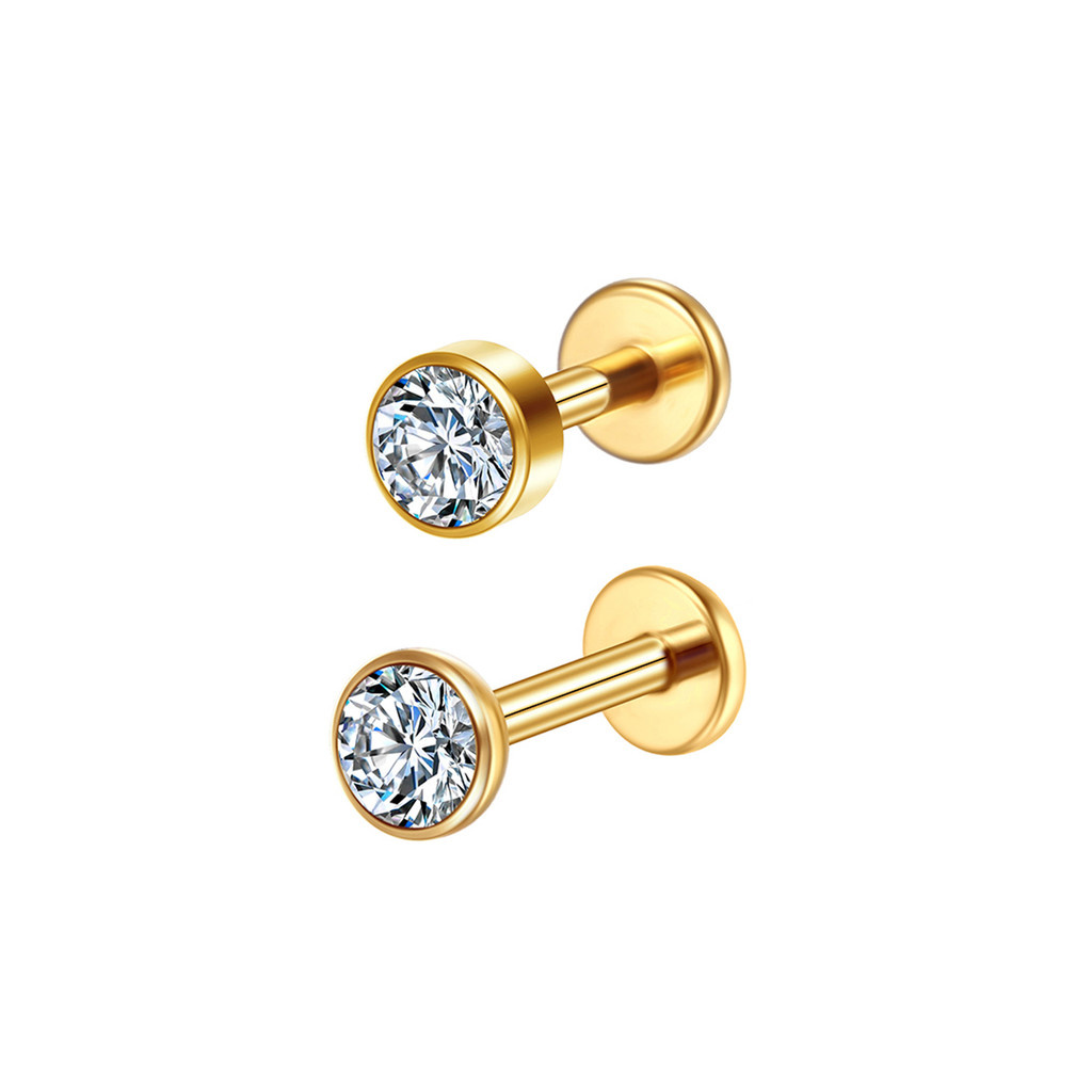 2PCS Kit Piercing Labret Aço Cirúrgico Zircônia Rosca Interna | Helix, Tragus, Conch, Nariz, Boca-Medusa e Outros