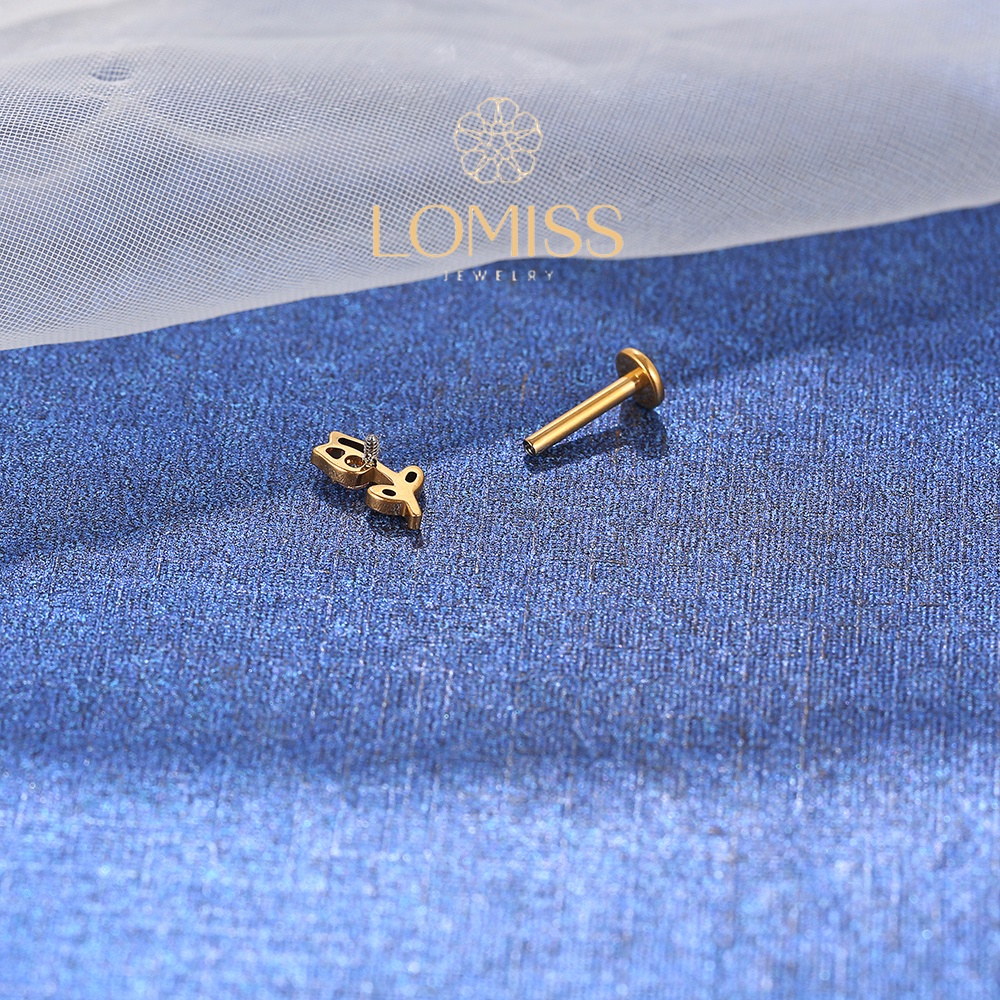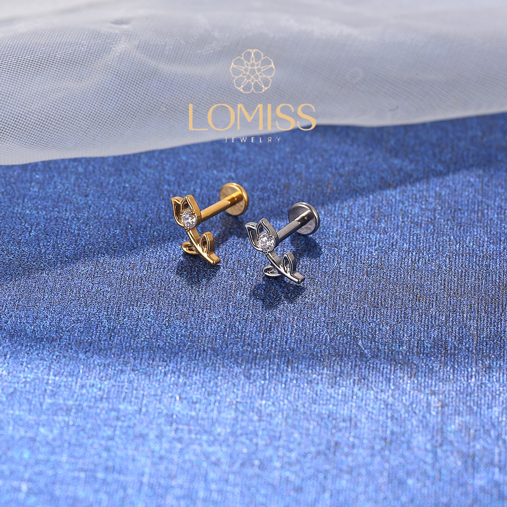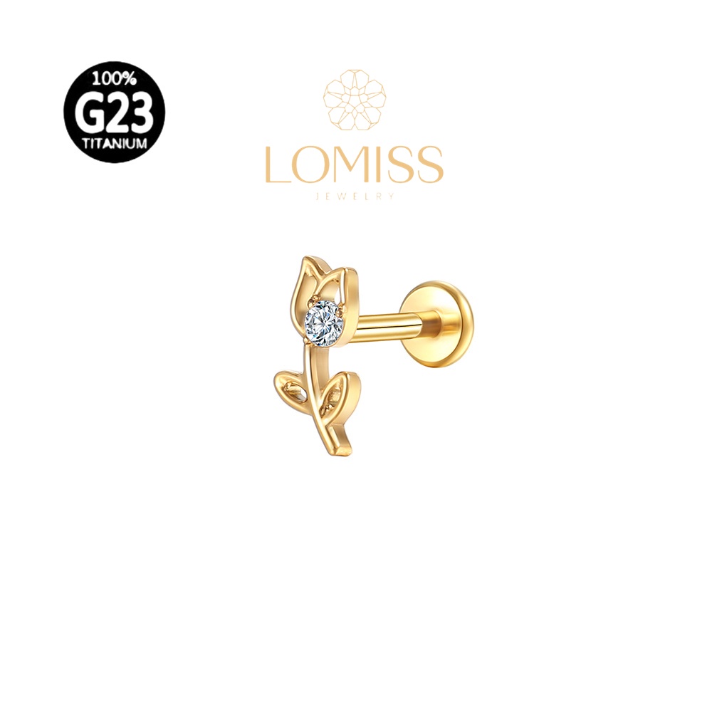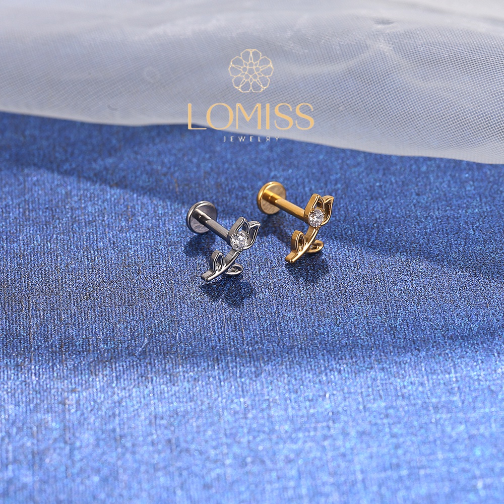 Piercing Labret Helix Tragus Conch Boca-Medusa Titânio G23 PVD Rosa Vazada Zircônia Lomiss piercing