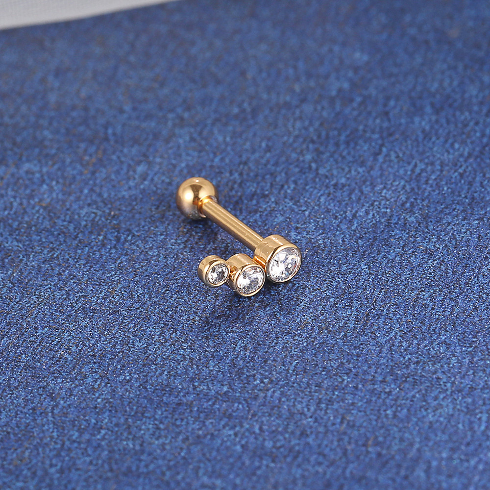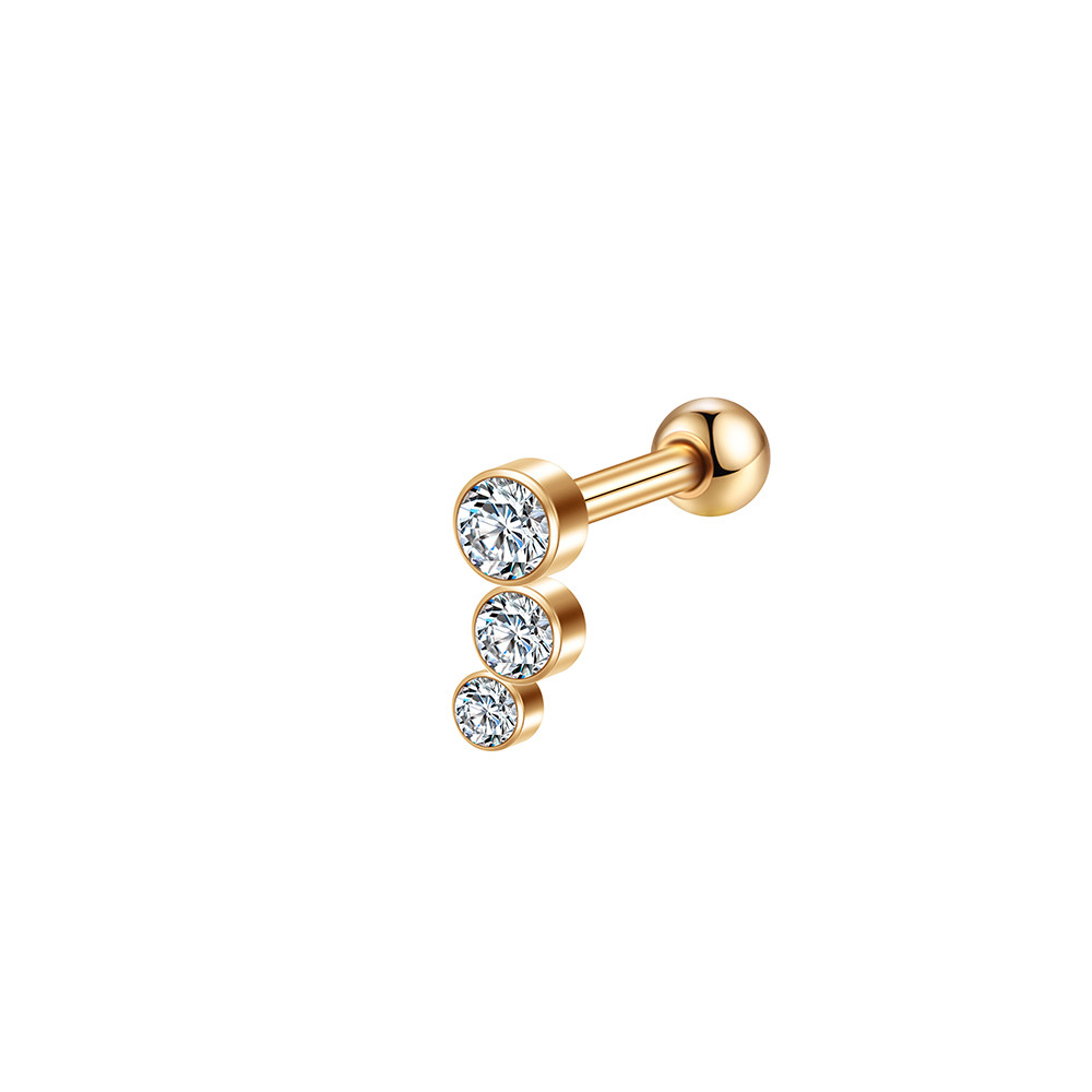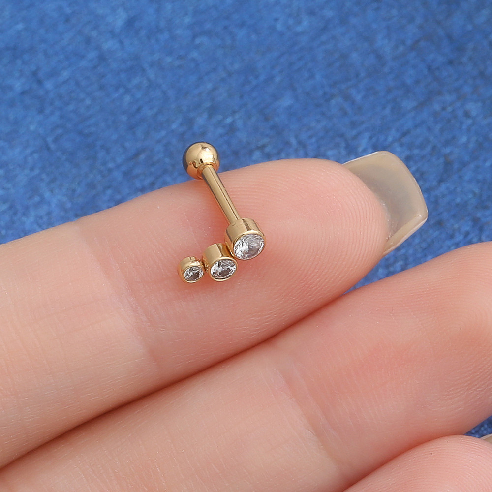 Lomiss Piercing Helix Tragus Conch Minibarbell Aço Cirúrgico Trio Zircônia Cravada