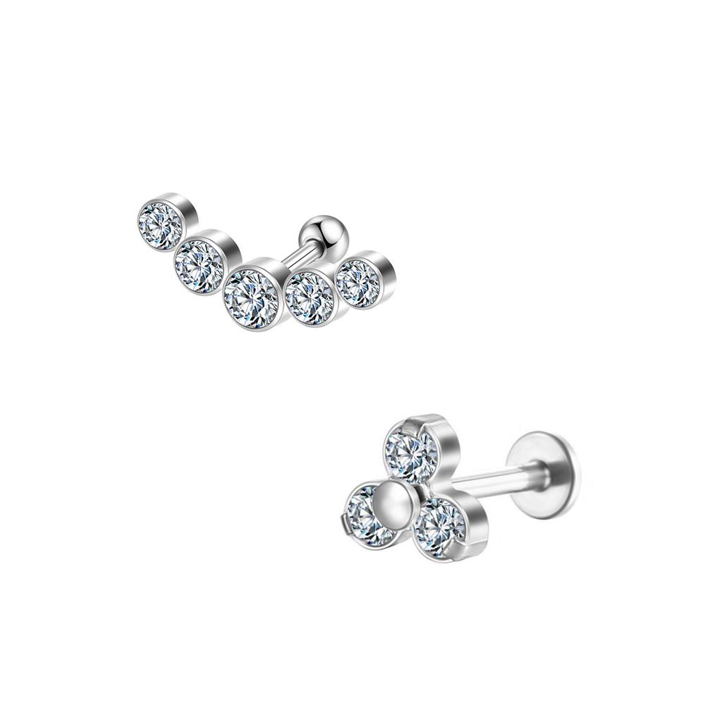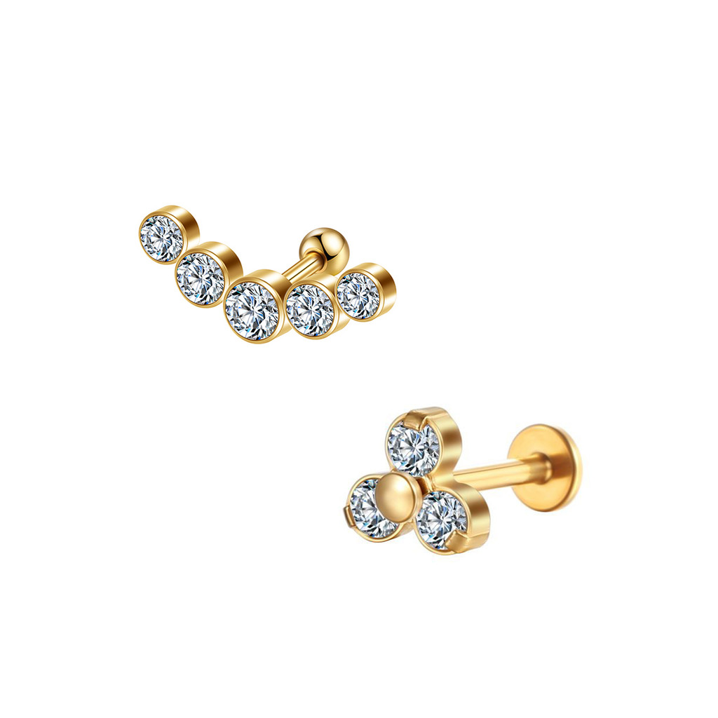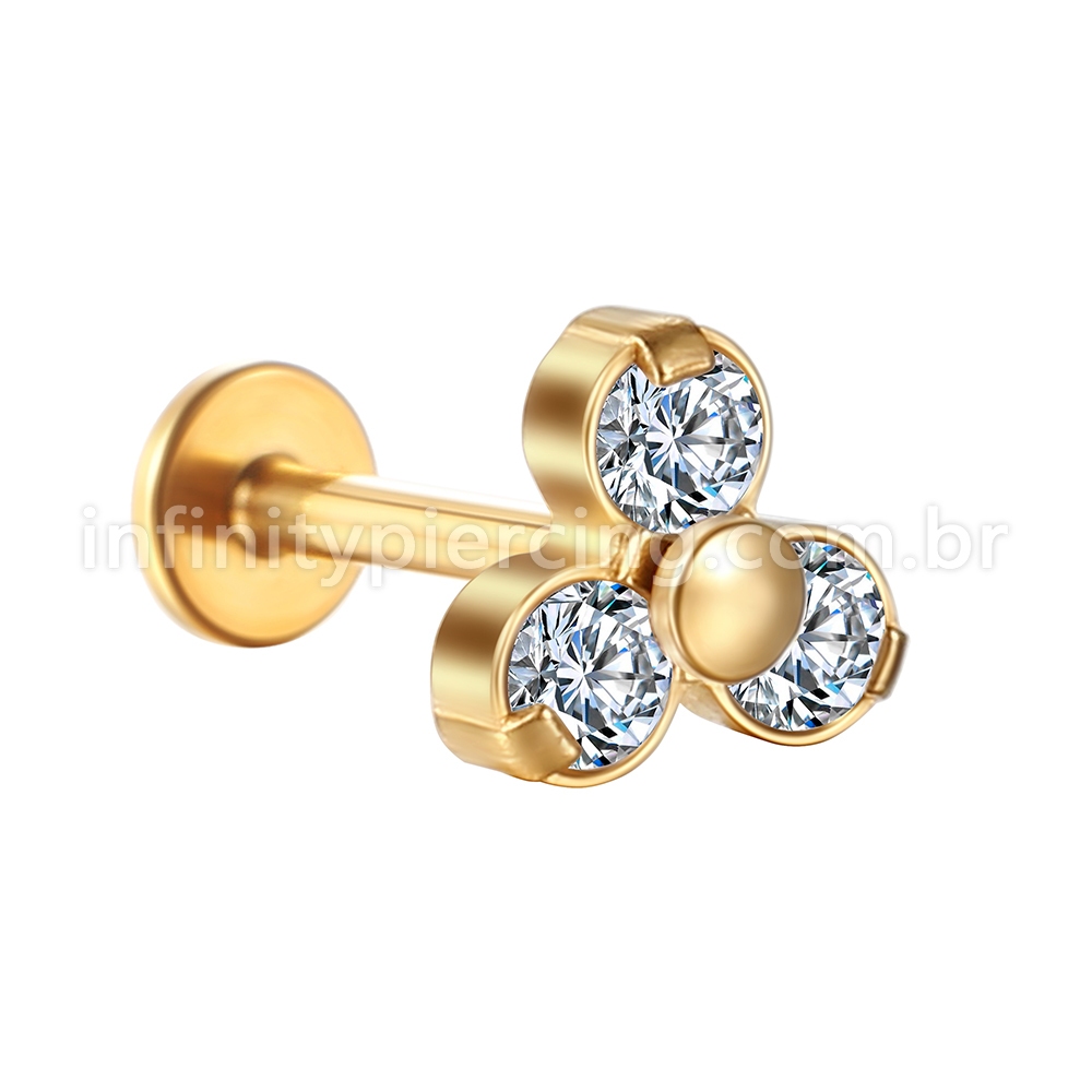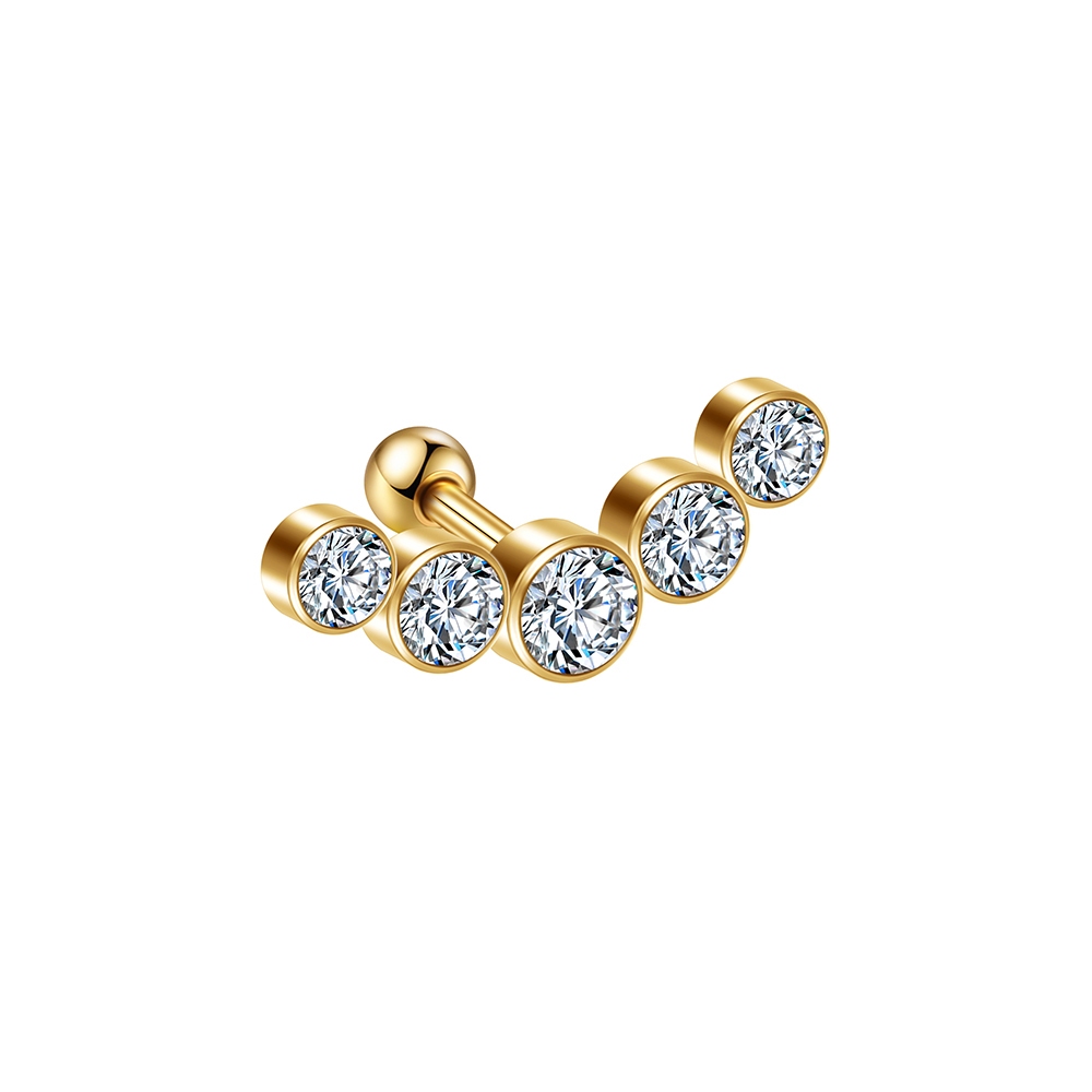 Piercing Minibarbell Aço Cirúrgico PVD Strass / Helix, Flat, Conch, Tragus, Lóbulo e Outros Piercing Orelha