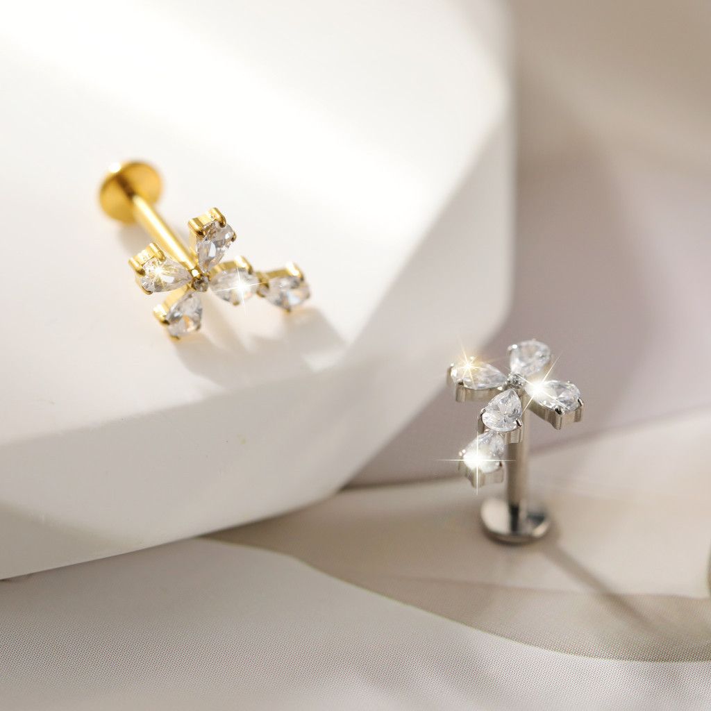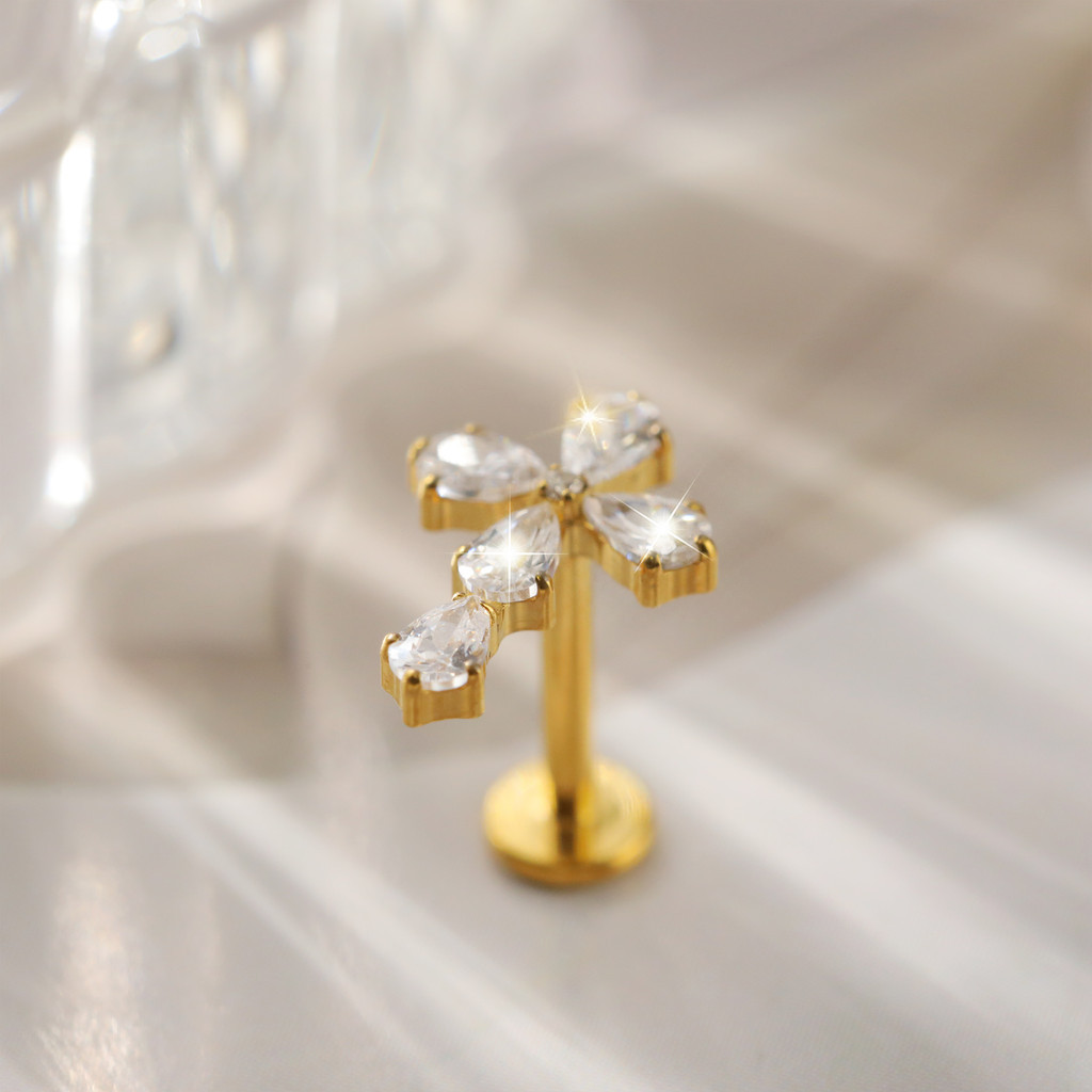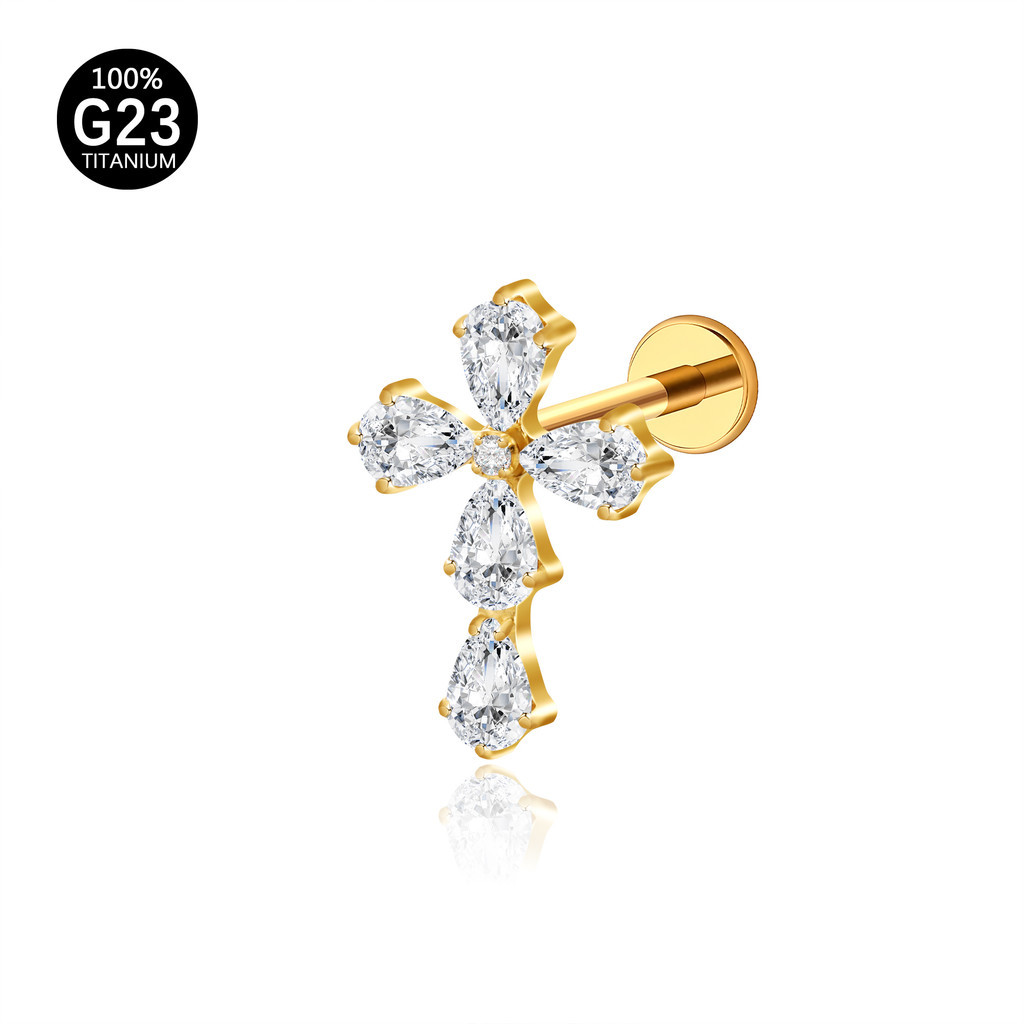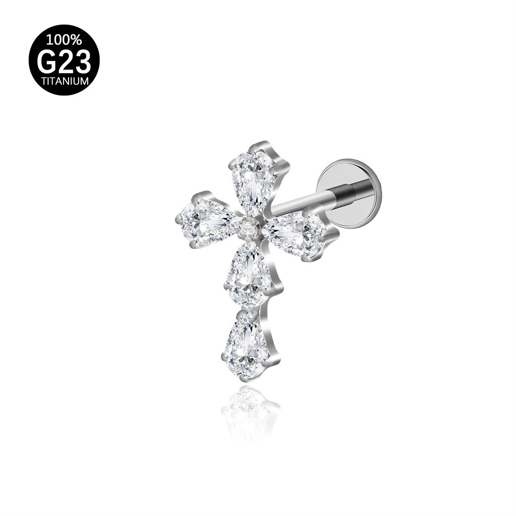 Lomiss Piercing Labret Titânio Pvd Cruz Zircônia Cravejada Helix Tragus Conch Nariz