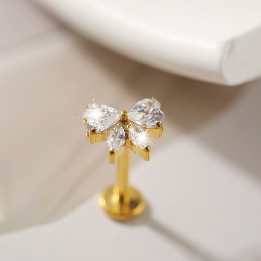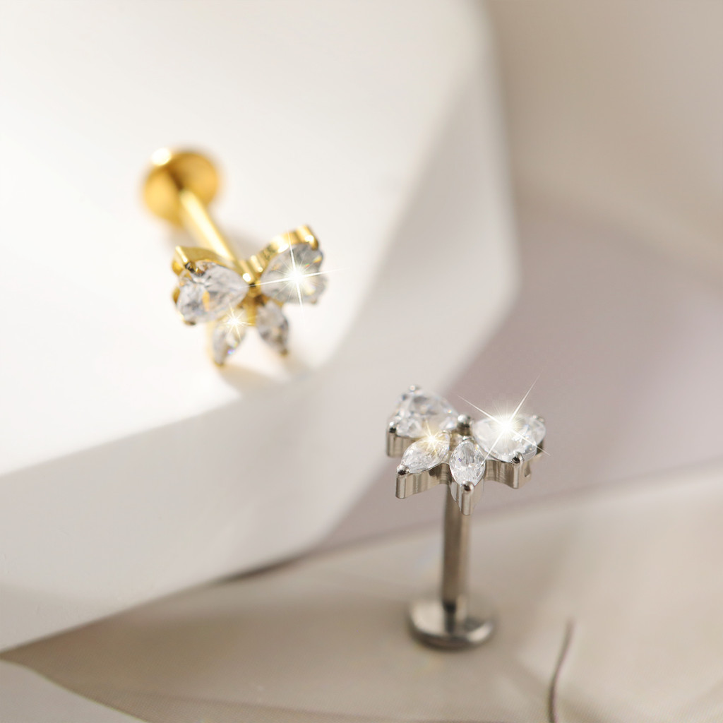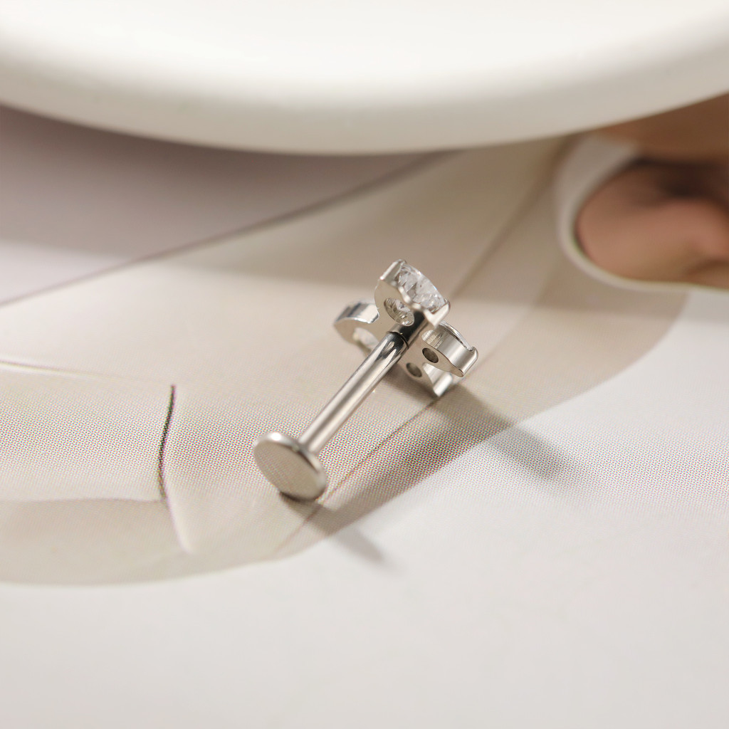 Lomiss Piercing Labret Titânio Pvd Laço Zircônia Cravejada Orelha Helix Conch Nariz Tragus