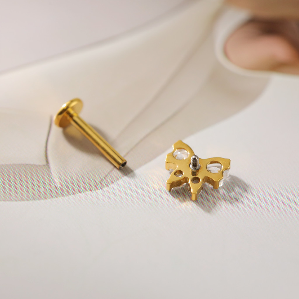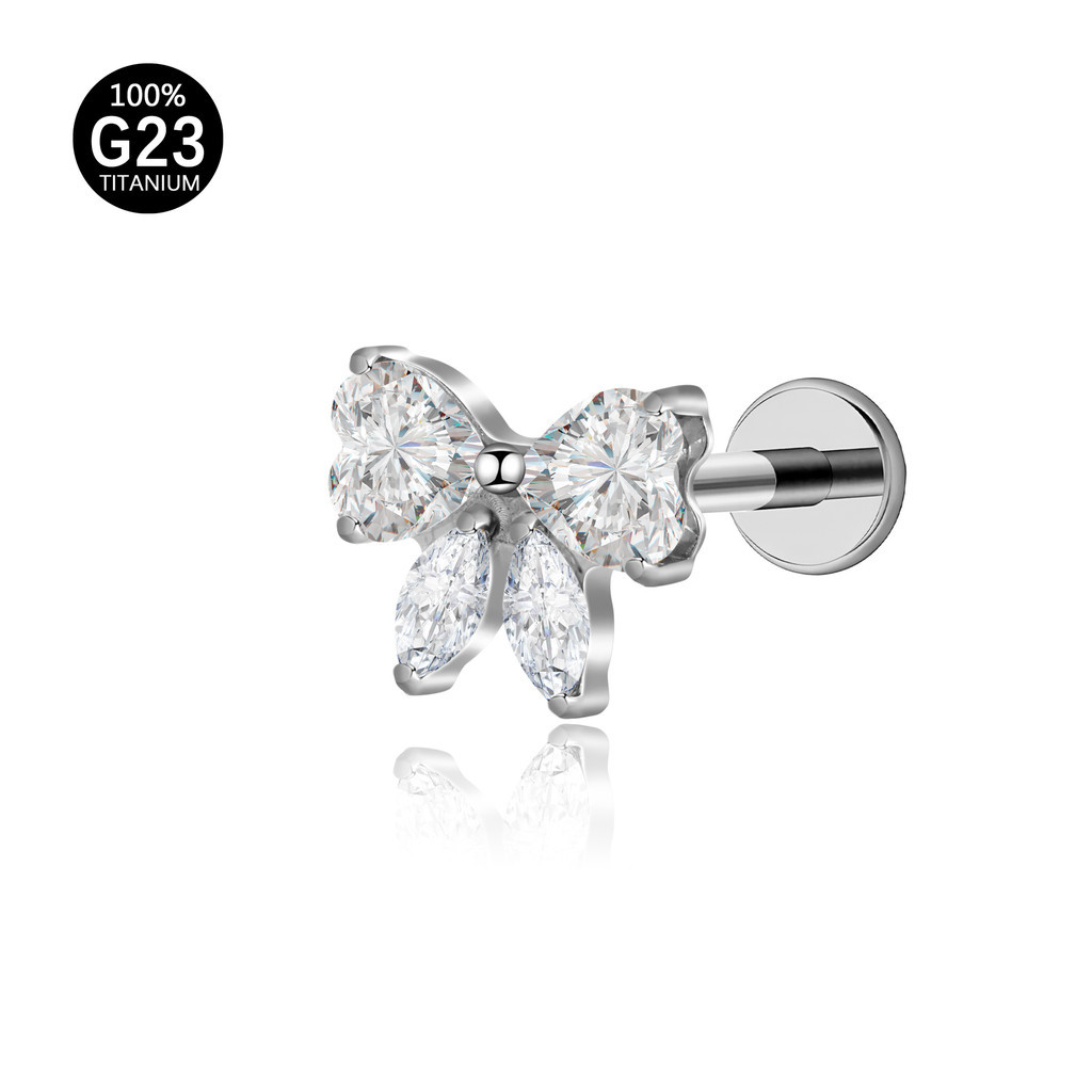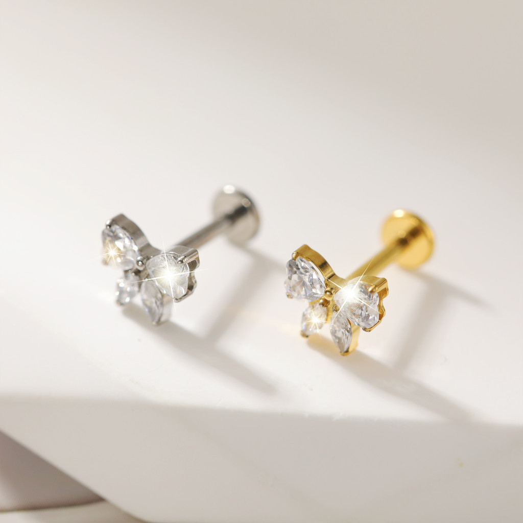 Lomiss Piercing Labret Titânio Pvd Laço Zircônia Cravejada Orelha Helix Conch Nariz Tragus