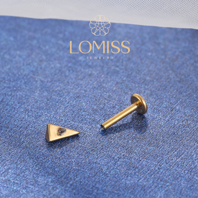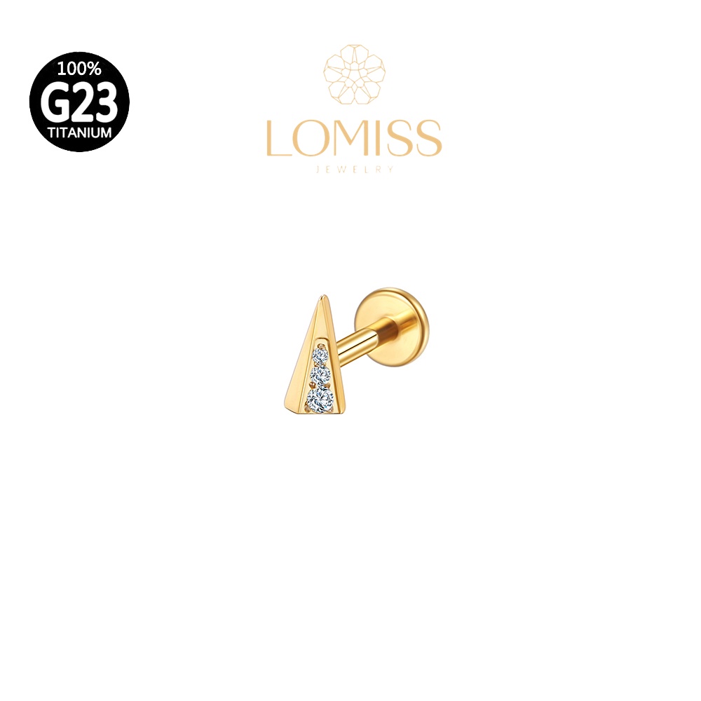 Piercing Helix Conch Labret Titânio PVD Triângulo Zircônia 《Lomiss semijoias》