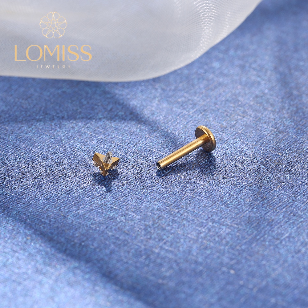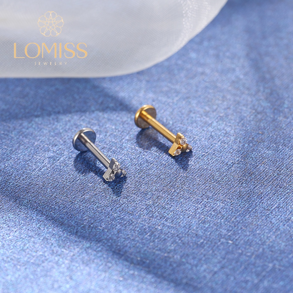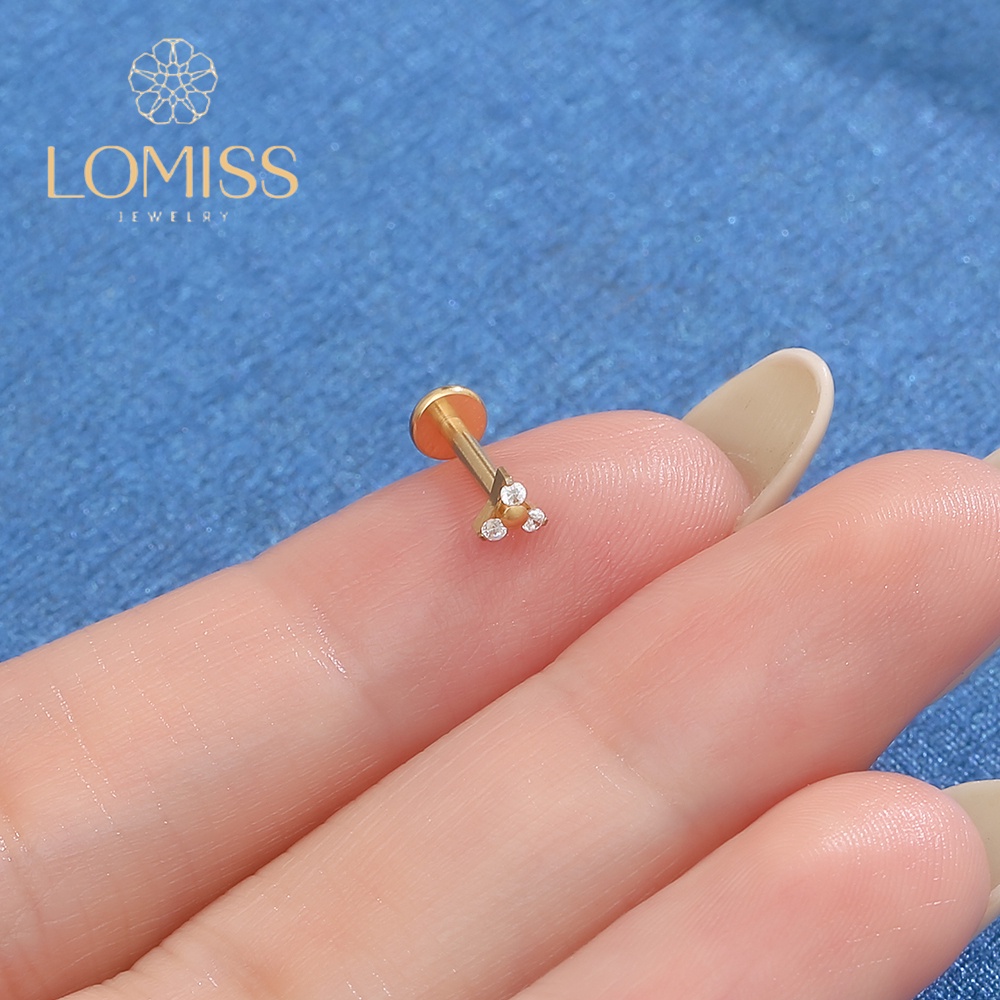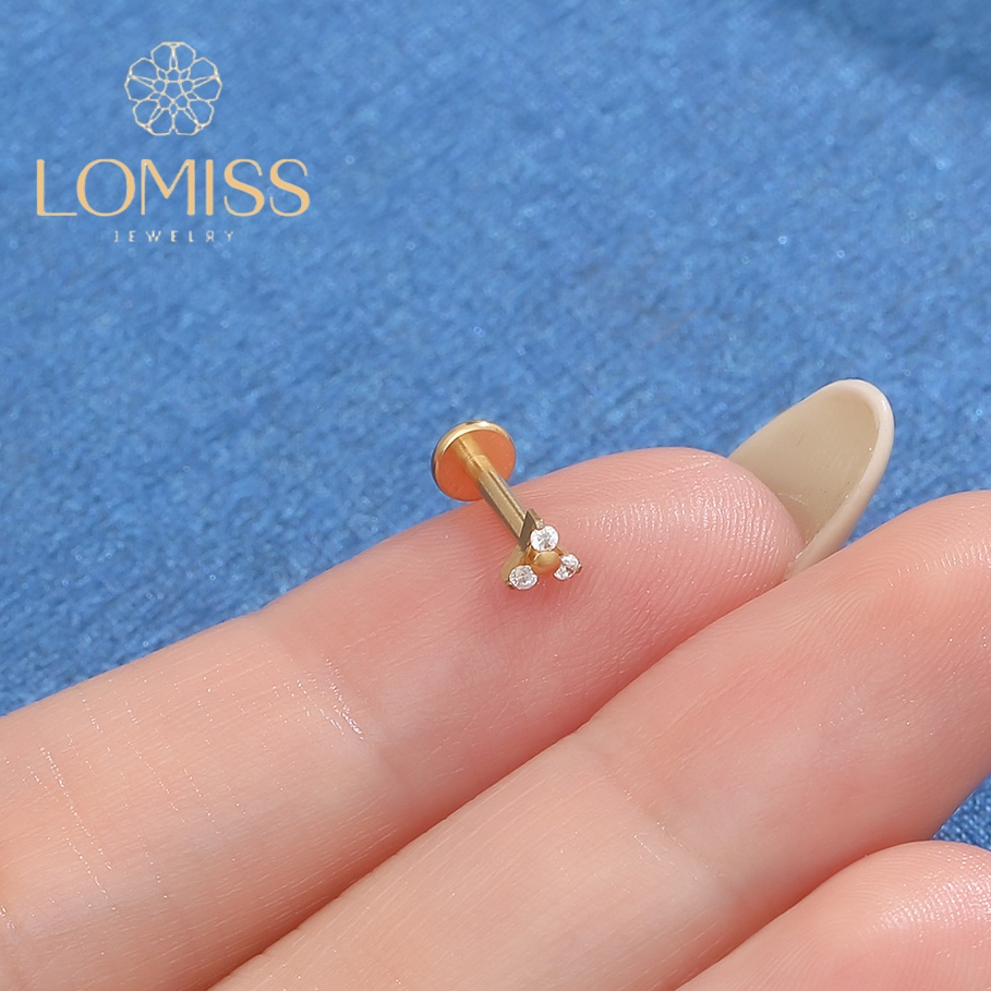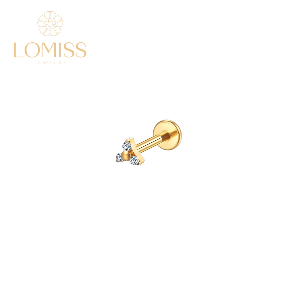 Piercing Helix Tragus Conch Nariz Boca-Medusa Labret Aço Cirúrgico PVD com Três Zircônias