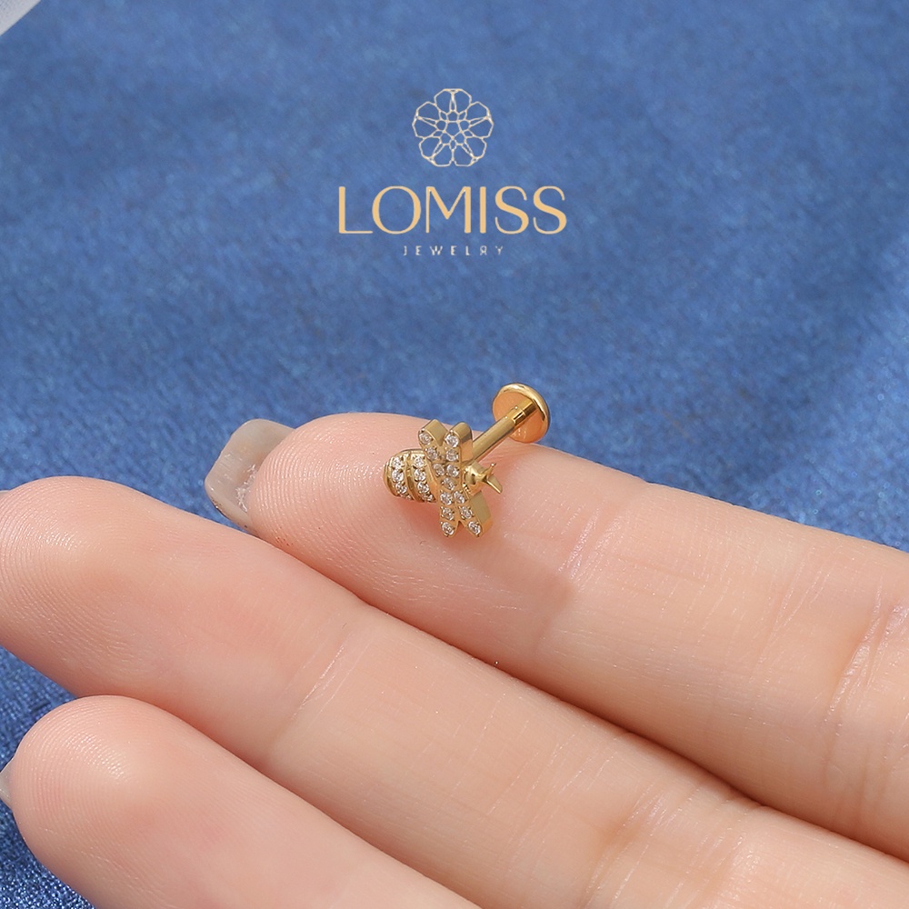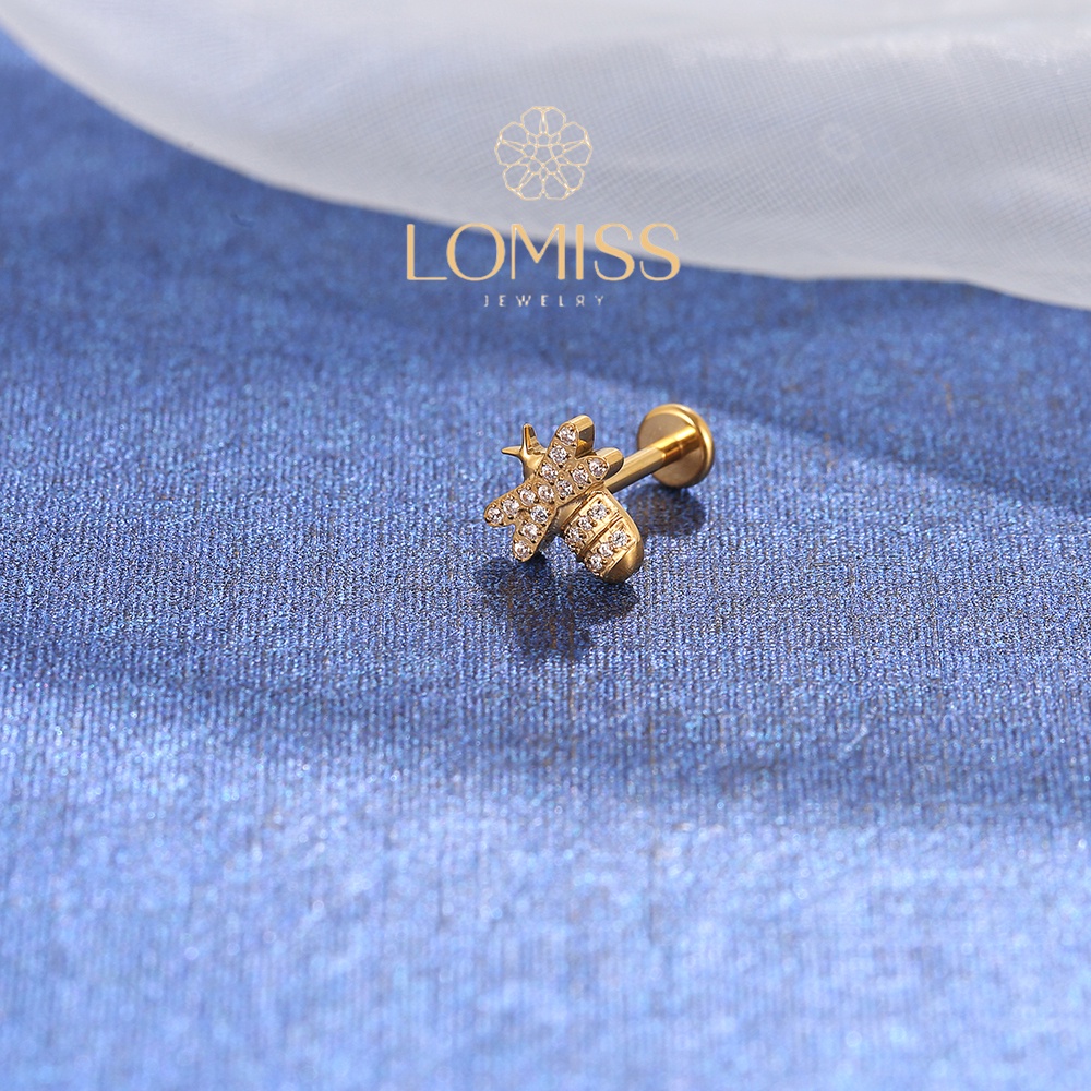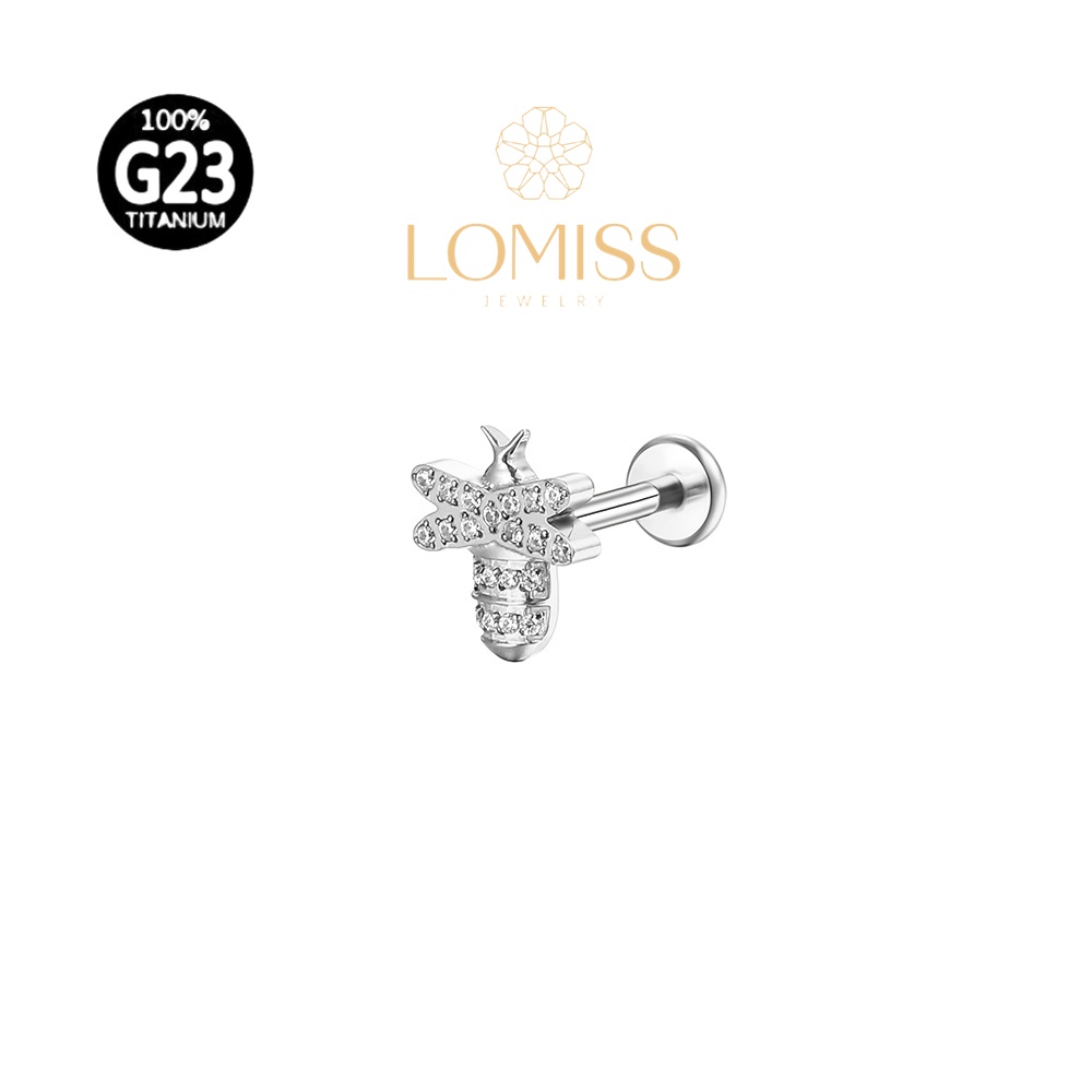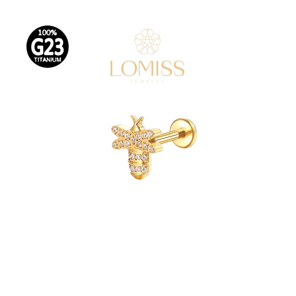 Piercing Orelha Labret Titânio Pvd Abelha Zircônia Lomiss piercing