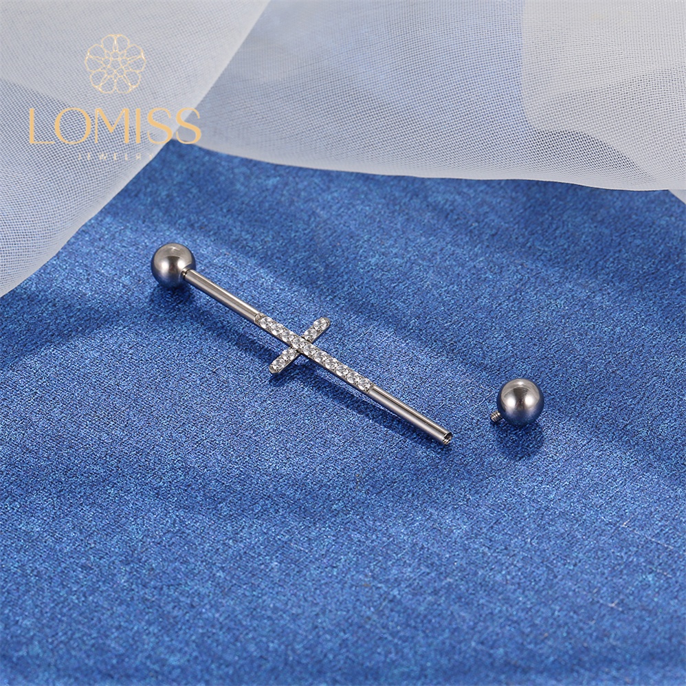 Piercing Transversal Titânio Zircônia Cruzado Lomiss piercing