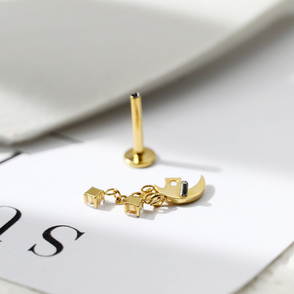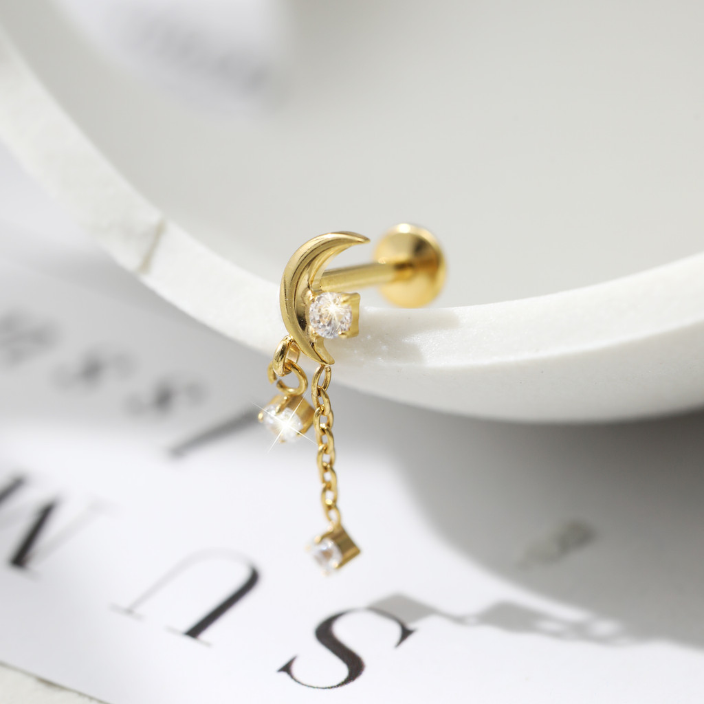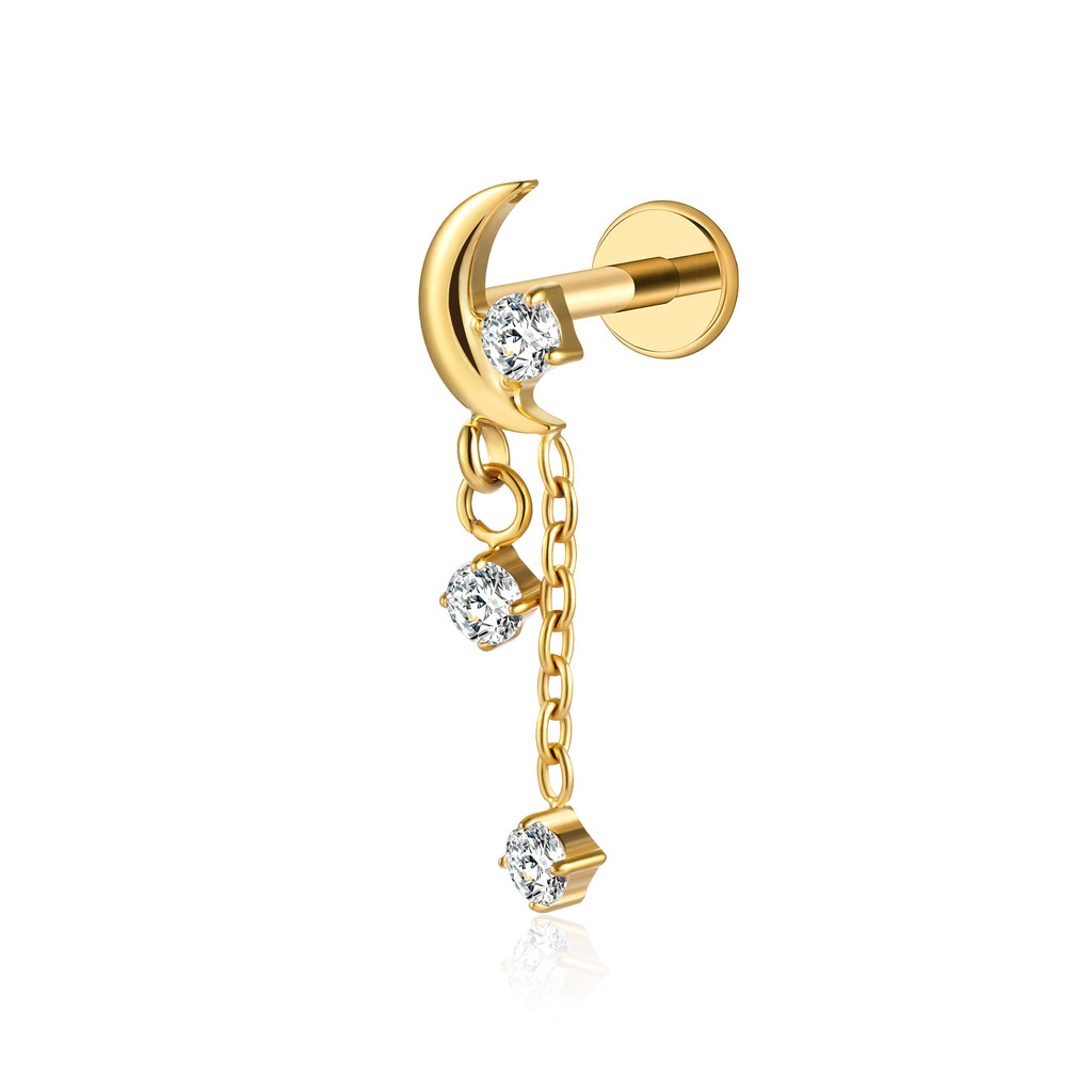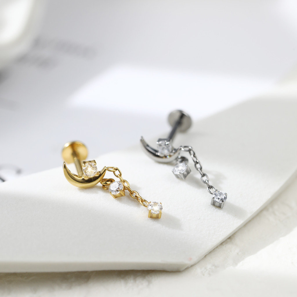 Lomiss Piercing Helix Tragus Conch Labret Titânio Lua Com Correntes Zircônias