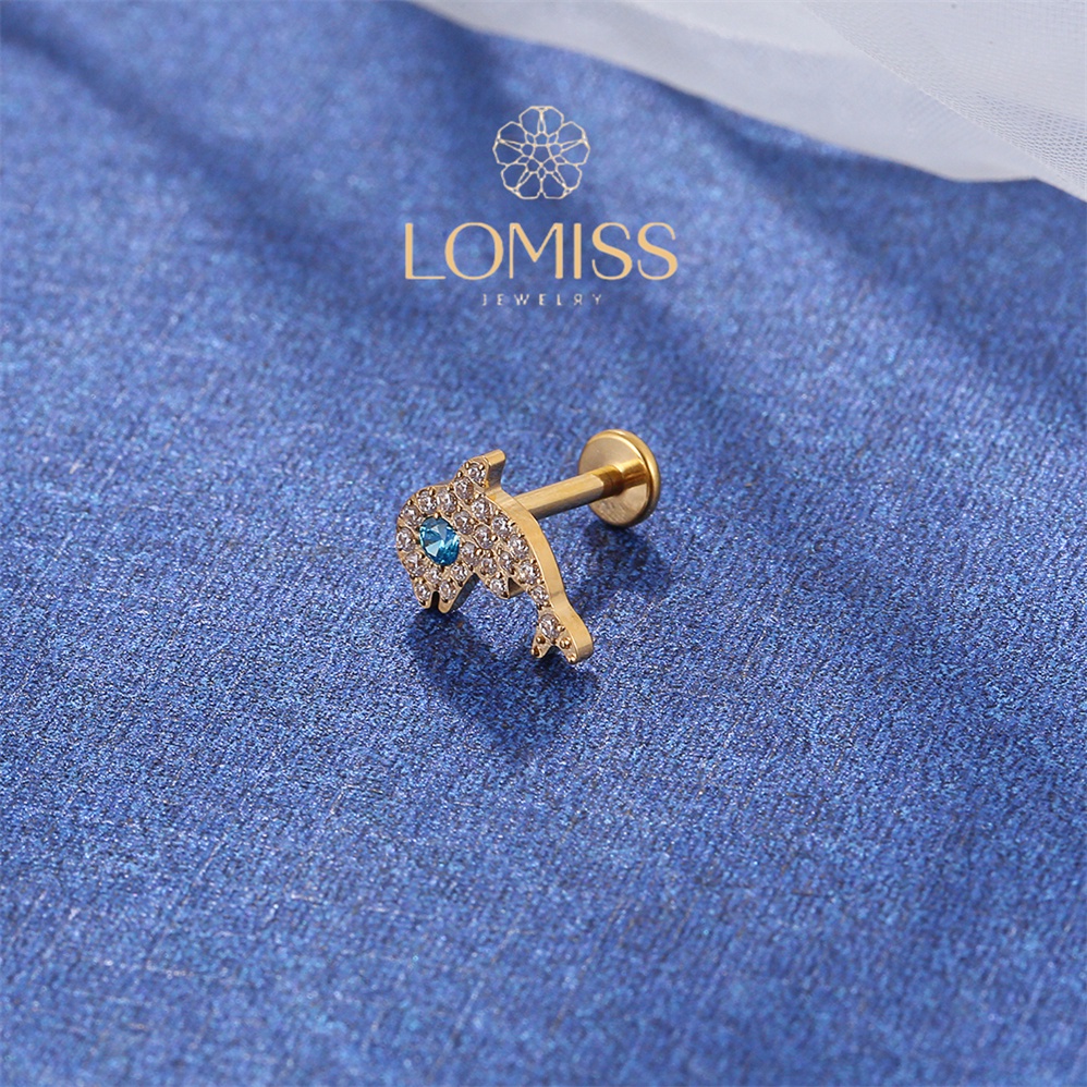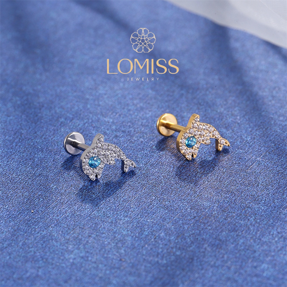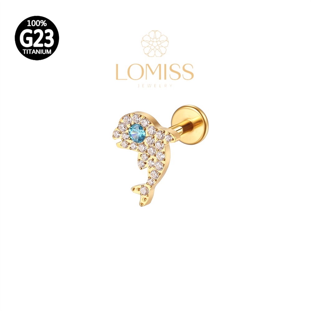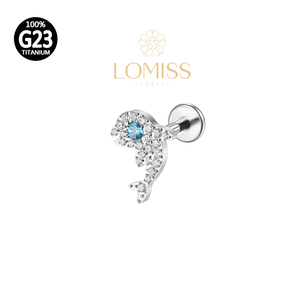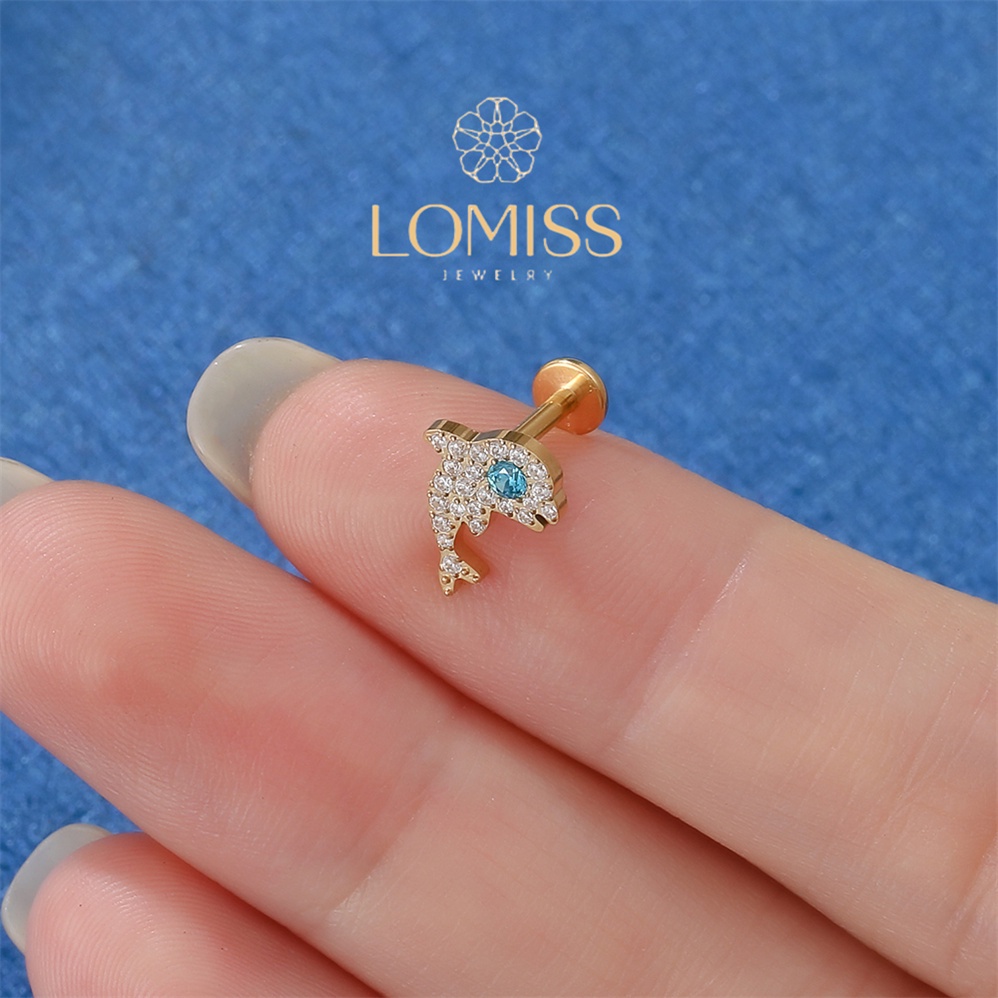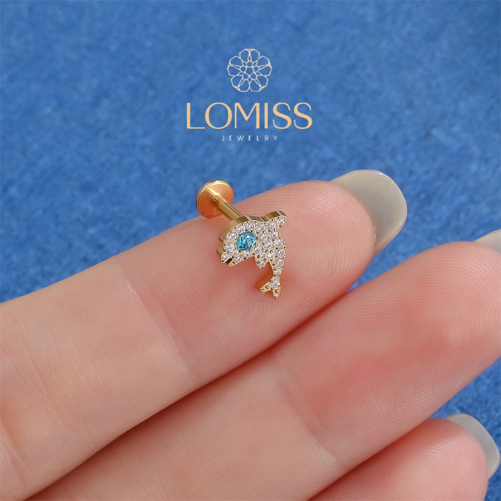 【LOMISS】Piercing Helix Tragus Conch Boca-Medusa Labret Titânio Pvd Golfinho Zircônia Lomiss piercing