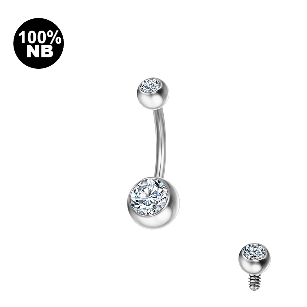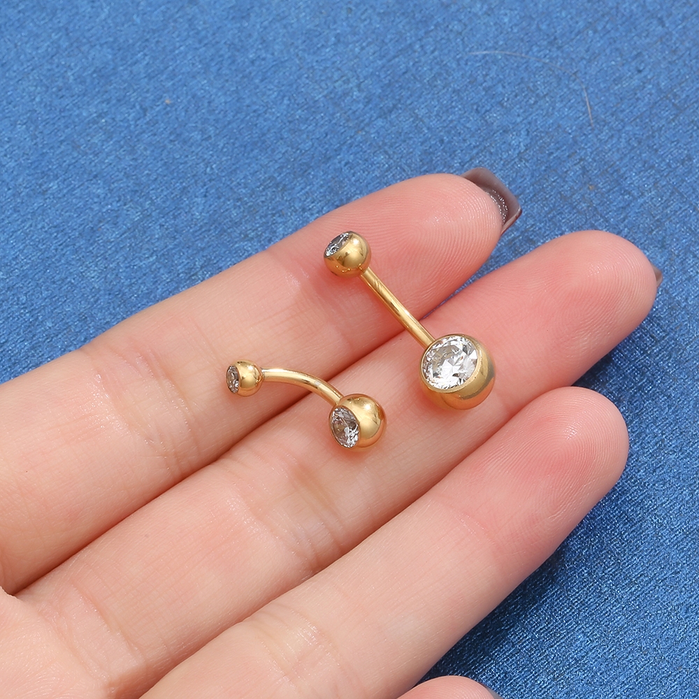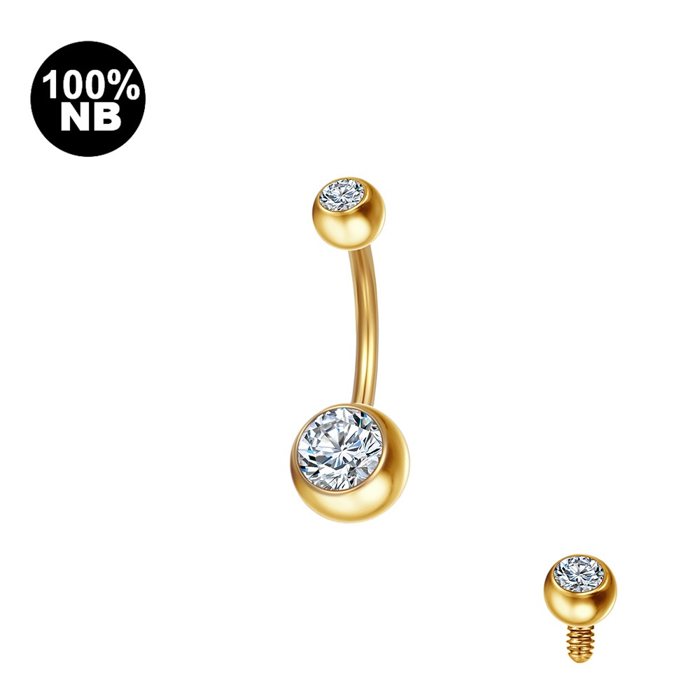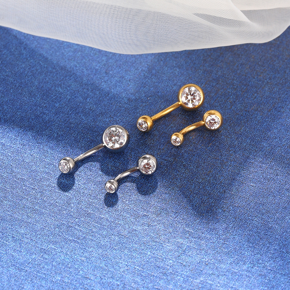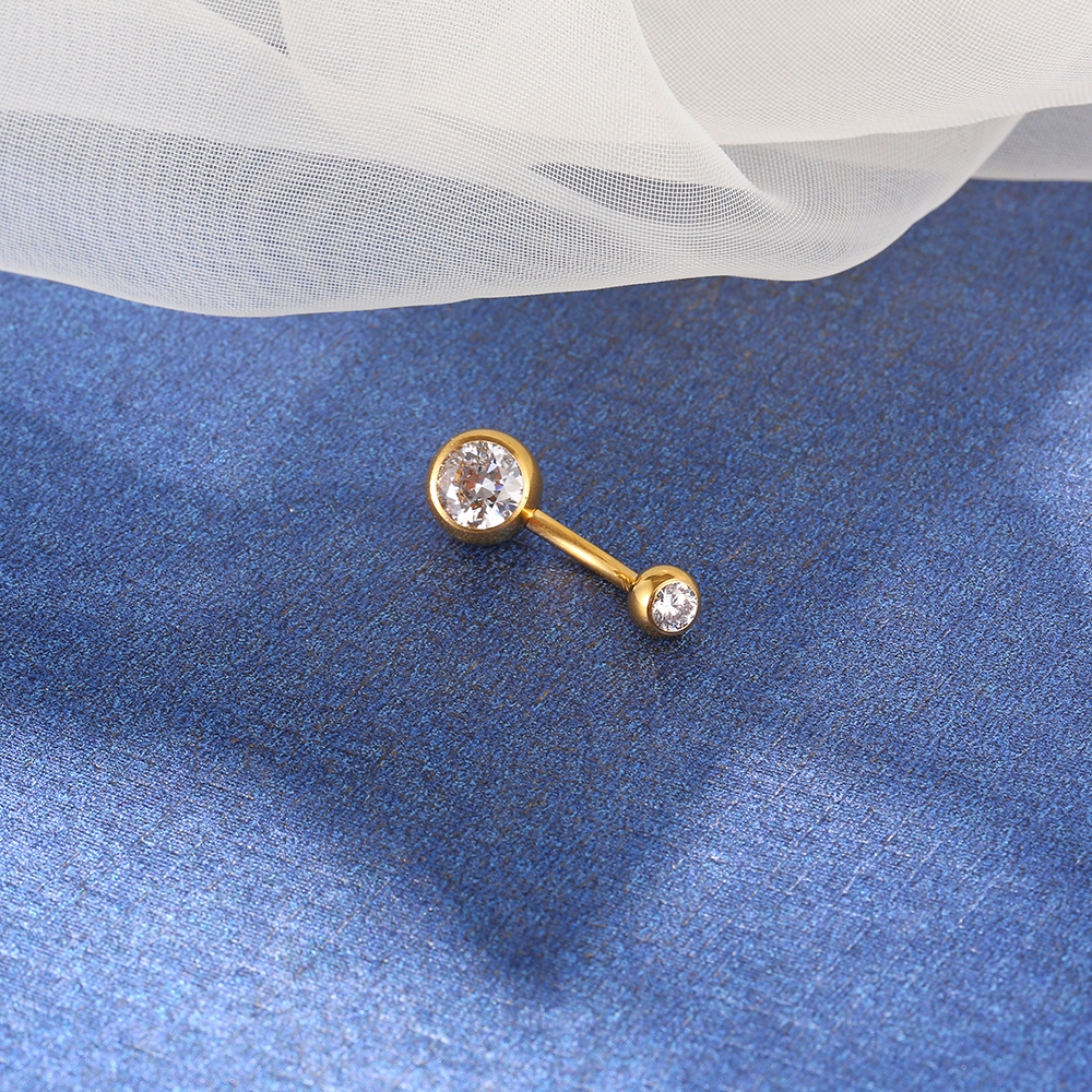 Piercing Umbigo Banana Nióbio Pvd 2 Pedras Zircônia Rosca Interna