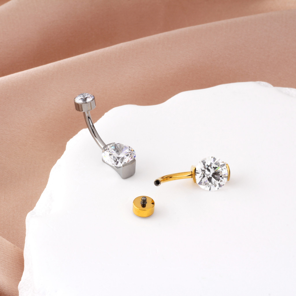 Lomiss Piercing Umbigo Banana Titânio 2 Zircônia Redonda