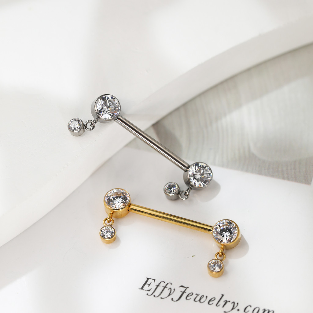 Piercing Barbell Titânio Mamilo Com Pingentes