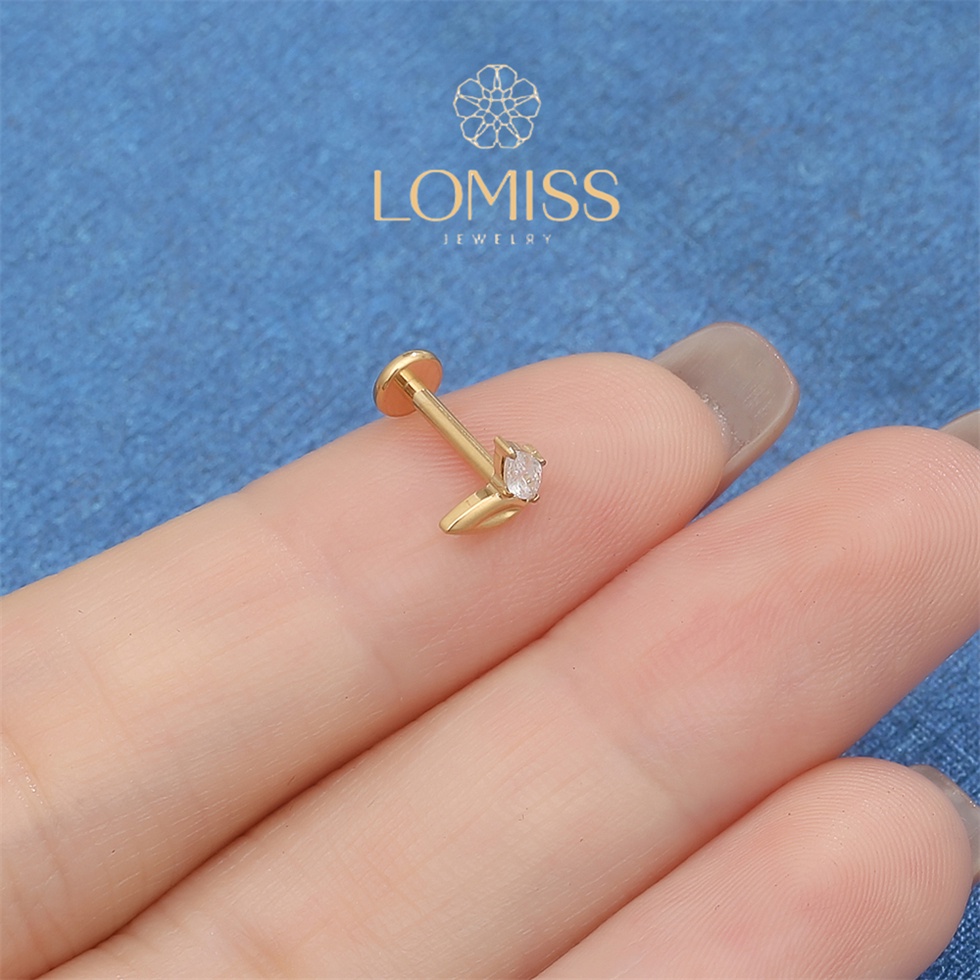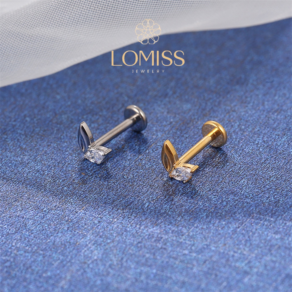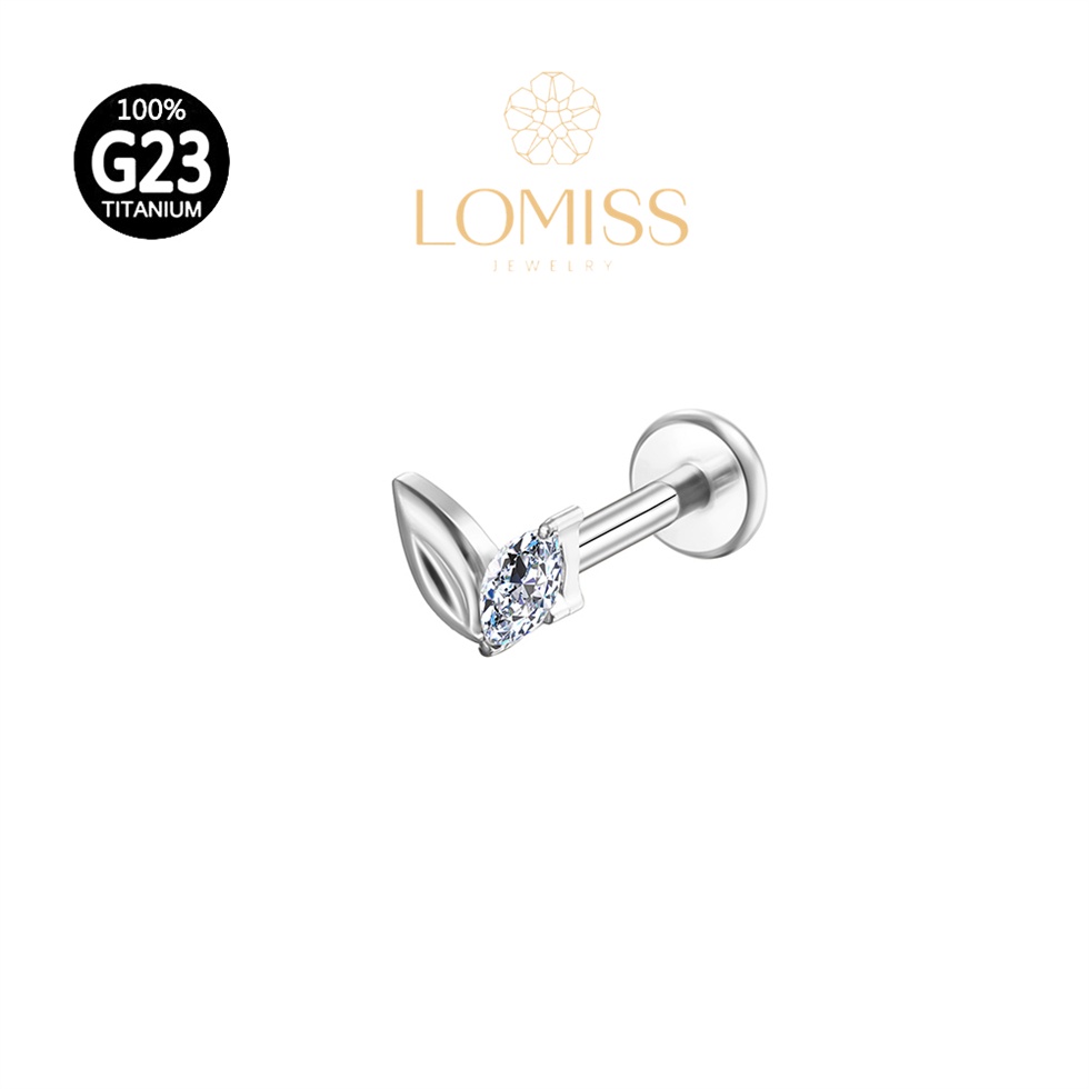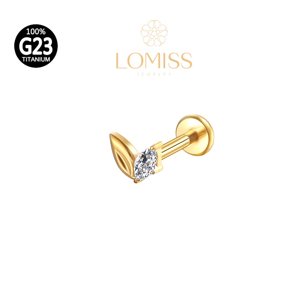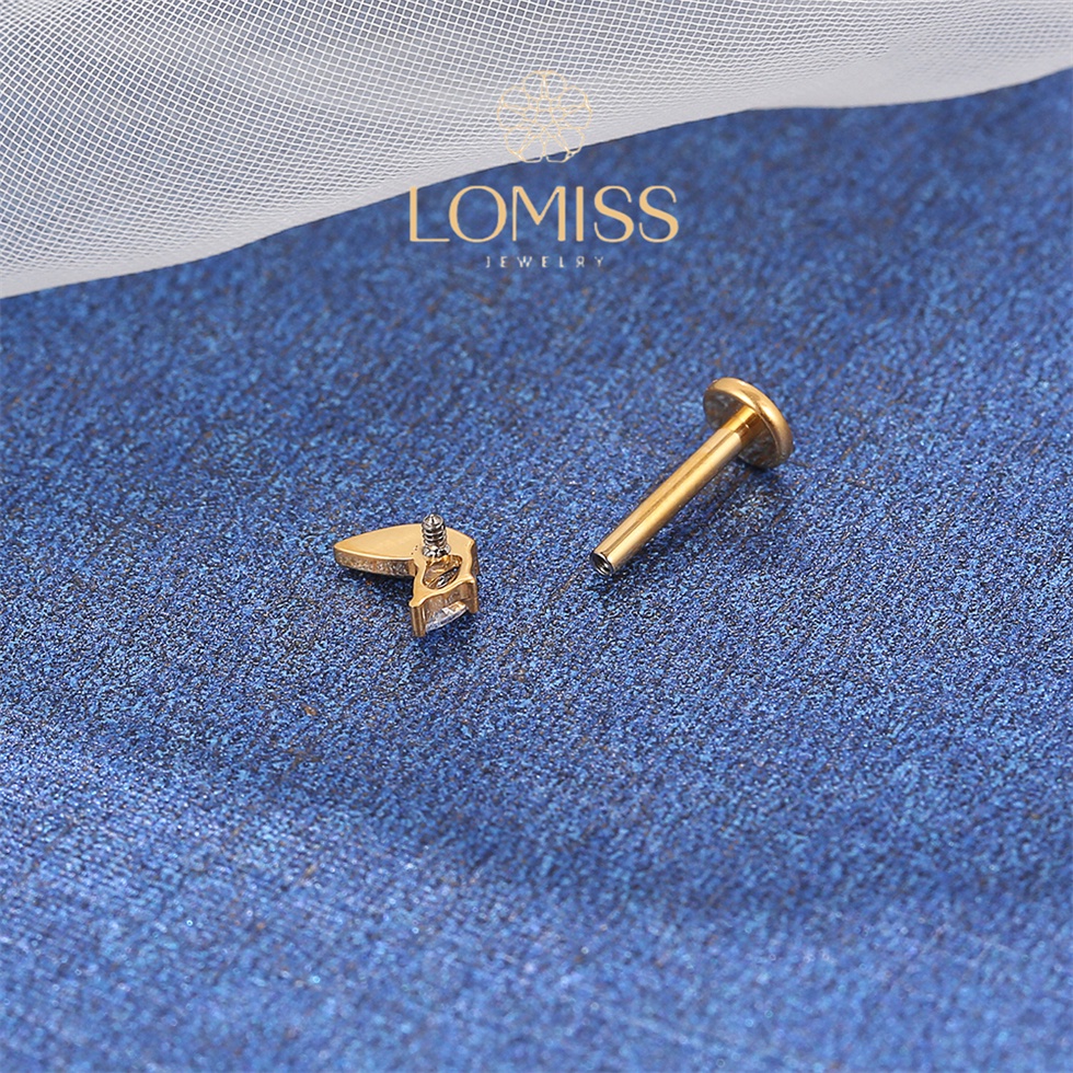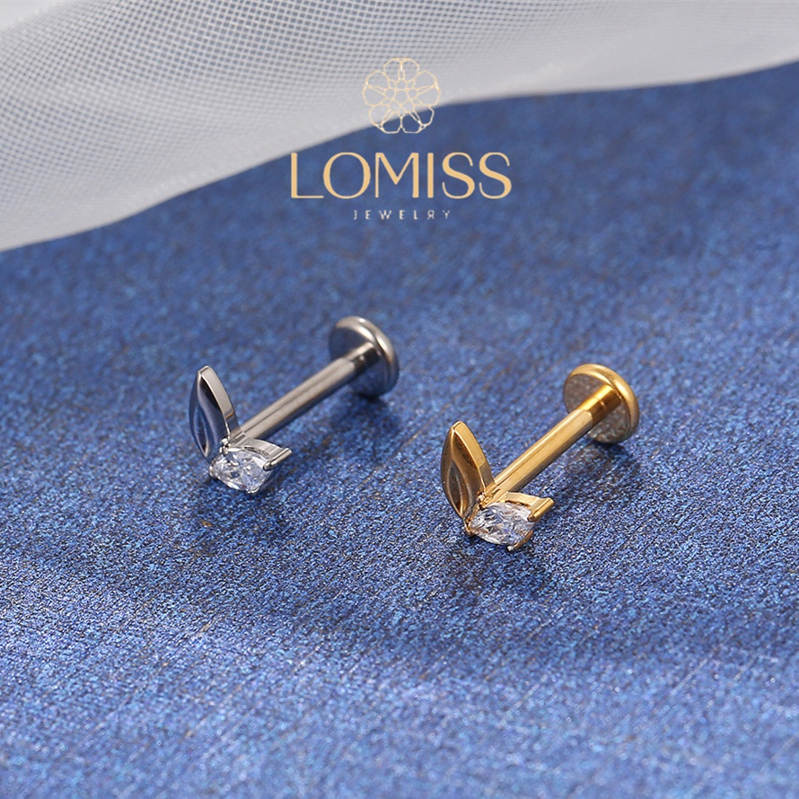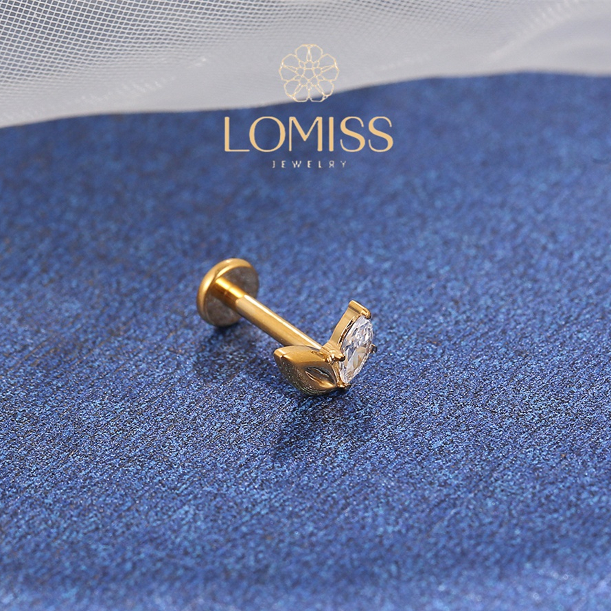 Piercing Orelha Labret Titânio PVD 2 Pétalas com Zircônia Brilhante《Lomiss semijoias》