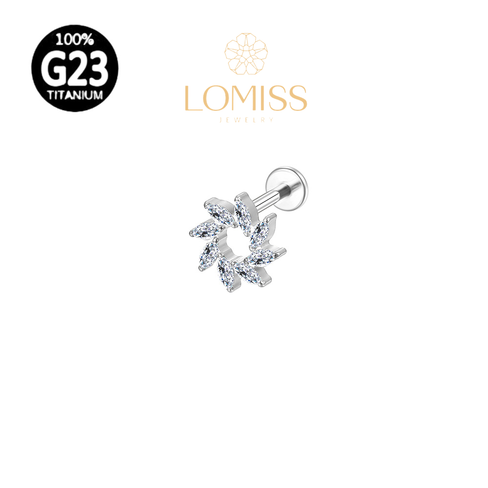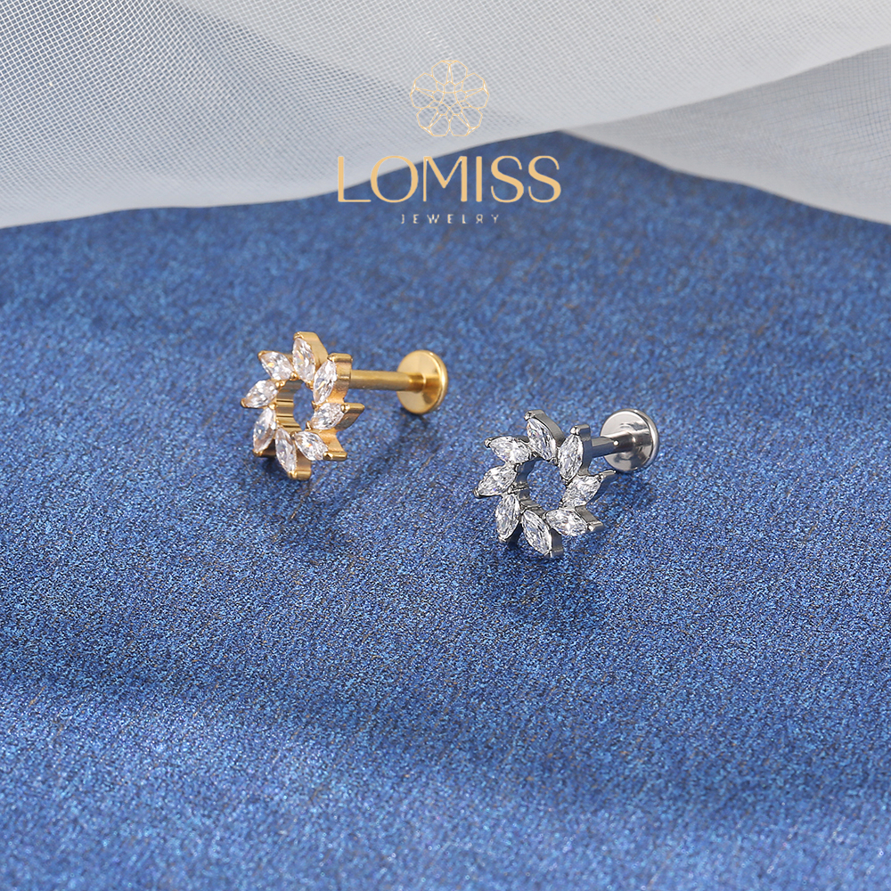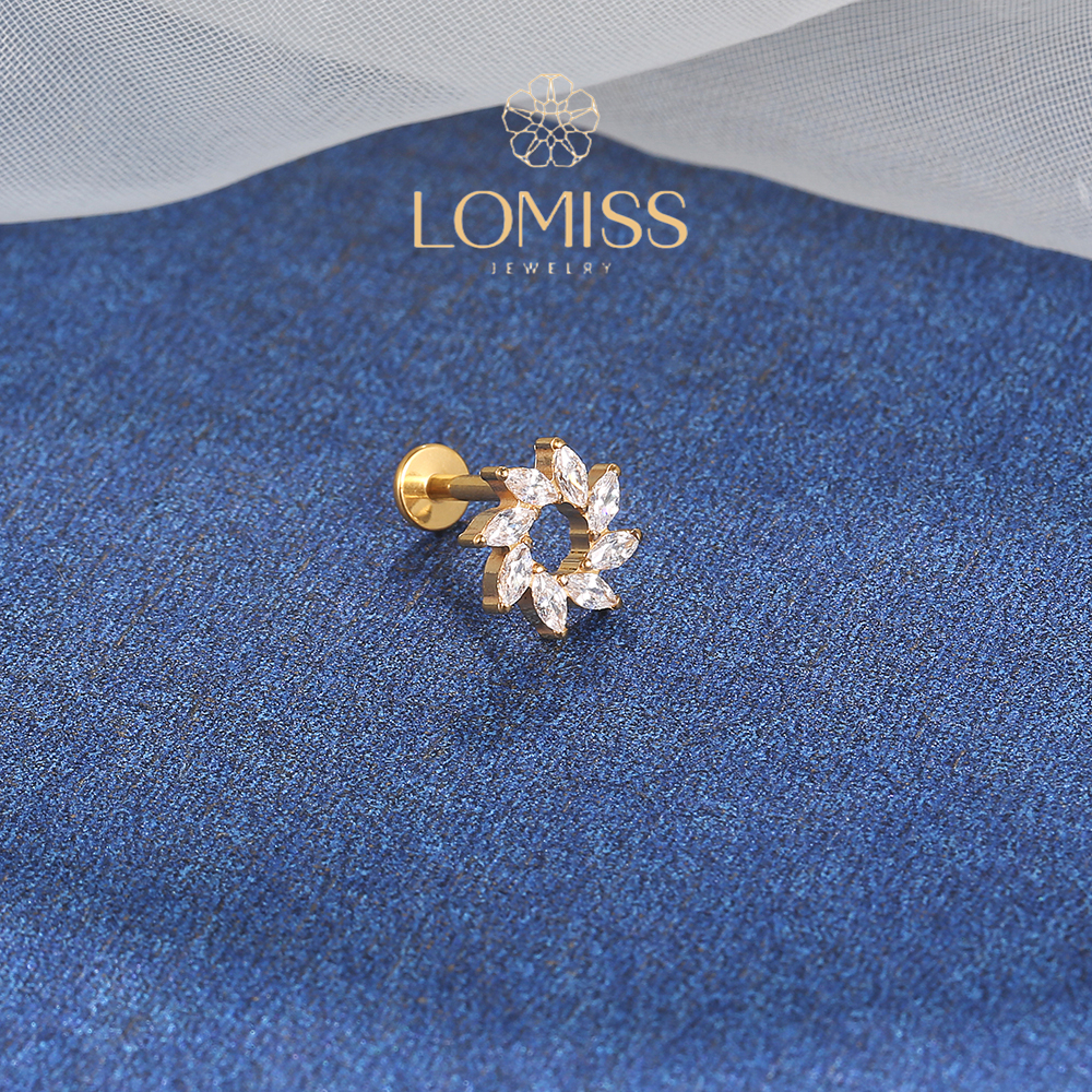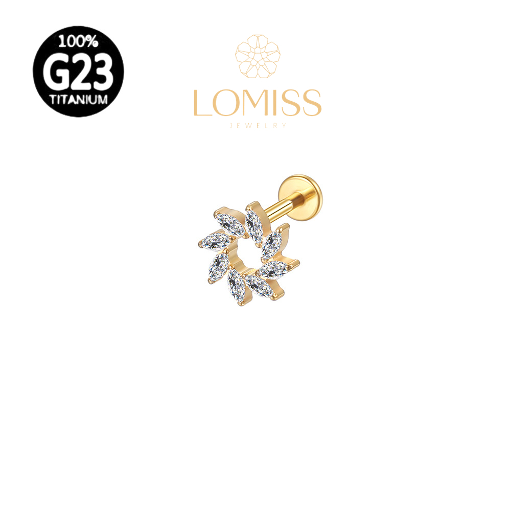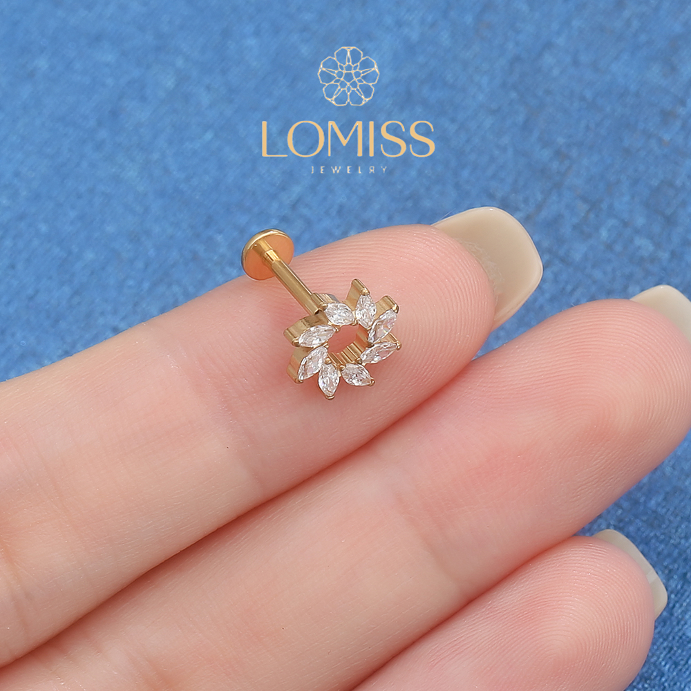 Piercing Helix Conch Labret Titânio Pvd Redondo Zircônias Oval Cravejadas