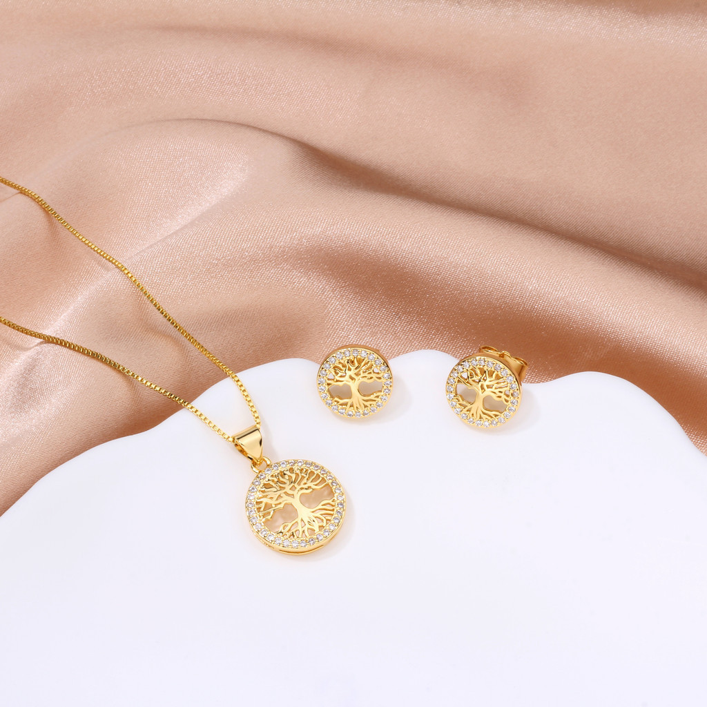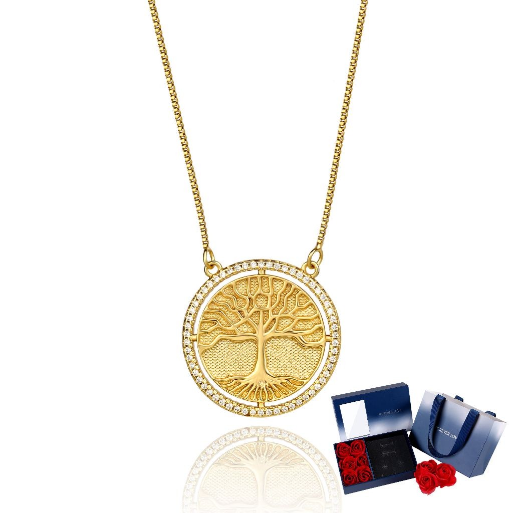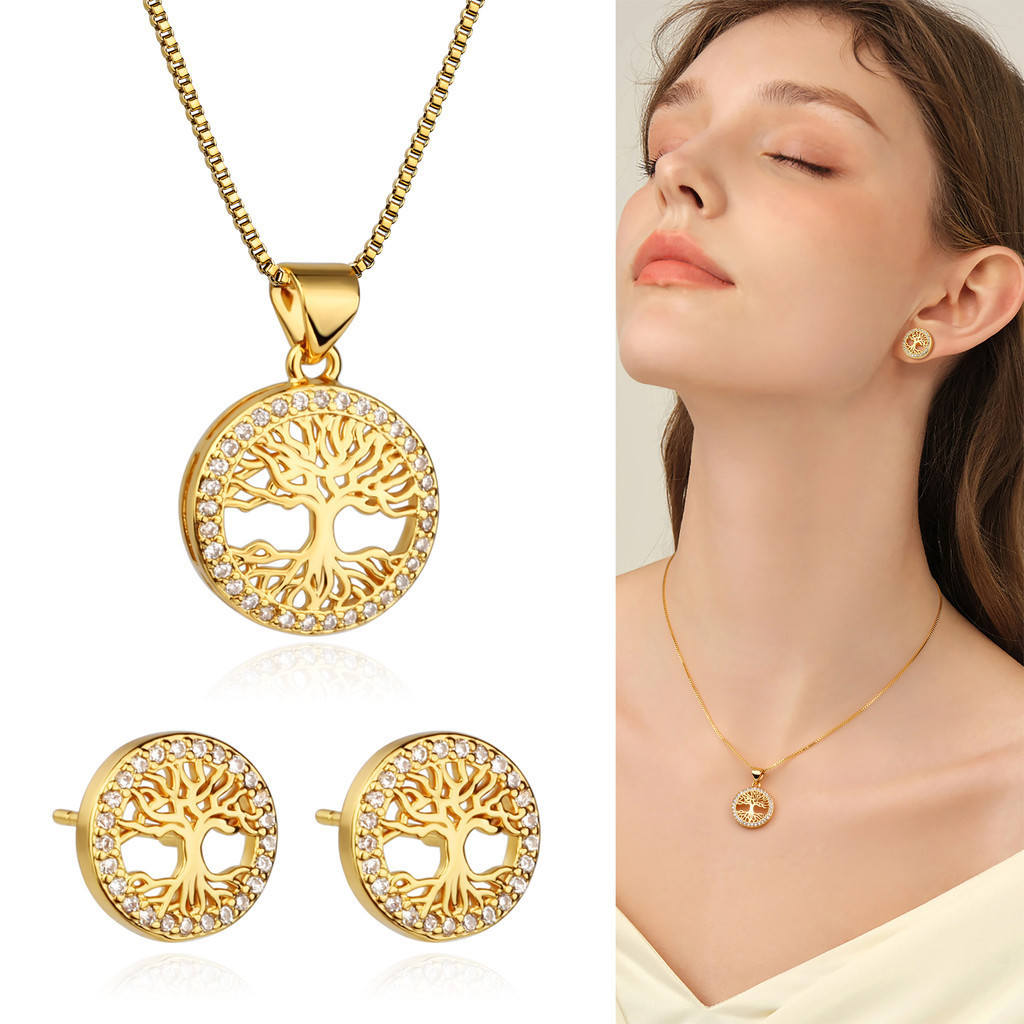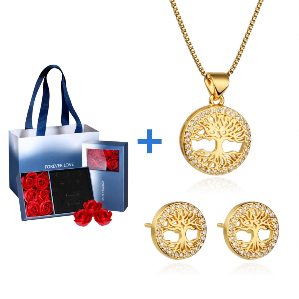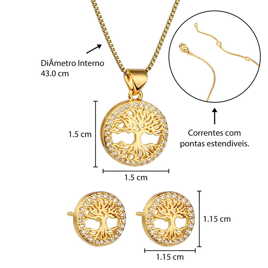Kit Colar Brincos Feminino Arvore Da Vida Folheado a Our 18k Conjunto Caixa De Presente Para Es