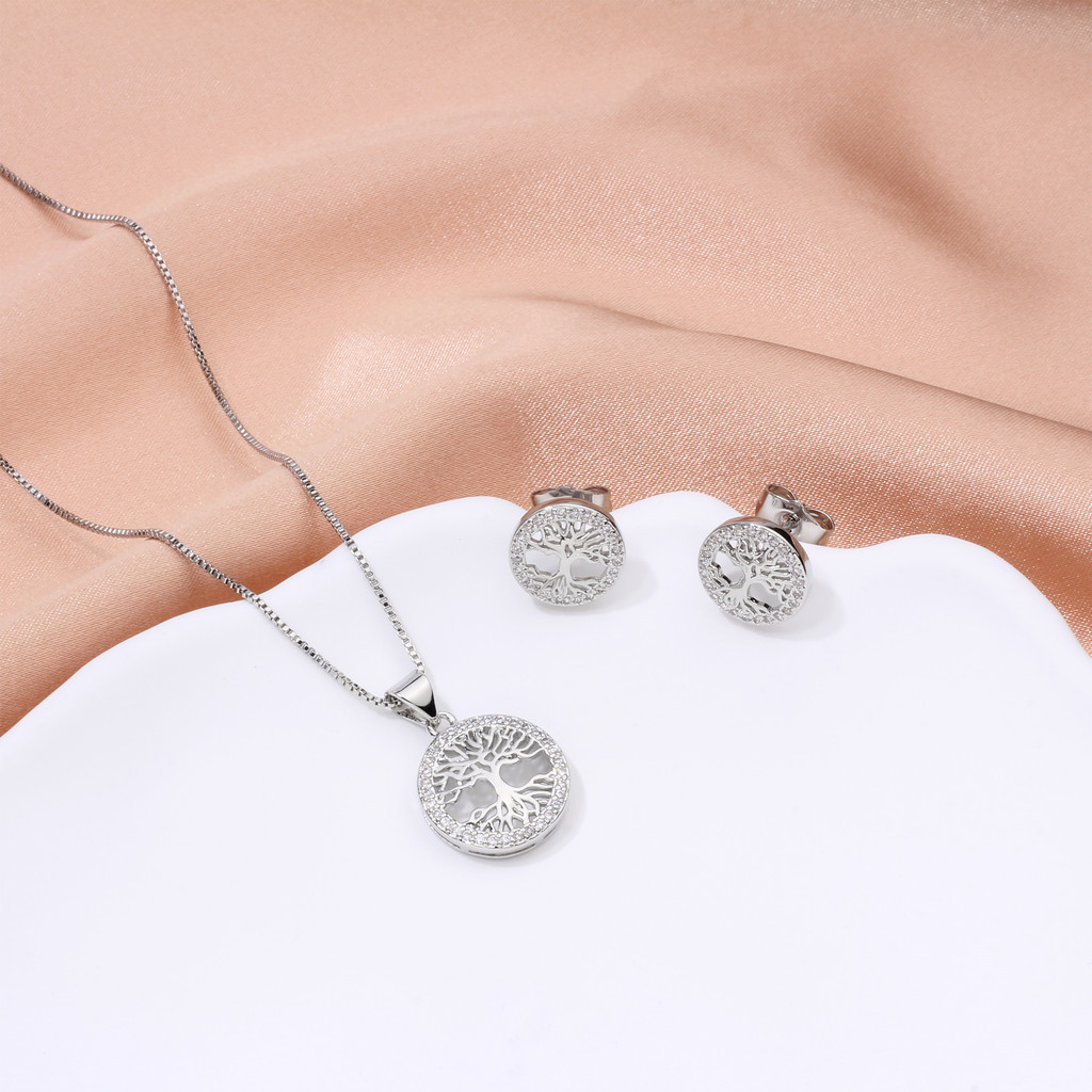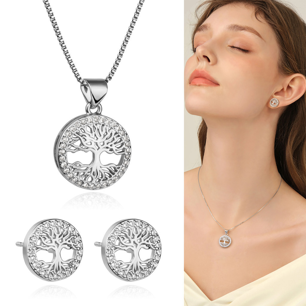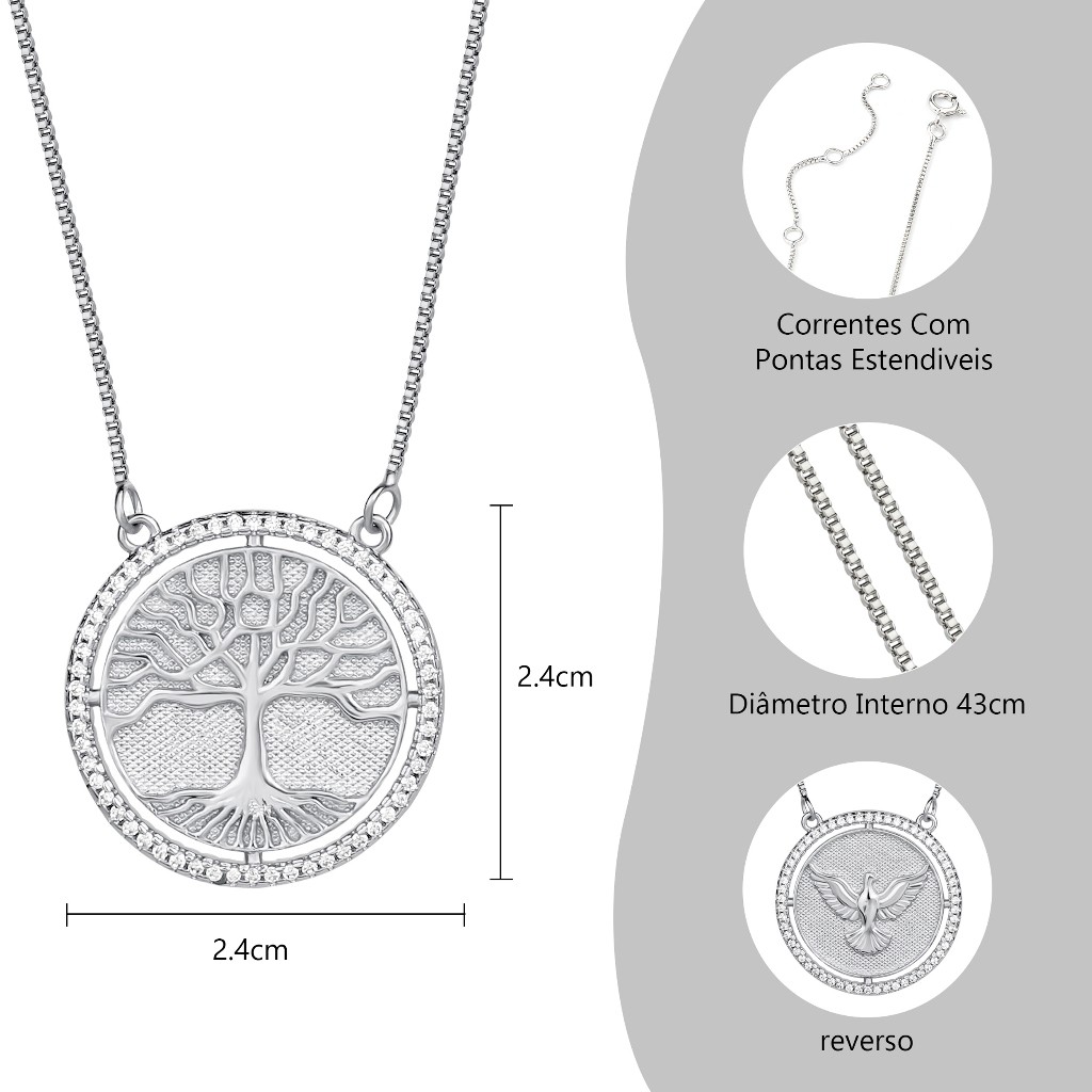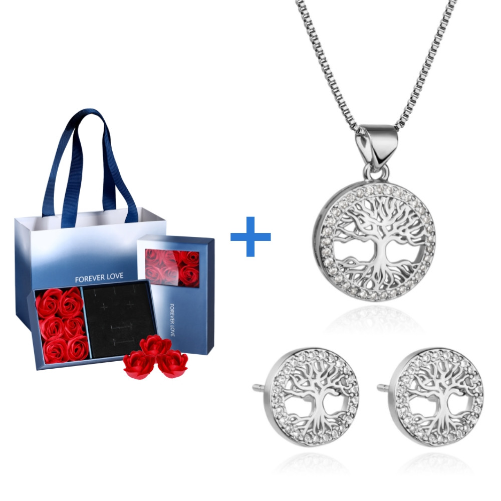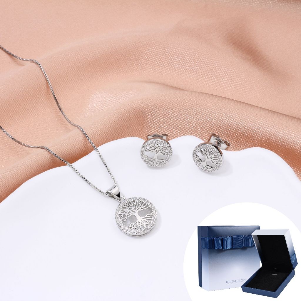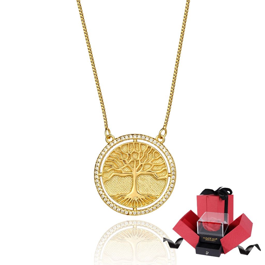Kit Colar Brincos Feminino Arvore Da Vida Folheado a Our 18k Conjunto Caixa De Presente Para Es