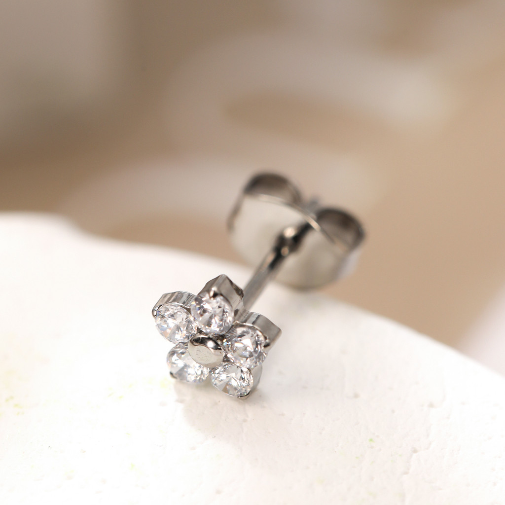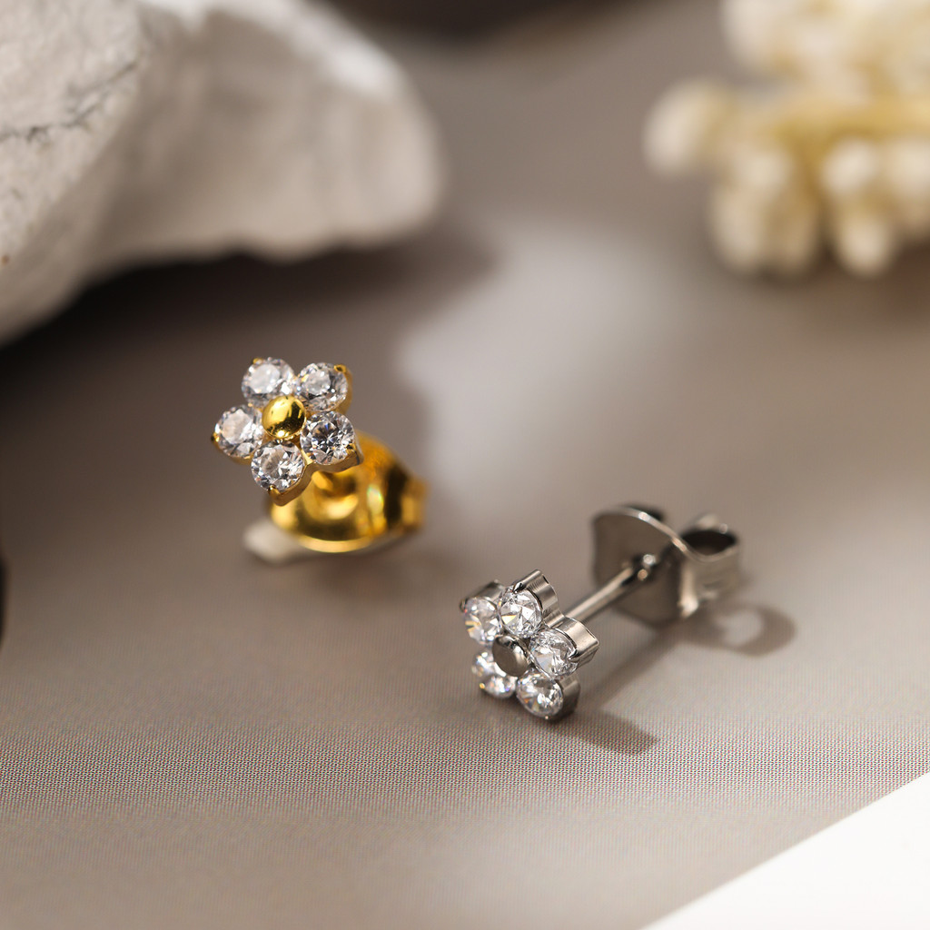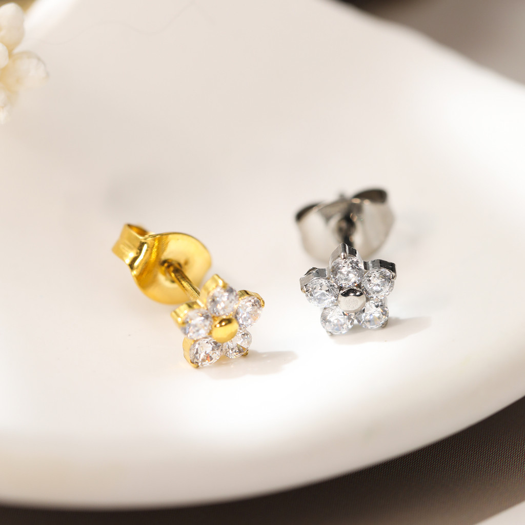 Brinco Titânio Elegante Flor Zircônia Cravejada