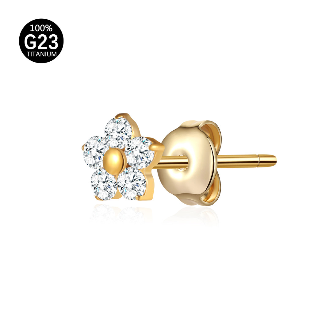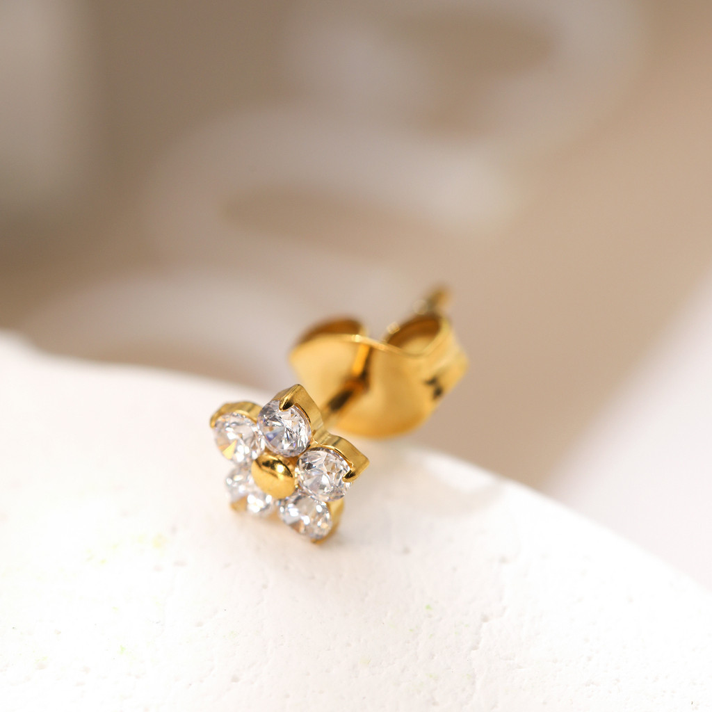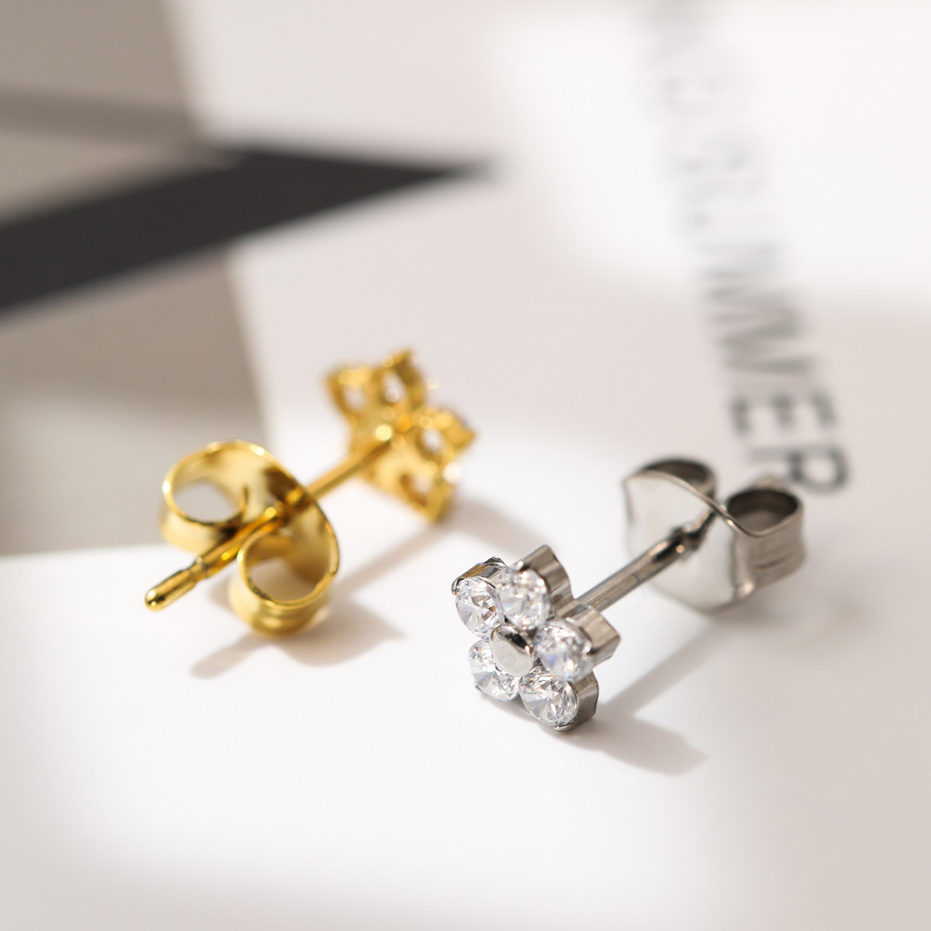 Brinco Titânio Elegante Flor Zircônia Cravejada