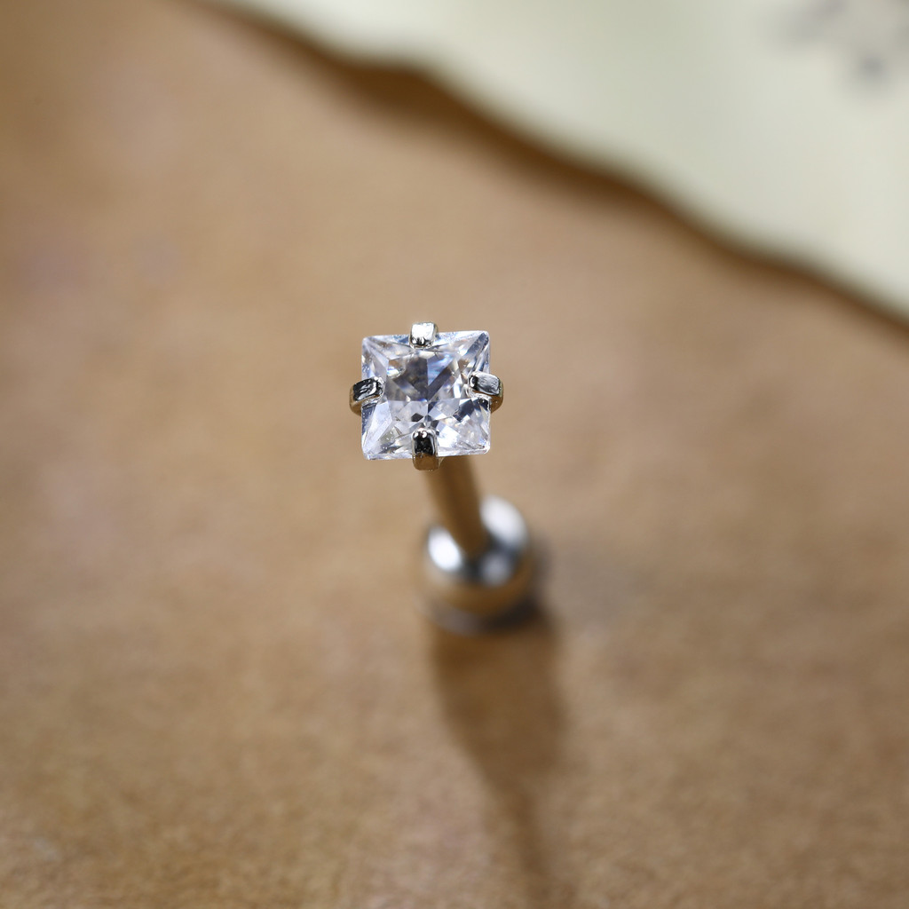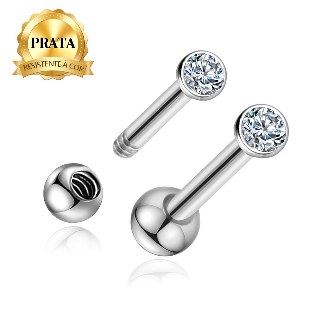 Piercing Helix Flat Minibarbell Prata 925 Coração Conch Orelha Ponto de Luz Lingua