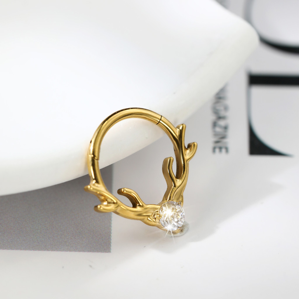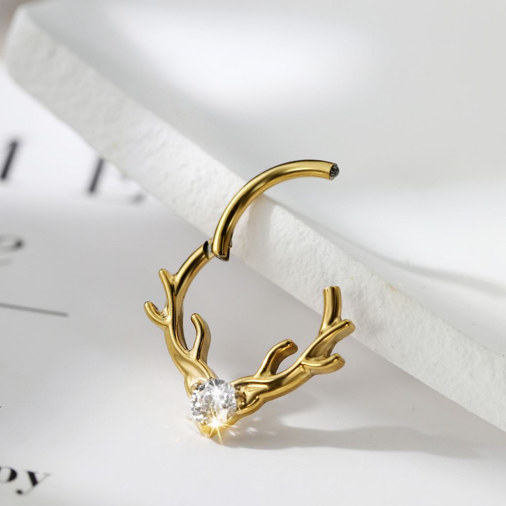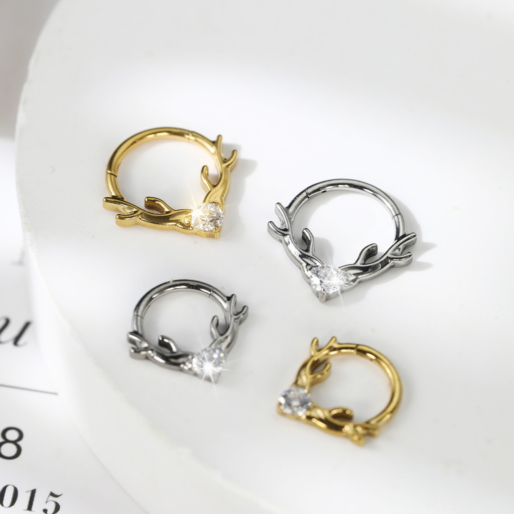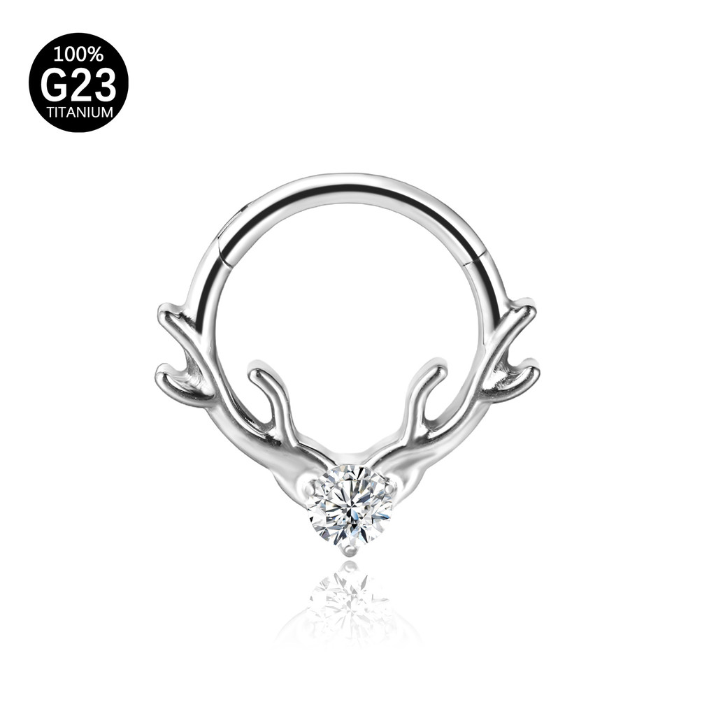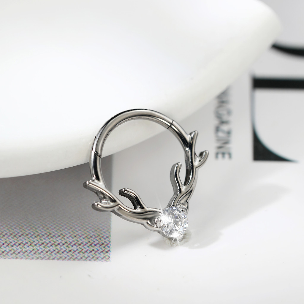 Piercing Septo Rook Conch Nariz Argola Titânio Chifre De Alce Zircônia Cravejada