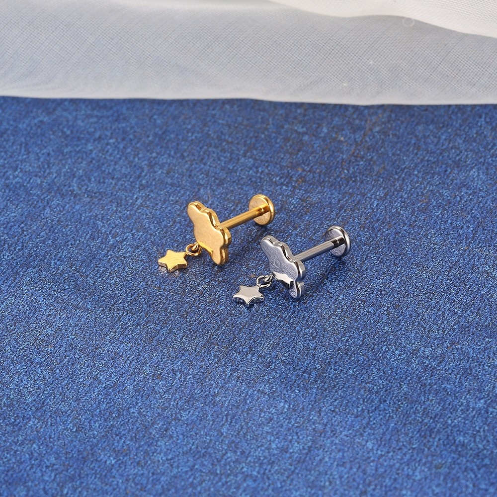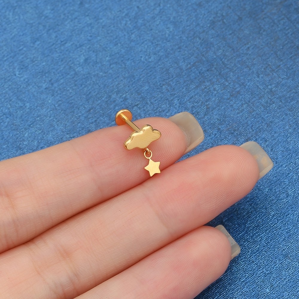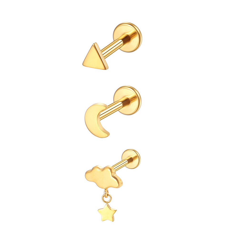 3PCS Kit Piercing Helix Conch Tragus Labret Titânio Pvd Nuvem Com Pingente Estrela