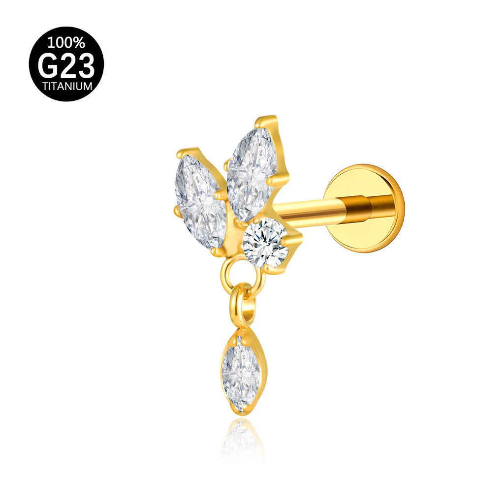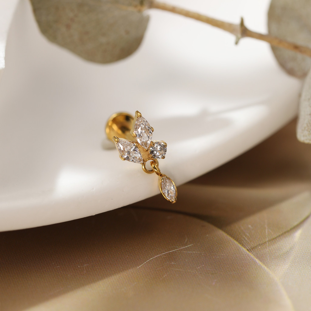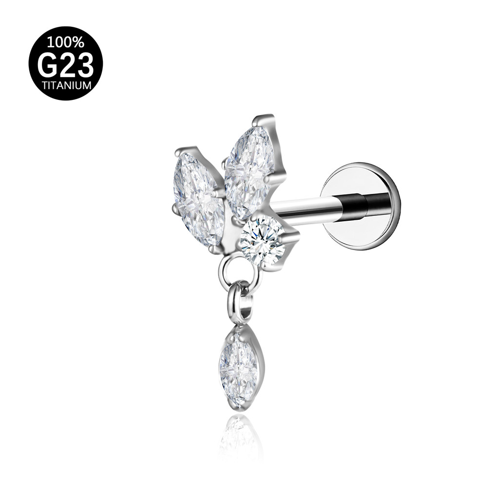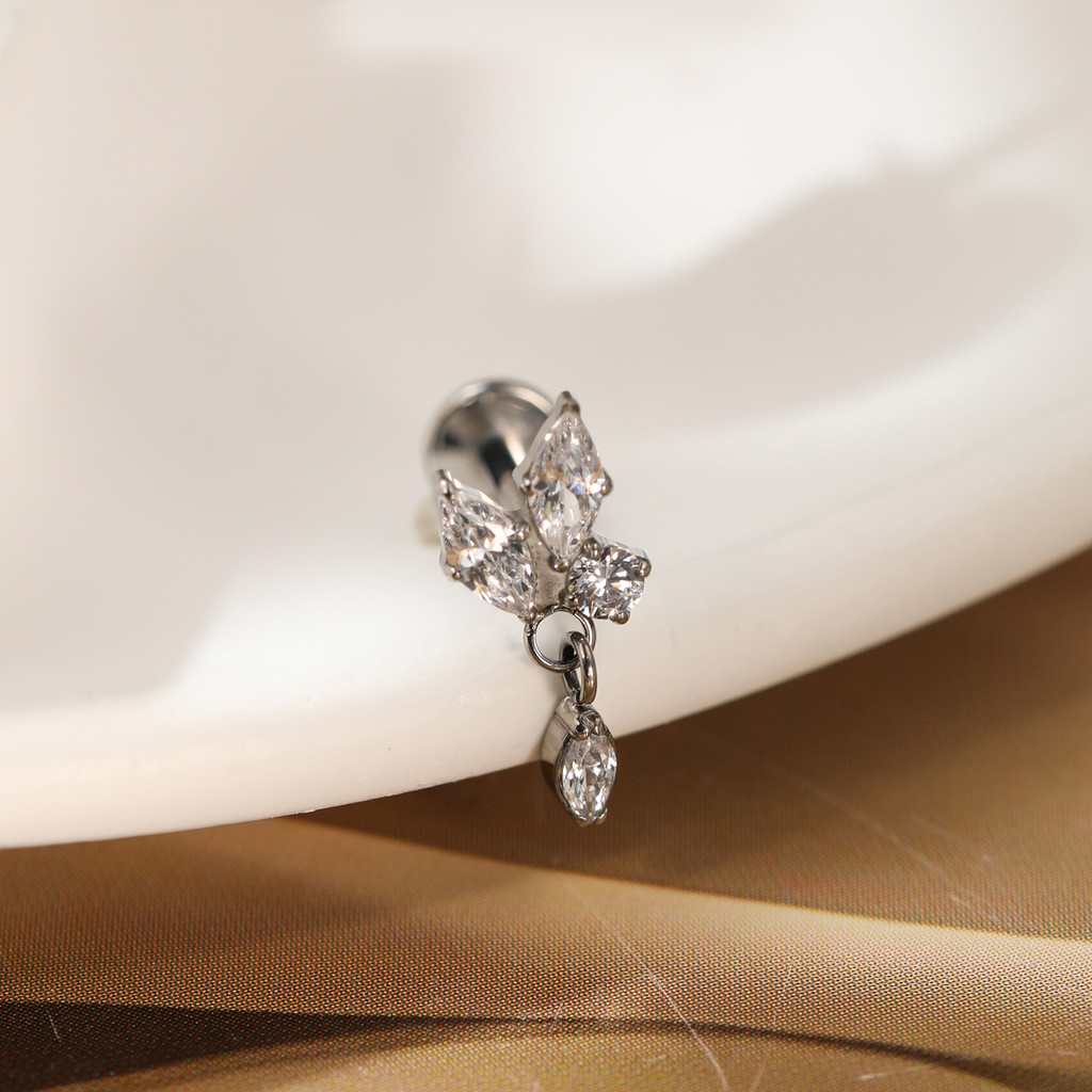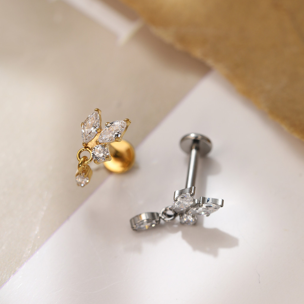 Piercing Labret Titânio Helix Tragus Conch 3 Pedras Zircónia Cravejada Com Pingente