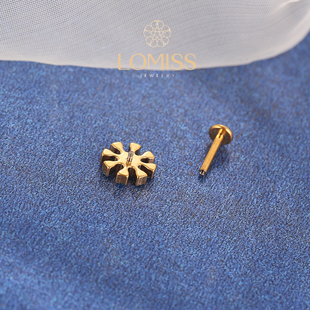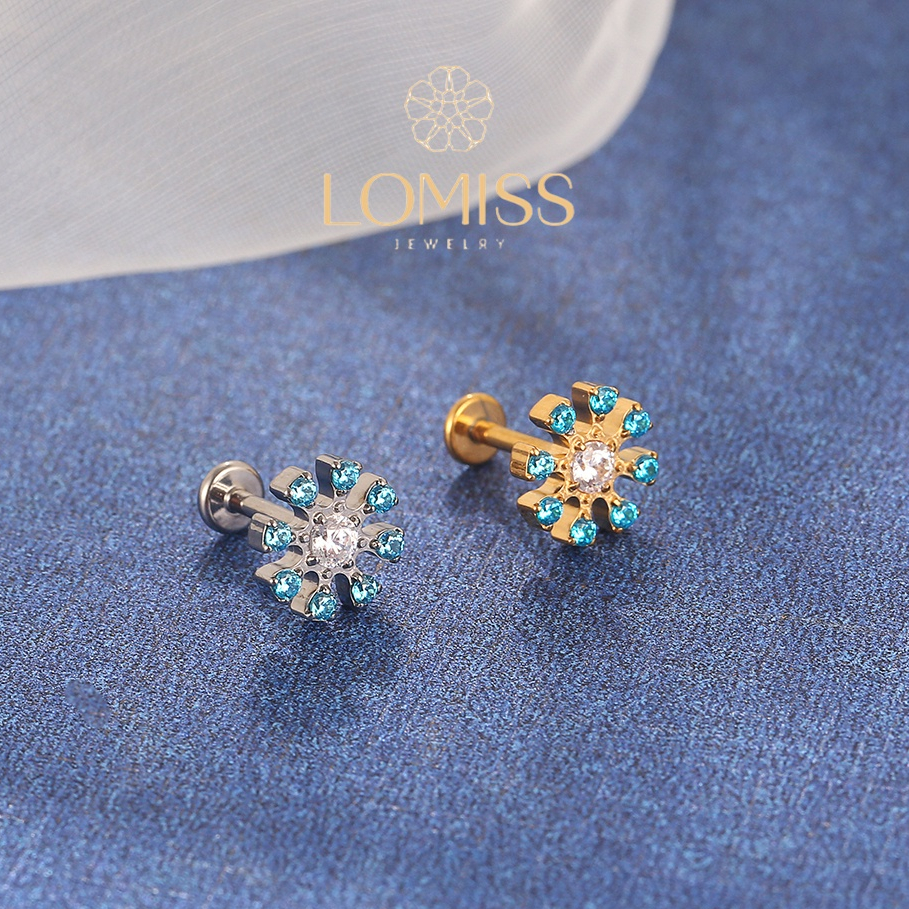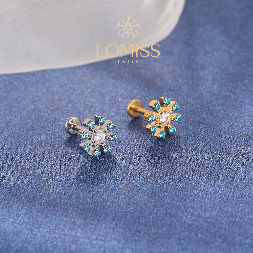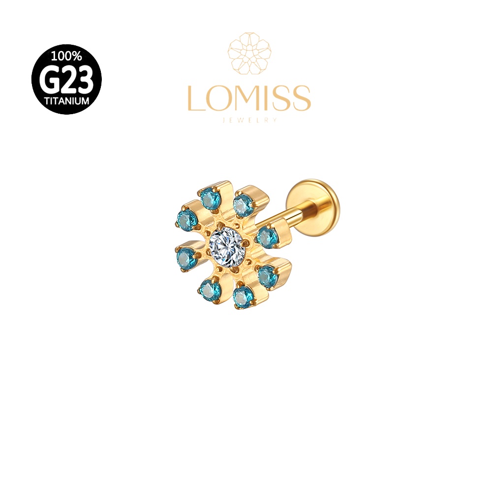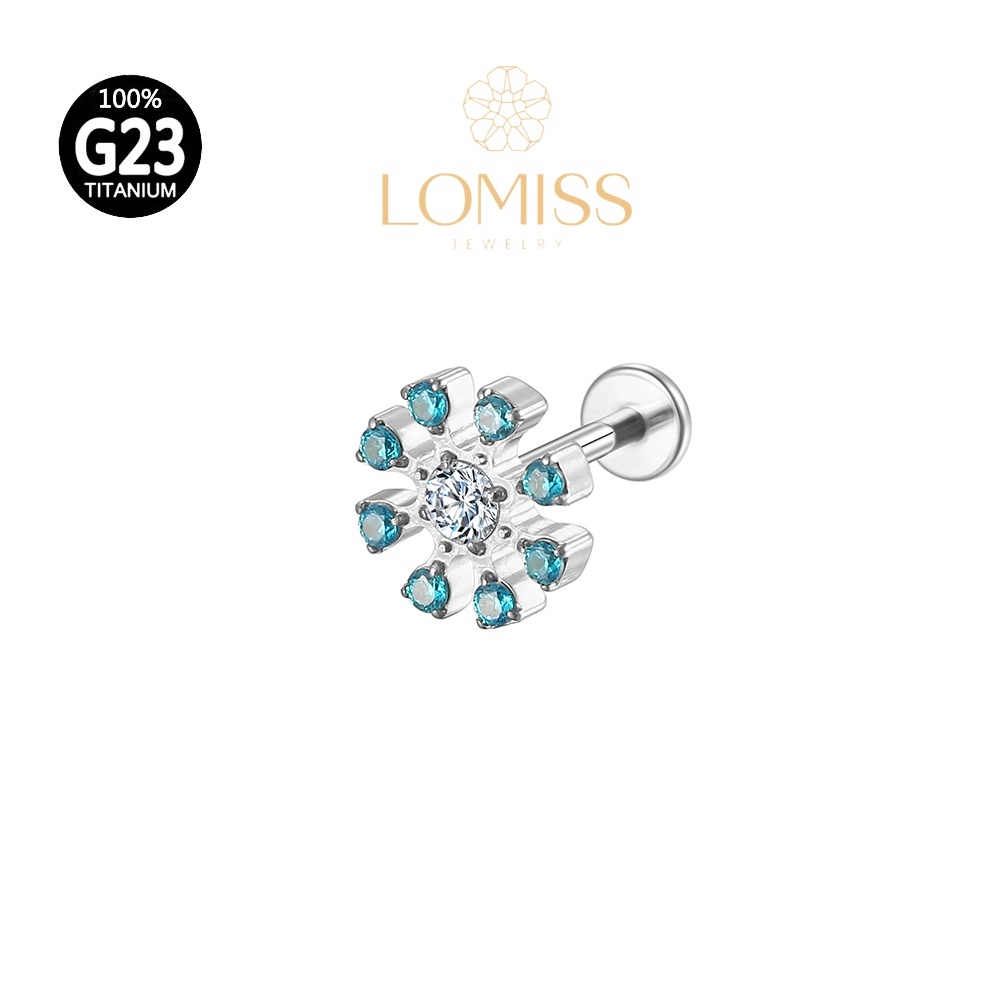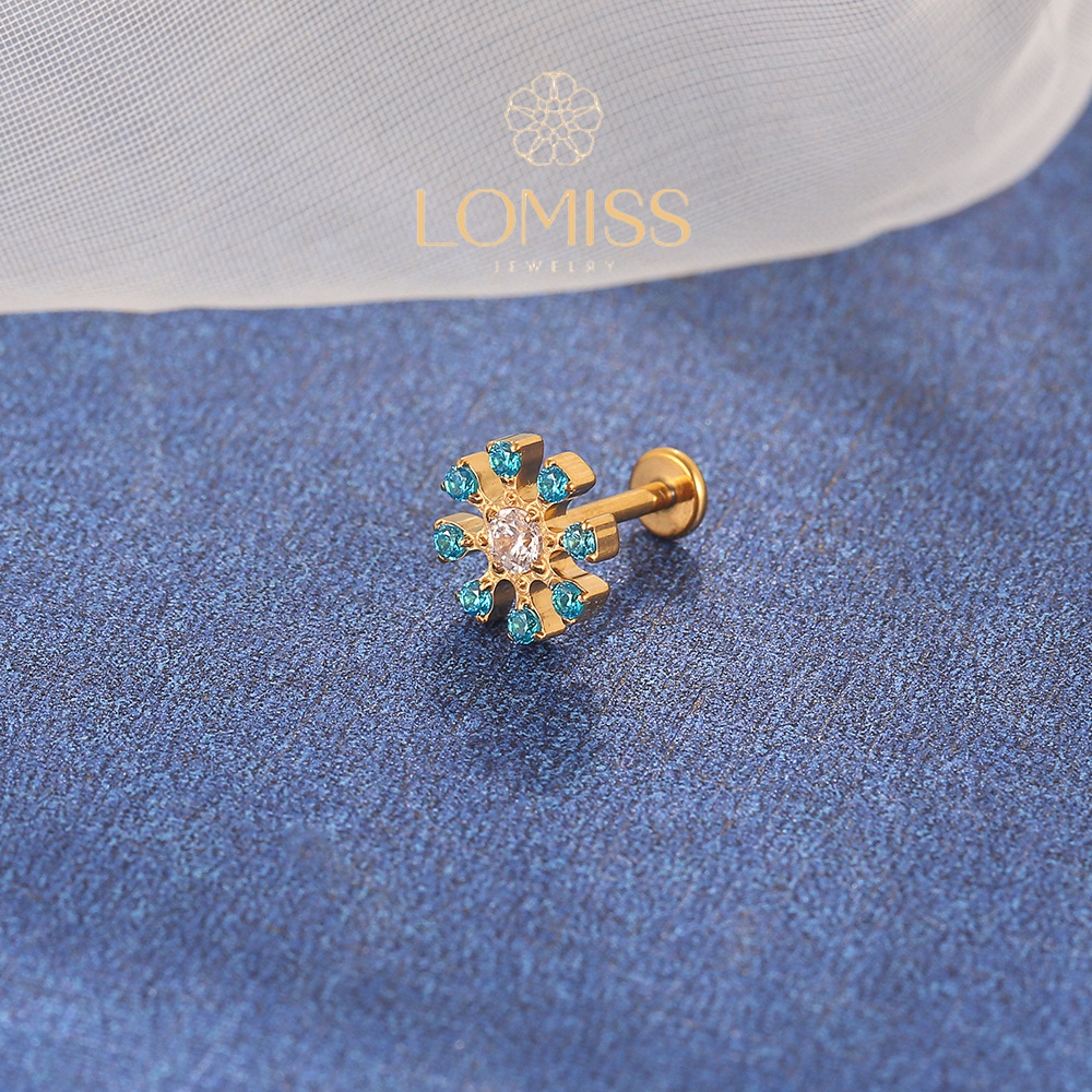 Piercing Helix Conch Labret Titânio PVD Flor Zircônia AZUL《Lomiss semijoias》