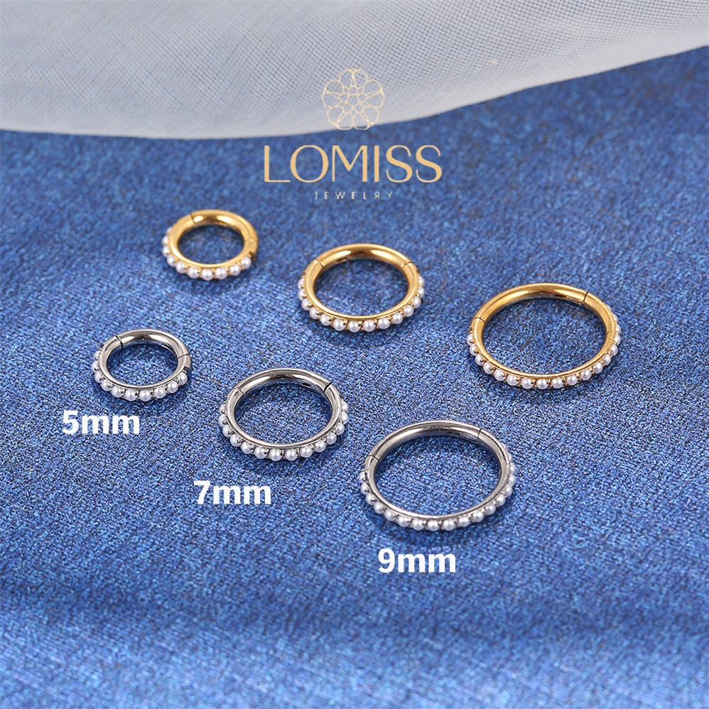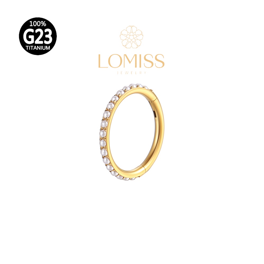 Piercing Orelha Nariz Argola Clik Titânio PVD Perola Cravejado