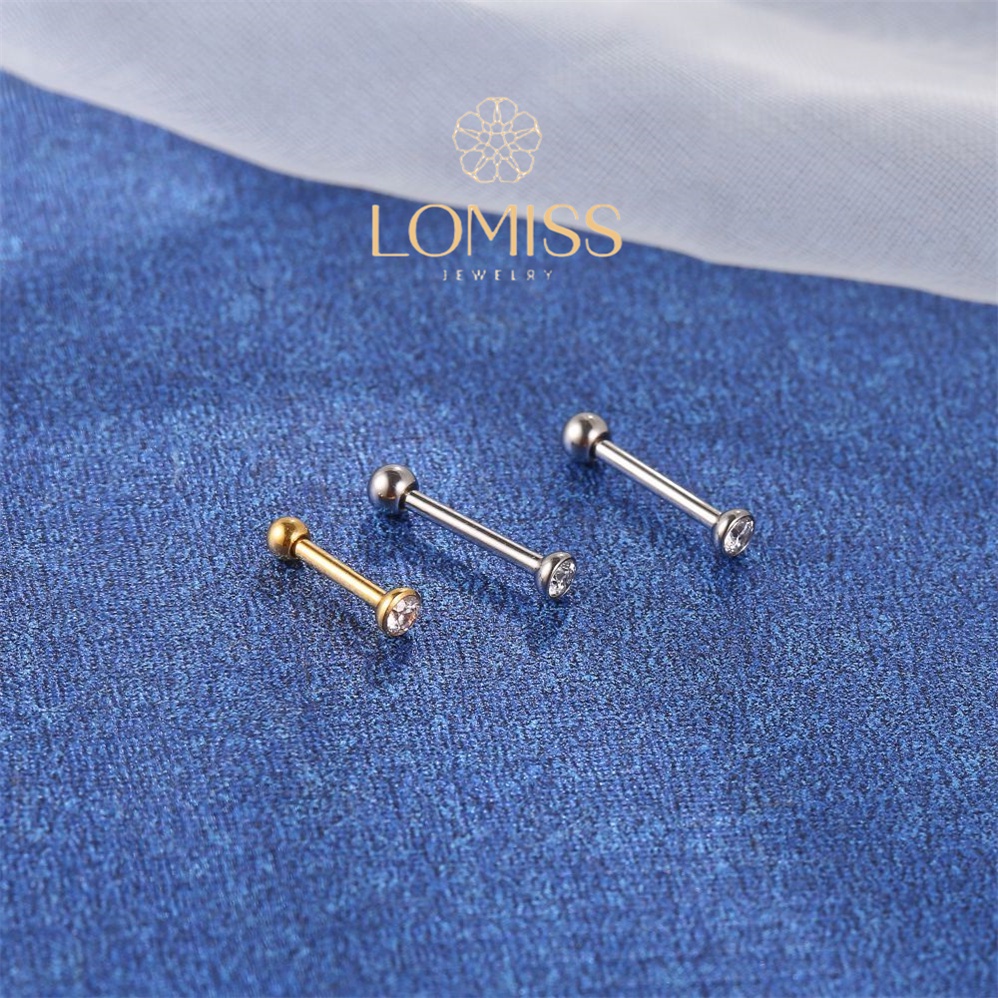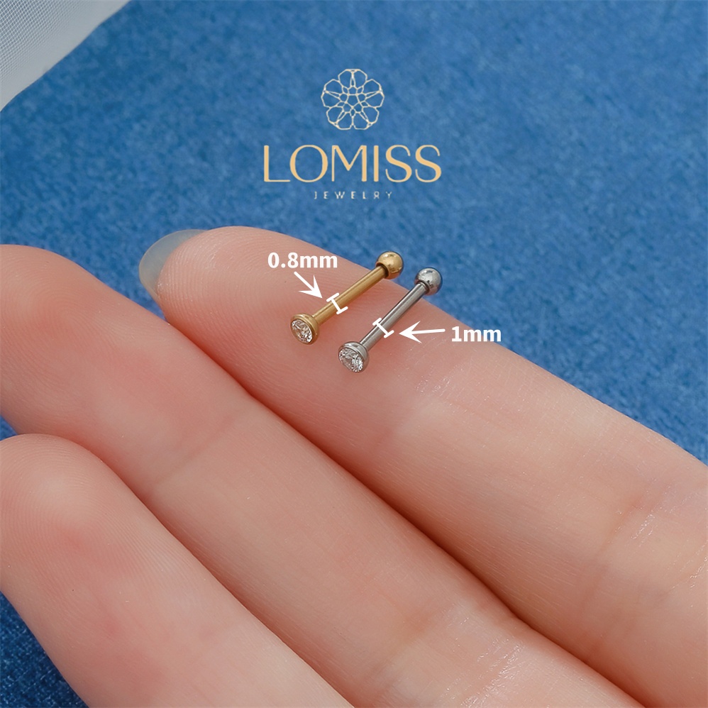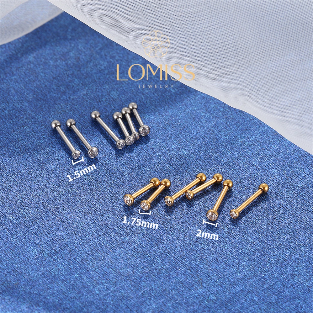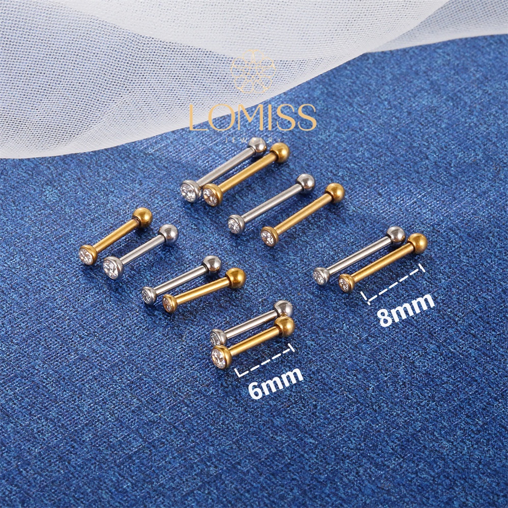 Piercing Minibarbell Helix Flat Conch Tragus Lóbulo Minibarbell Piercing Aço Cirúrgico Dourado Zircônia Lomiss Piercing Conch Titanio 6mm Aço Inoxidável