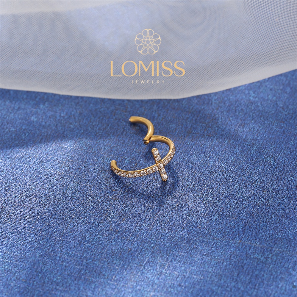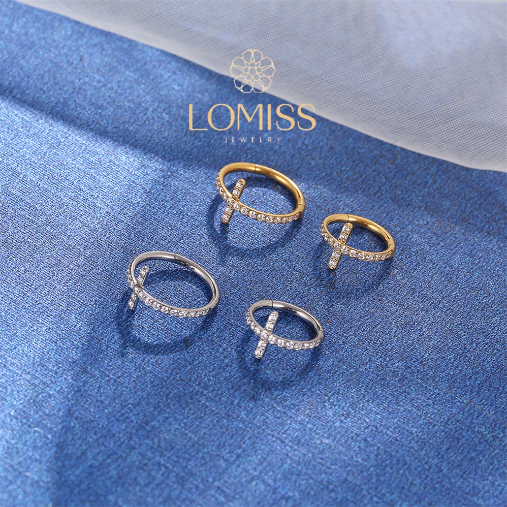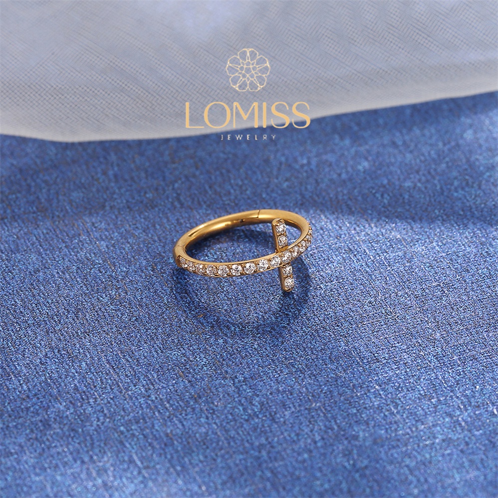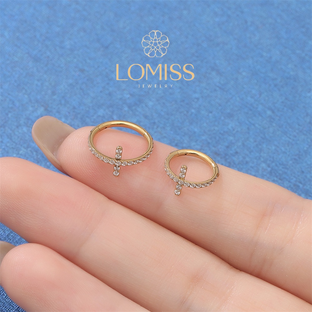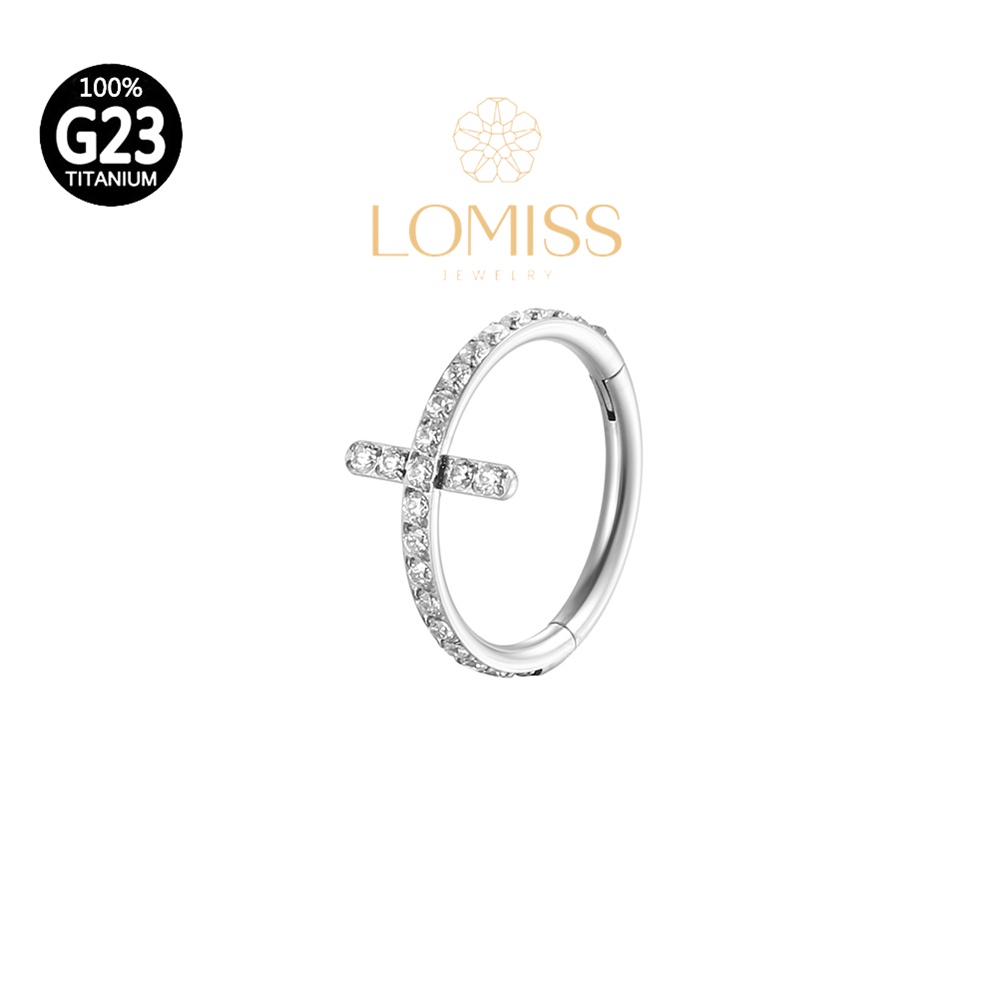 Piercing Argola Clik Titânio PVD Cruz Zircônia Cravejada Lomiss piercing