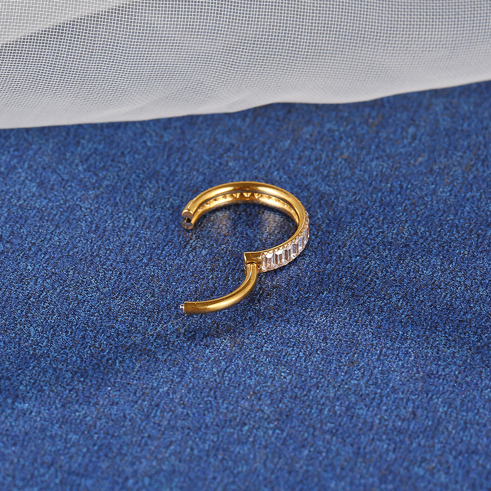 Lomiss Piercing Septril Rook Conch Argola Titânio Segmento Articulado Zircônia Retangular Cravejada