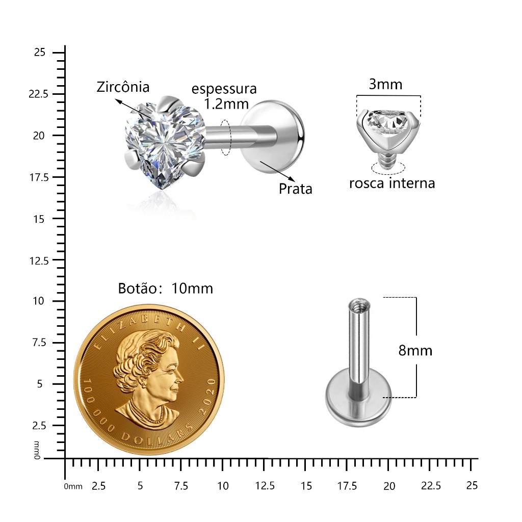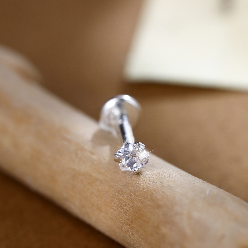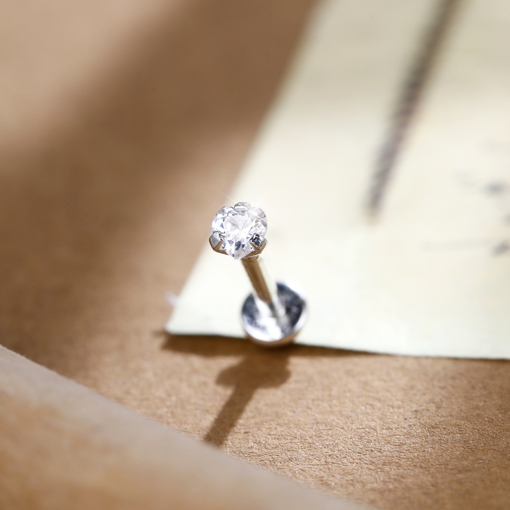 Piercing Labret Prata 925 Coração Ponto De Luz Grau de Implante Helix Tragus Conch Boca Orelha