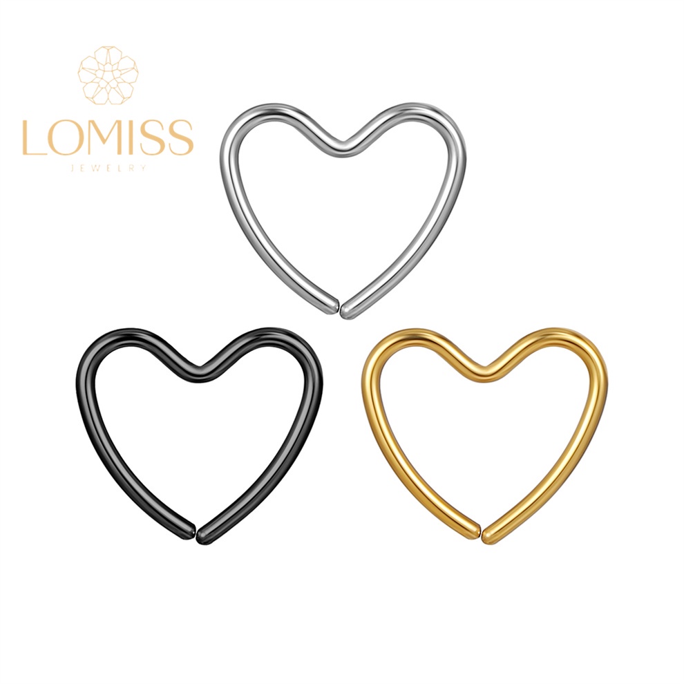 Piercing conch orelha daith septo banhado PVD GOLD 18k Argola CORAÇÃO AÇo CirÚrgico Lomiss piercing