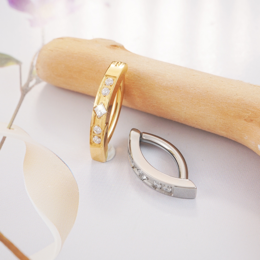 Piercing Argola Para Umbigo Titânio Pvd Clik 1 Fileira Zircônia Piercing de Umbigo Argola