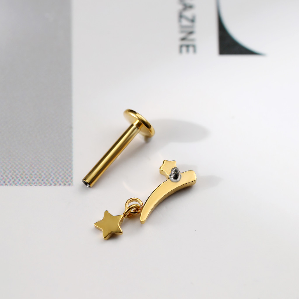Piercing Orelha Tragus Helix Labret Pingente Estrela Titânio Zircônia