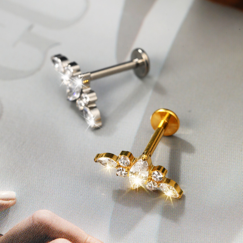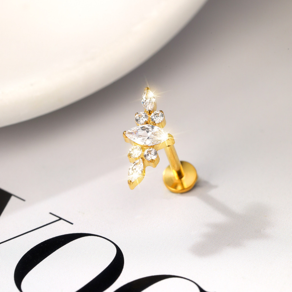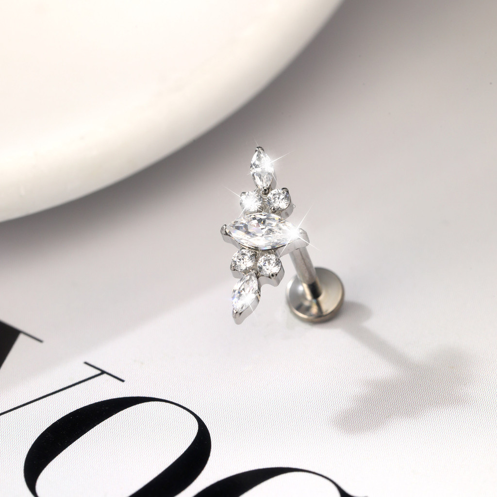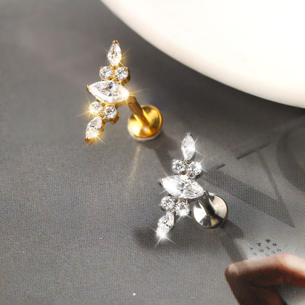 Piercing Labret Titânio Cluster Zircônia Cravejada Orelha Nariz Earring Tragus Conch Helix