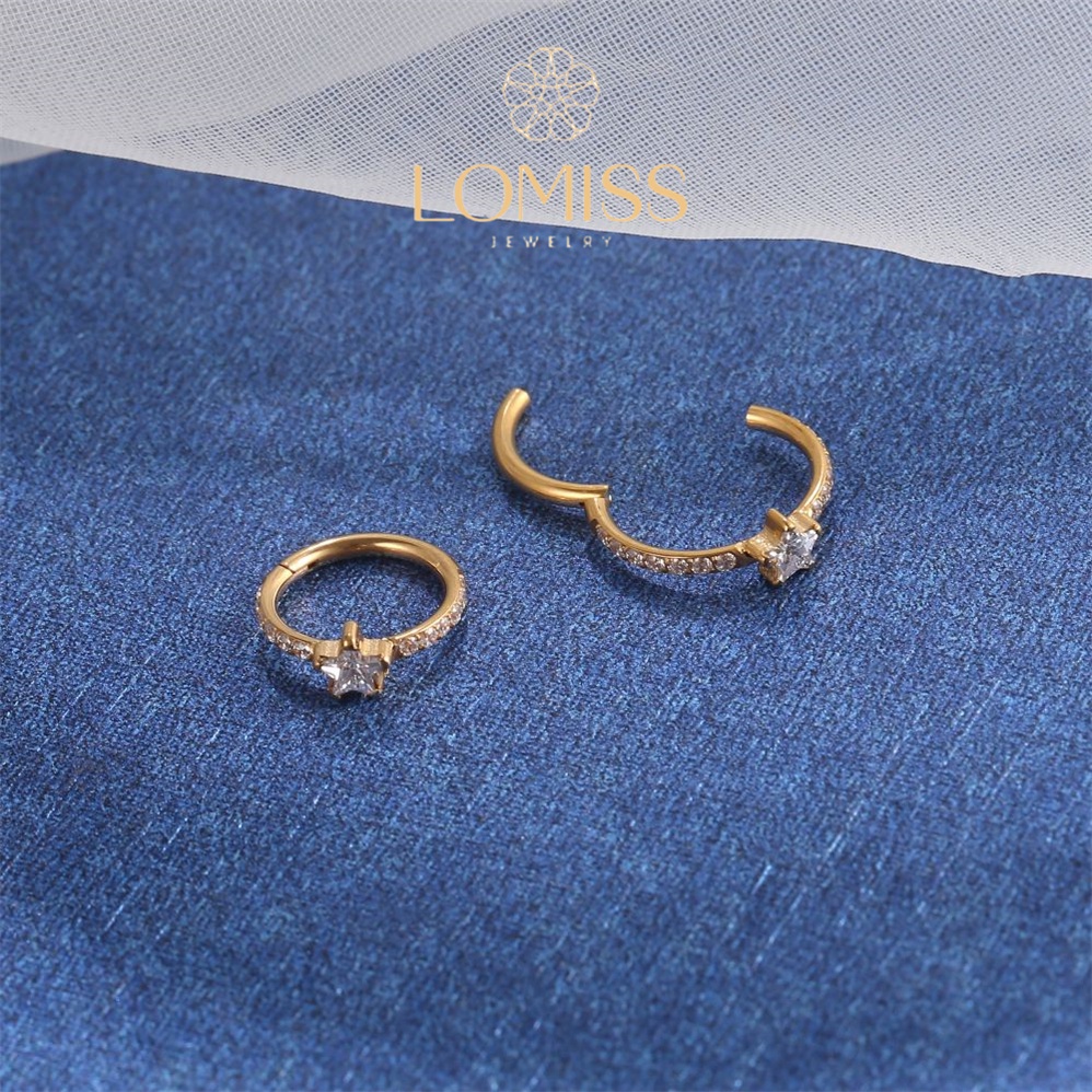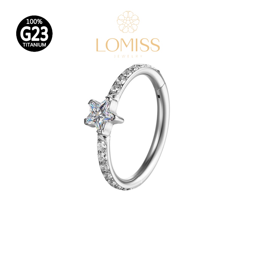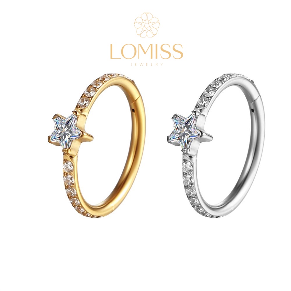 Piercing Orelha Nariz Argola Clik Titânio PVD Zircônia Estrela《Lomiss piercing》