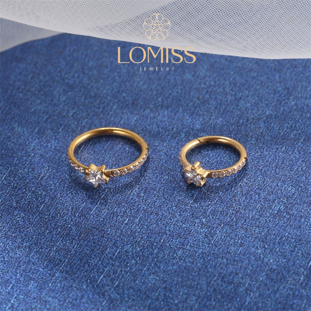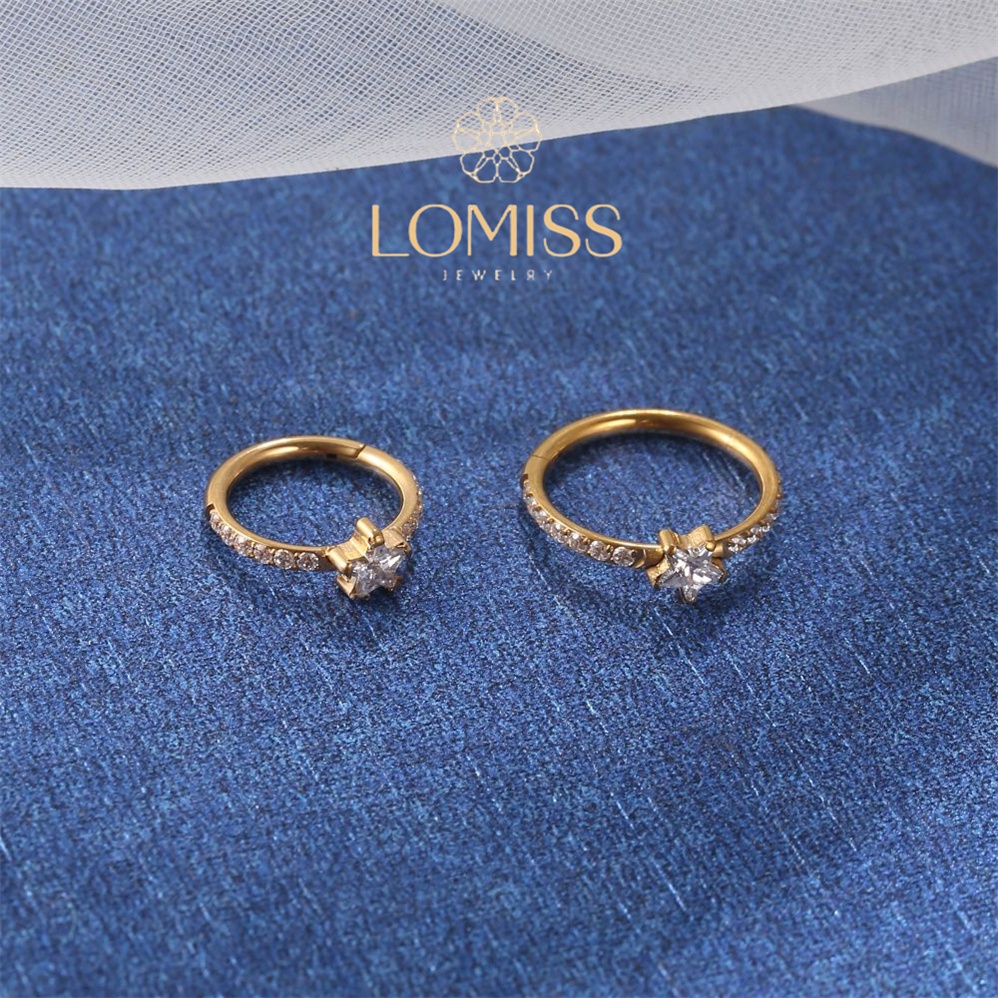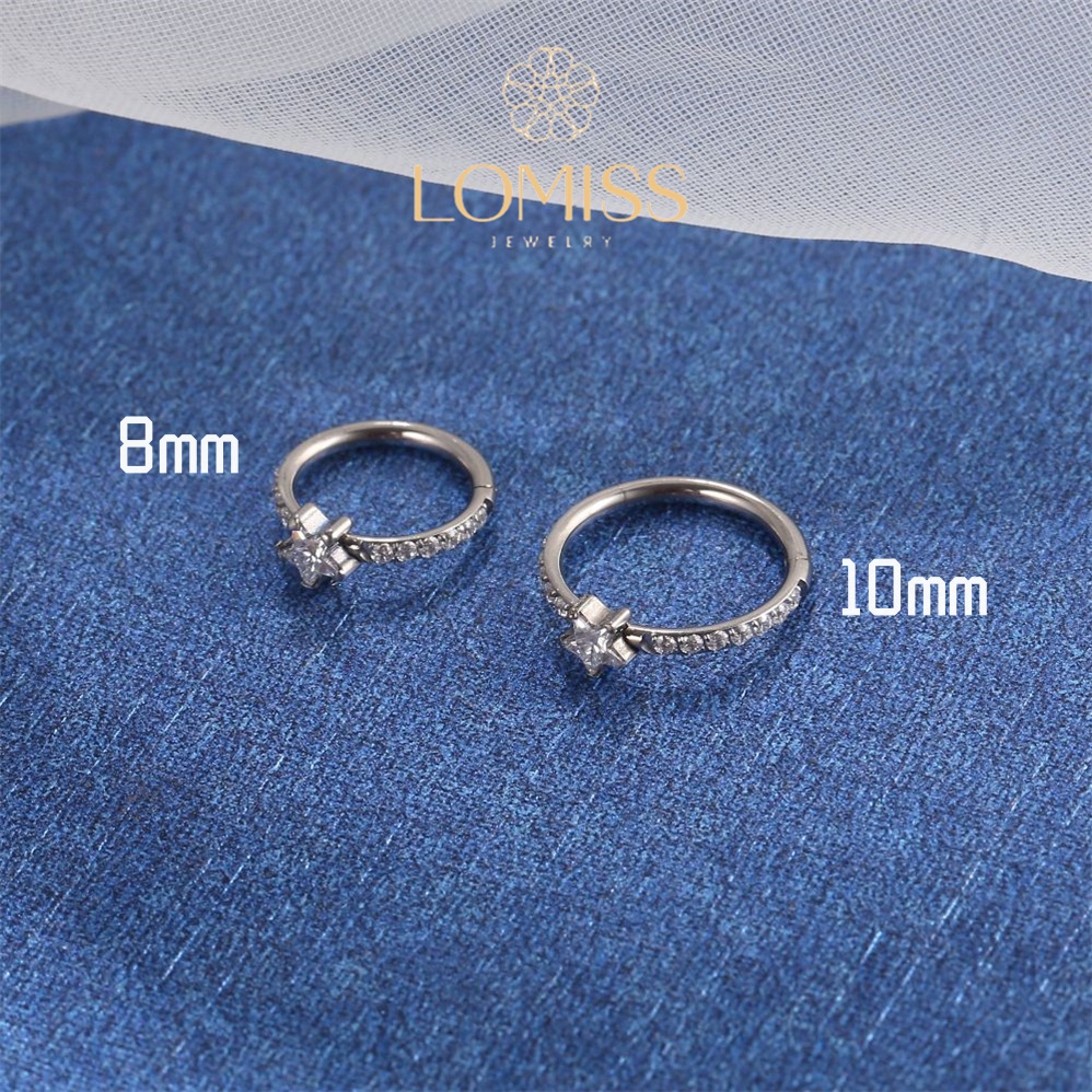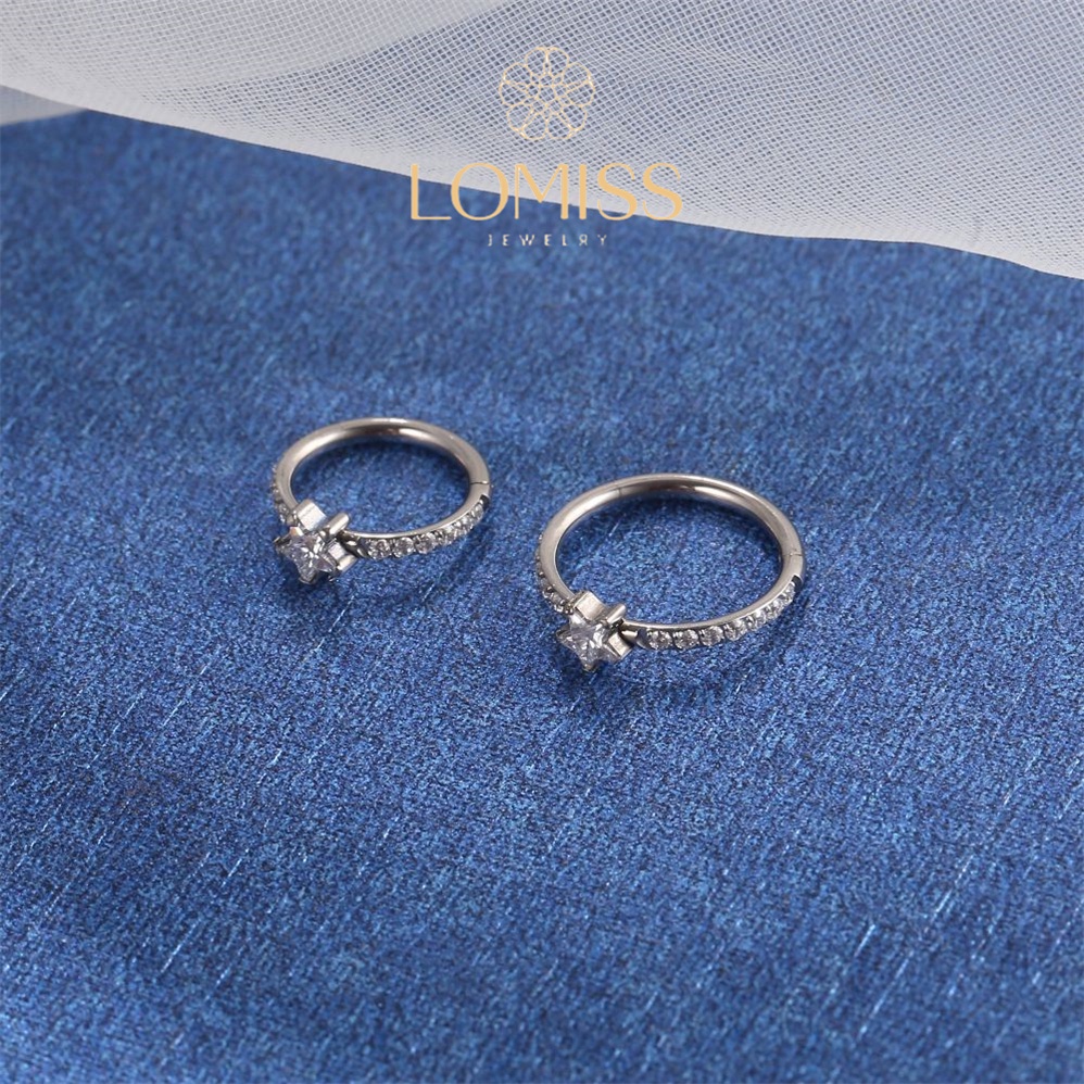 Piercing Orelha Nariz Argola Clik Titânio PVD Zircônia Estrela《Lomiss piercing》