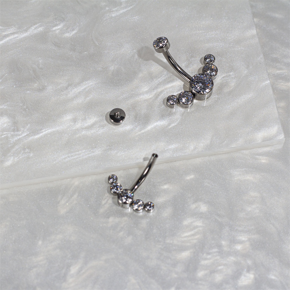 Piercing Umbigo Banana Titânio PVD Cluster Zircônia《Lomiss piercing》