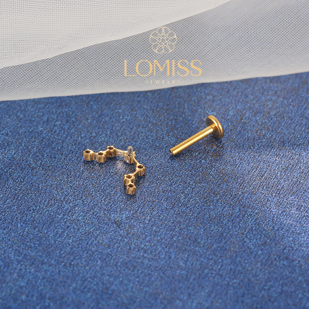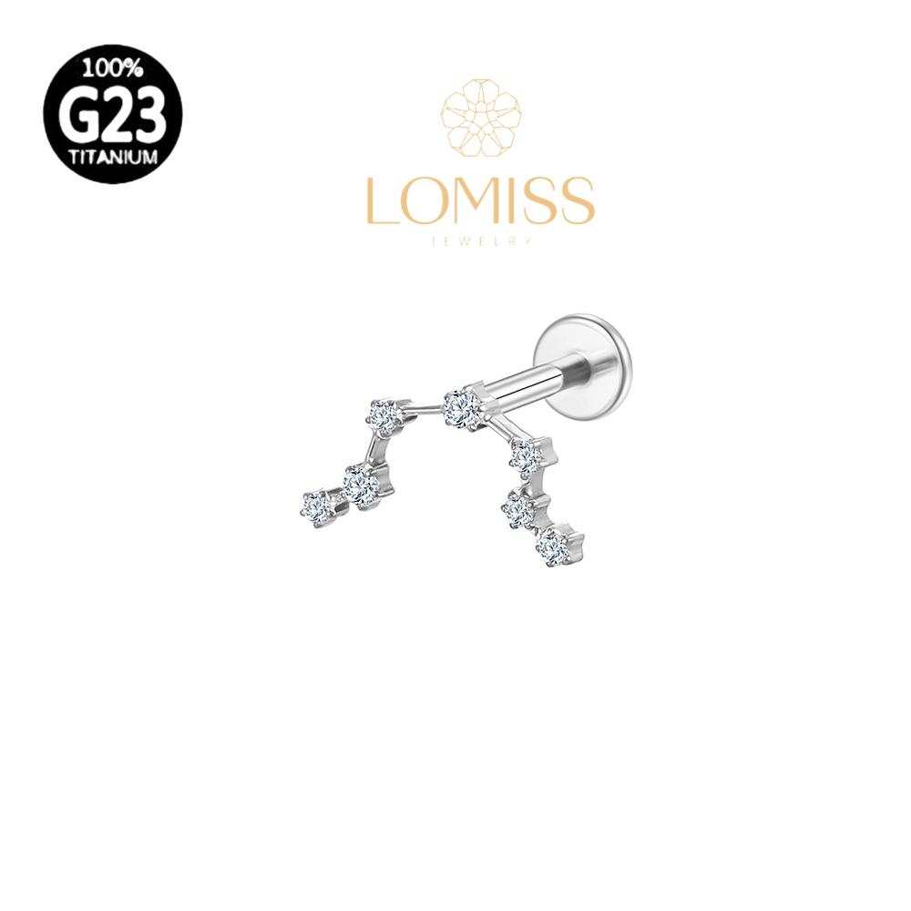 Piercing Helix Tragus Conch Boca-Medusa Labret Titânio Pvd 7 Zircônias Cravejada 1,2x8