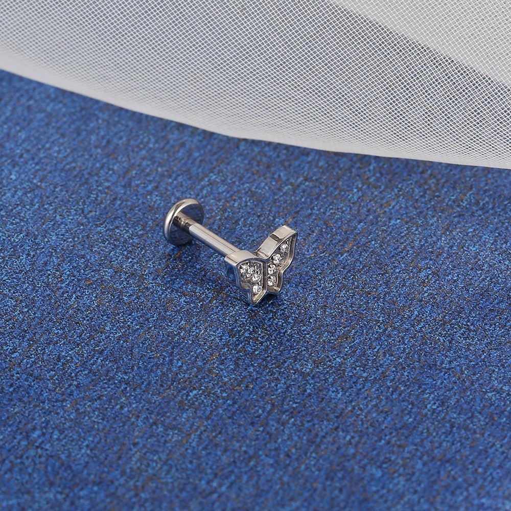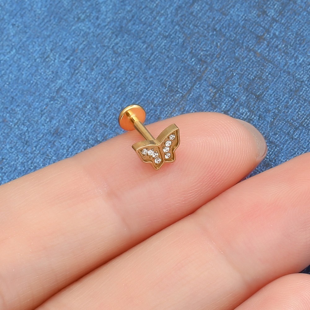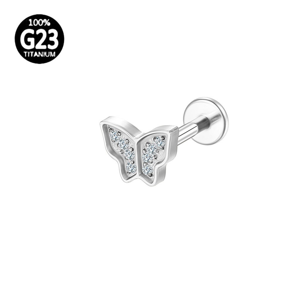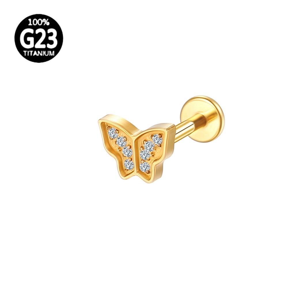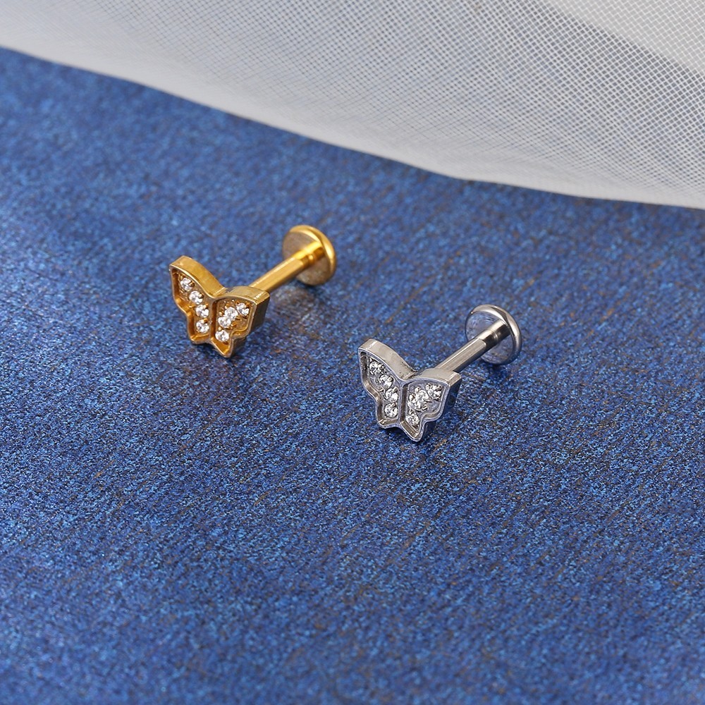 Piercing Helix Conch Labret Titânio Pvd Borboleta Com Zirconia