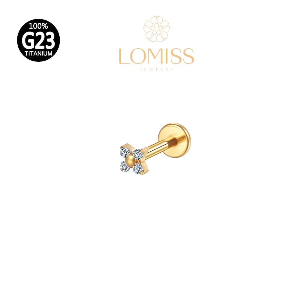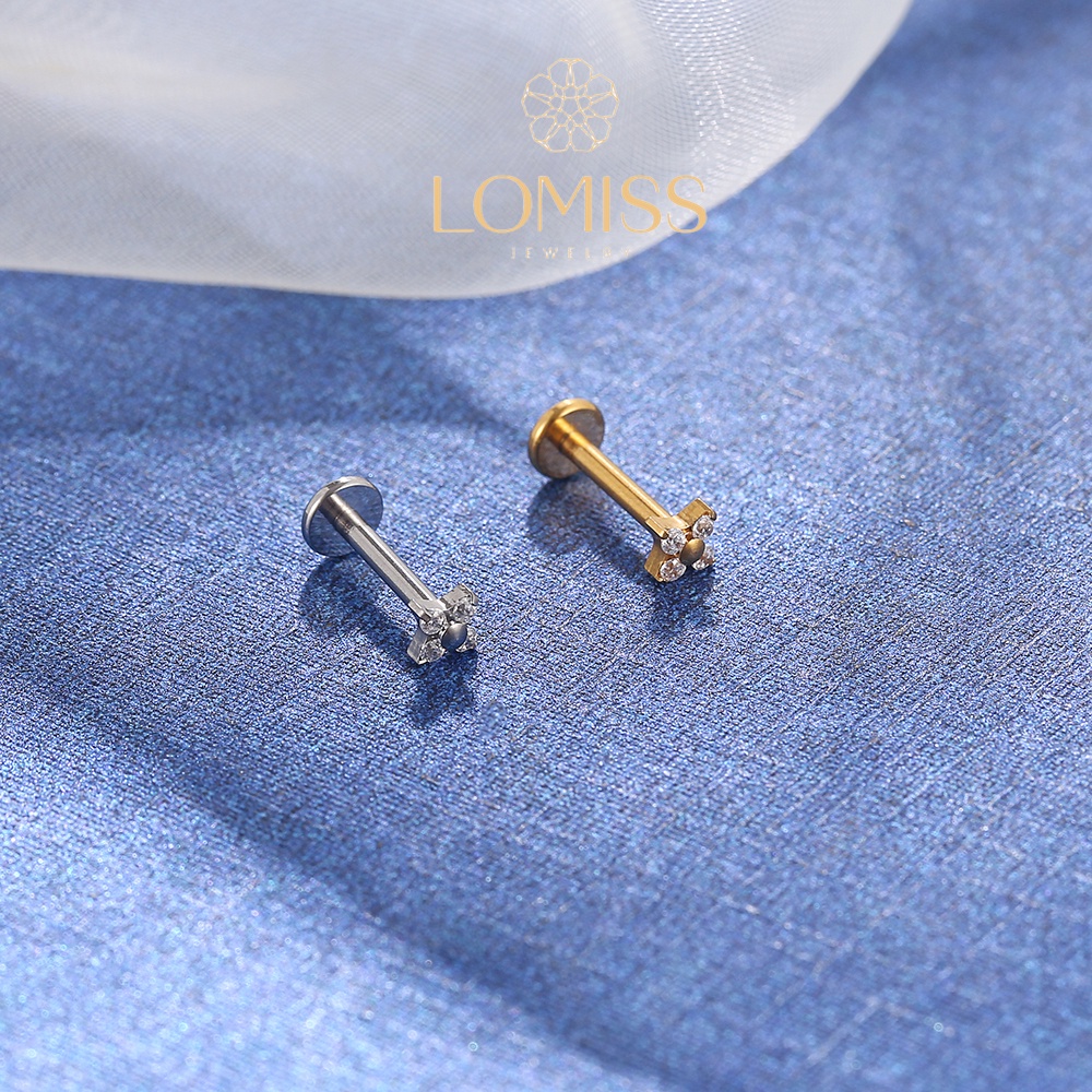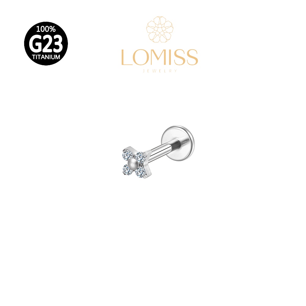 Piercing labret PVD Titânio G23 Labret Flor 4 Petalas Zircônia Tragus 1.2X8mm 《Lomiss piercing》