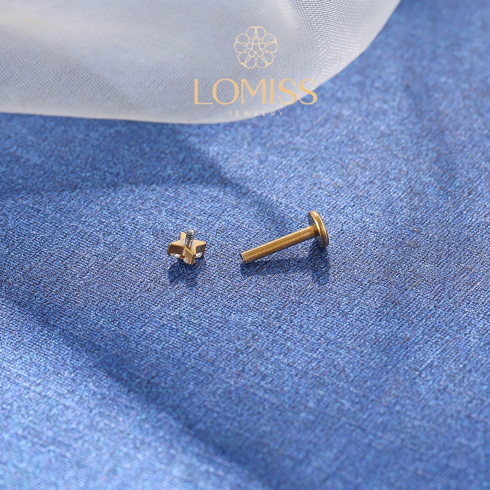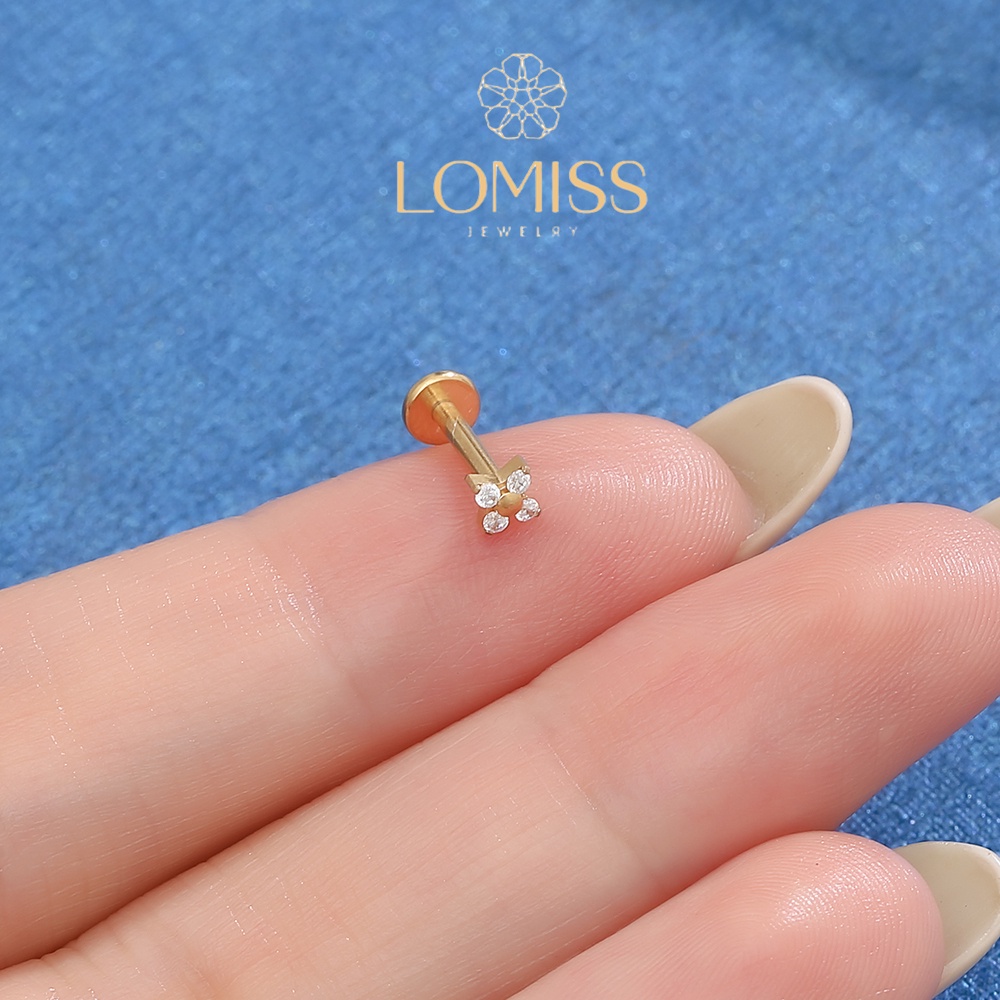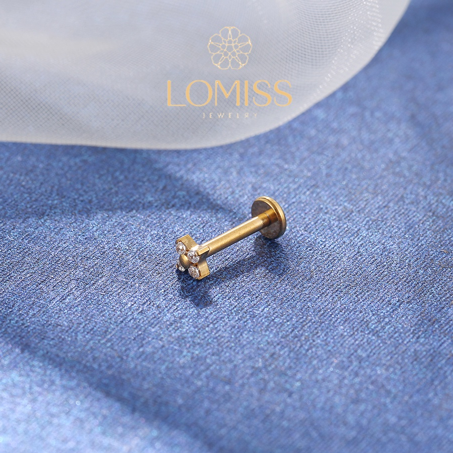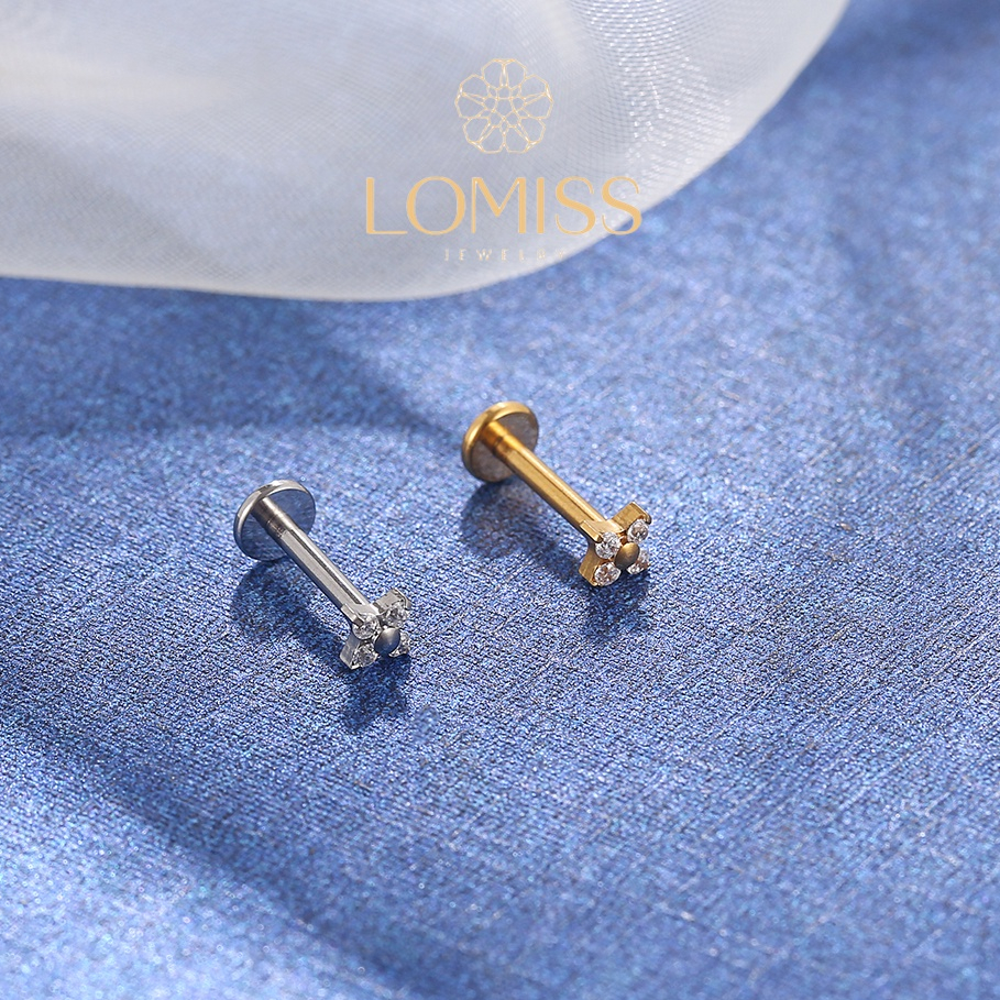 Piercing labret PVD Titânio G23 Labret Flor 4 Petalas Zircônia Tragus 1.2X8mm 《Lomiss piercing》