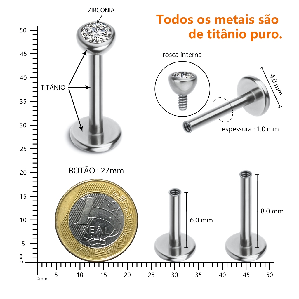 Piercing Labret Ponto De Luz Titânio Zircônia | Helix, Tragus, Conch, Nariz, Boca-Medusa Nostril Brinco Piercing Trágus